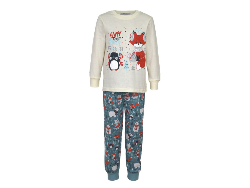 Кулирное полотно:100%х/б. Фуфайка-прямая,рукав втачной,длинный на манжете из ластика.Горловина обработана ластиком.Печать на переде.Брюки-длинные на манжете из ластика.Верхний срез подшит с резинкой.