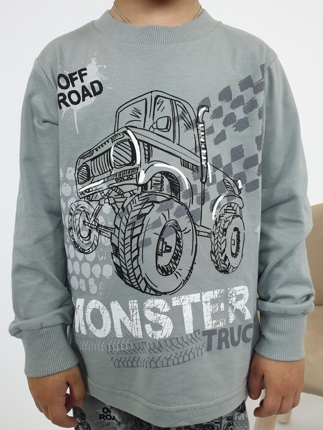 Кулирное полотно:100% х/б. Фуфайка-прямая.Рукав втачной,длинный на манжете из ластика.Горловина обработана ластиком.Печать на переде. Брюки -длинные на манжете из ластика.Верхний срез подшит с резинкой.