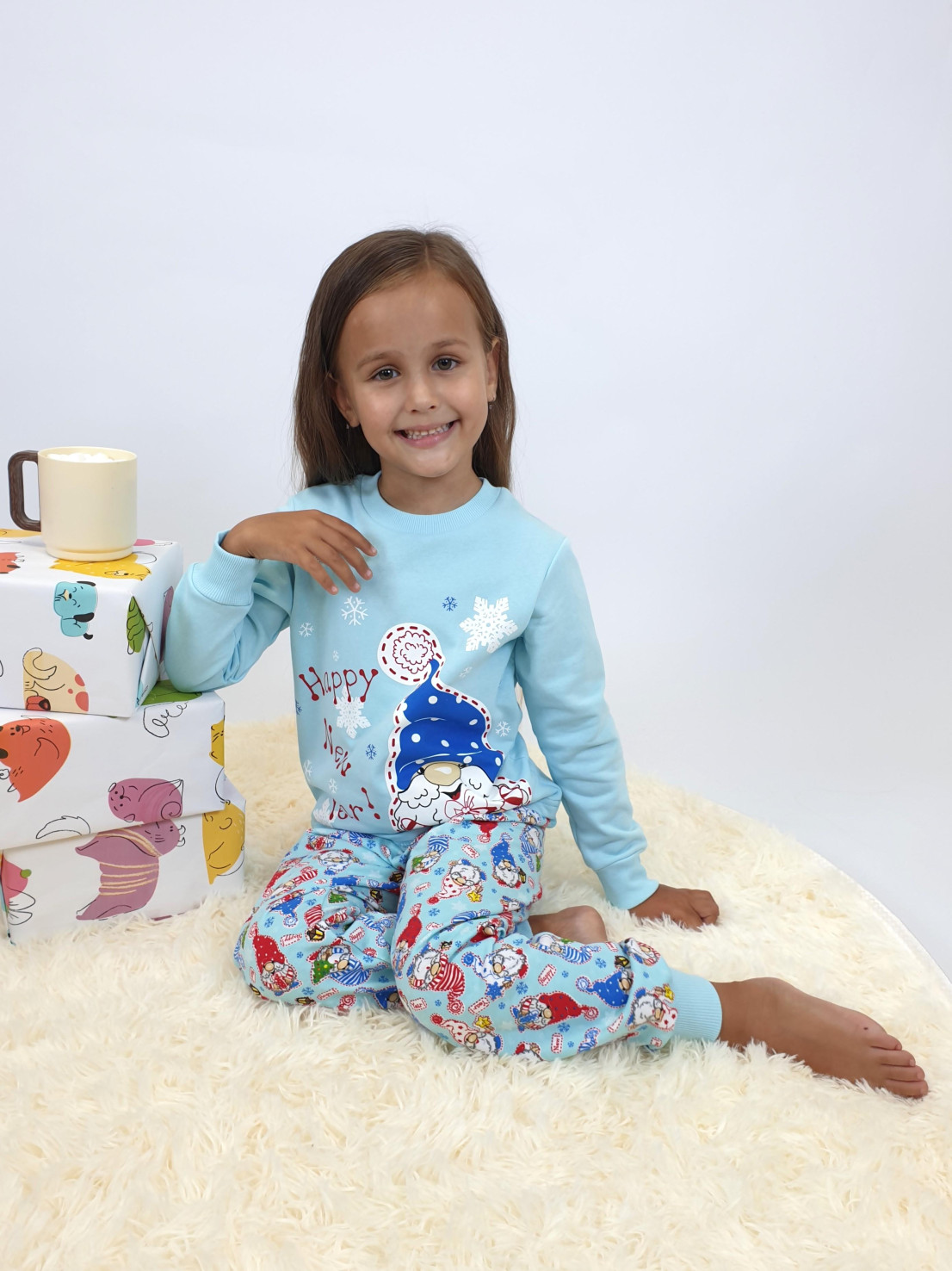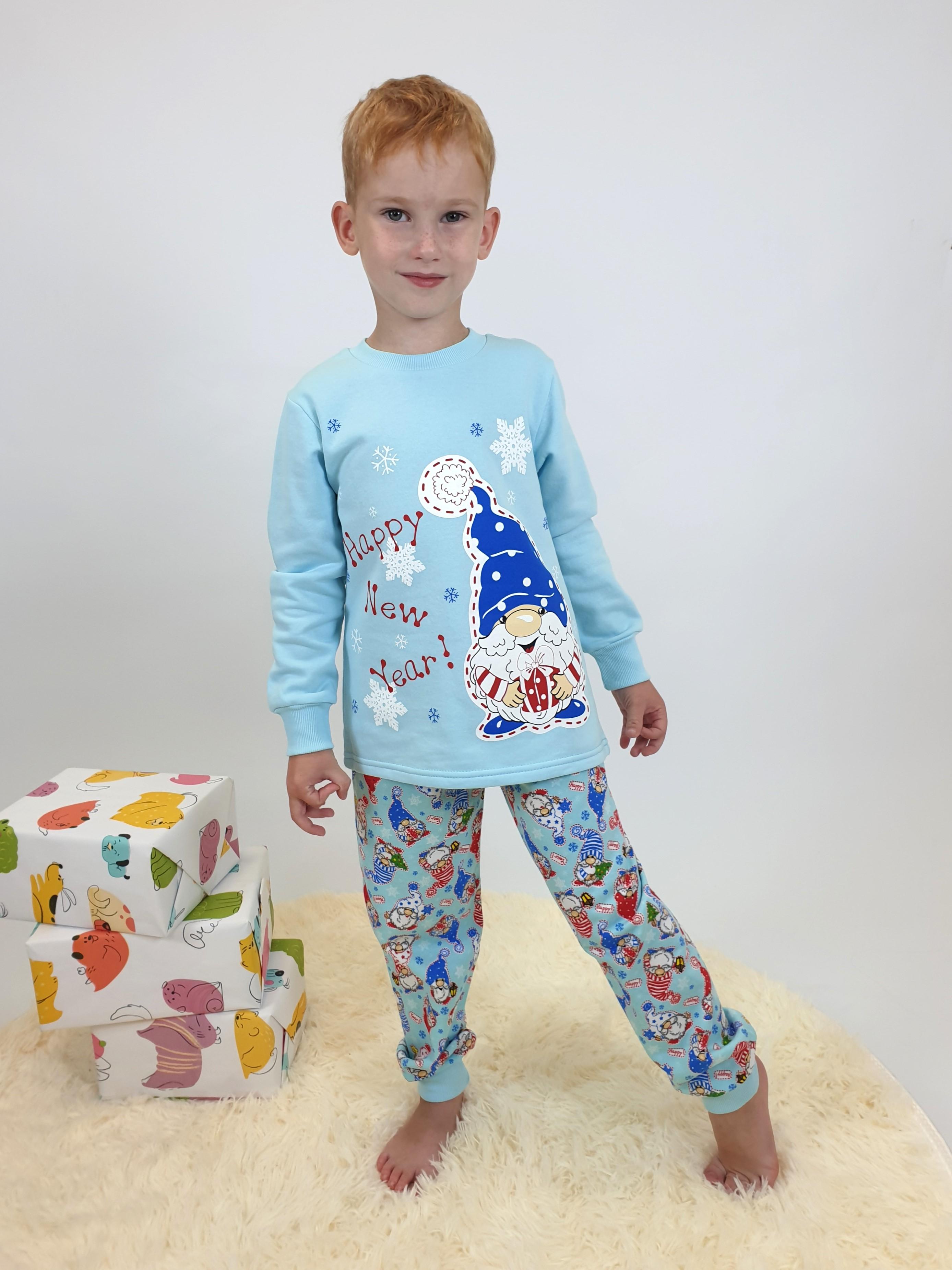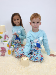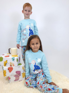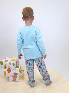 Пижама. Футер:100% х/б. Фуфайка-прямая.Рукав втачной,длинный на манжете из ластика.Горловина обработана ластиком.Печать на переде. Брюки -длинные на манжете из ластика.Верхний срез подшит с резинкой.