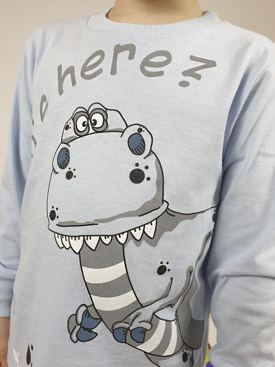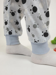 Кулирное полотно: 100%х/б. Фуфайка-прямая,рукав втачной,длинный на манжете из ластика.Горловина обработана ластиком.Печать на переде. Брюки-длинные на манжете из ластика.Верхний срез подшит с резинкой.