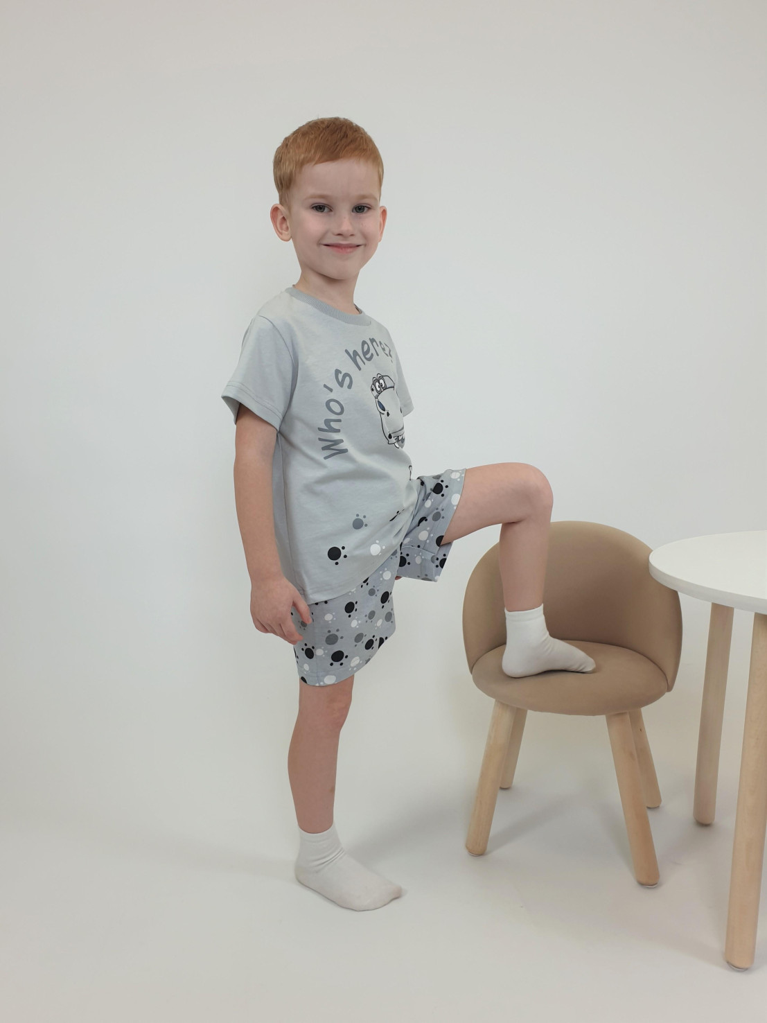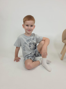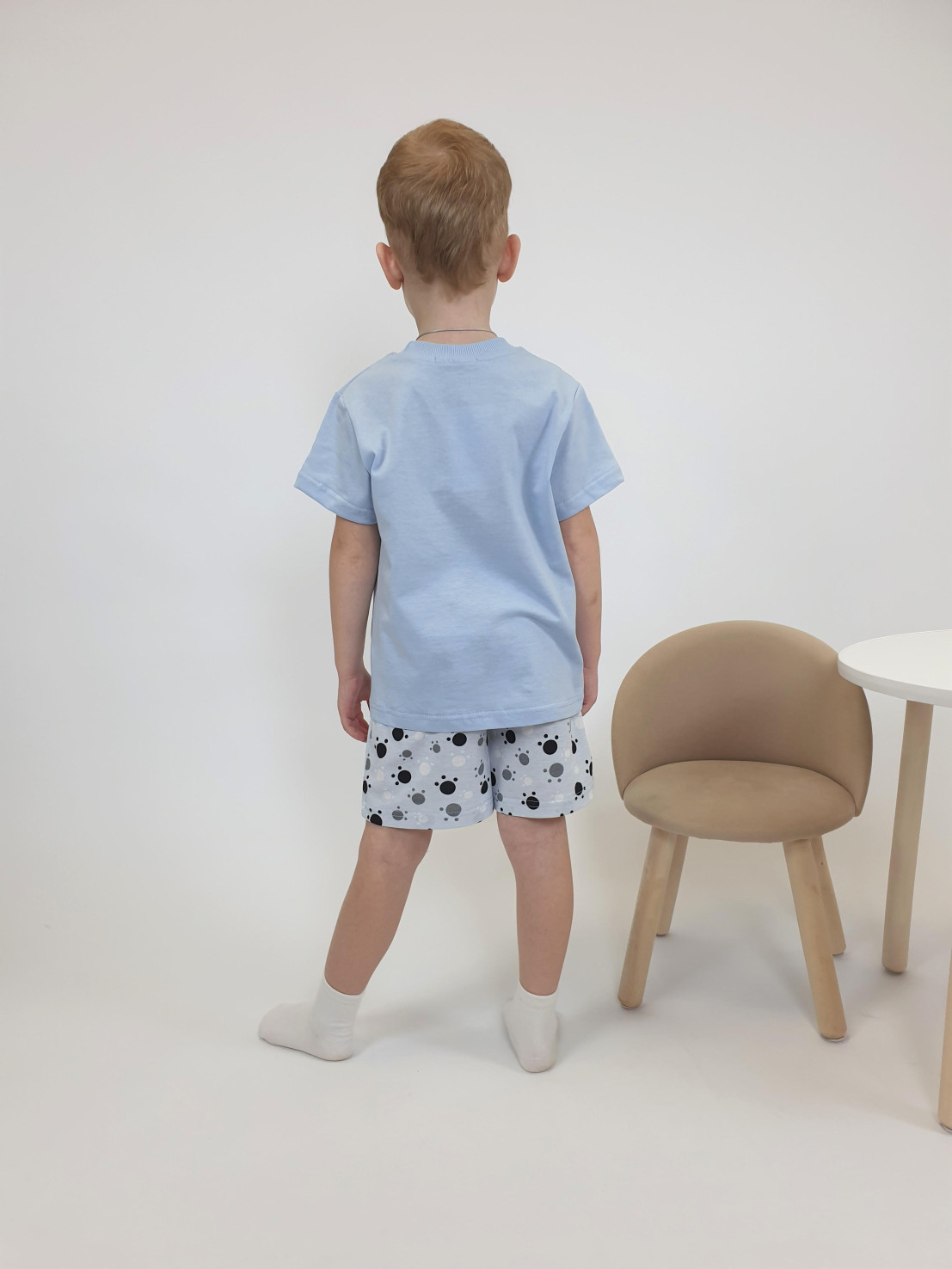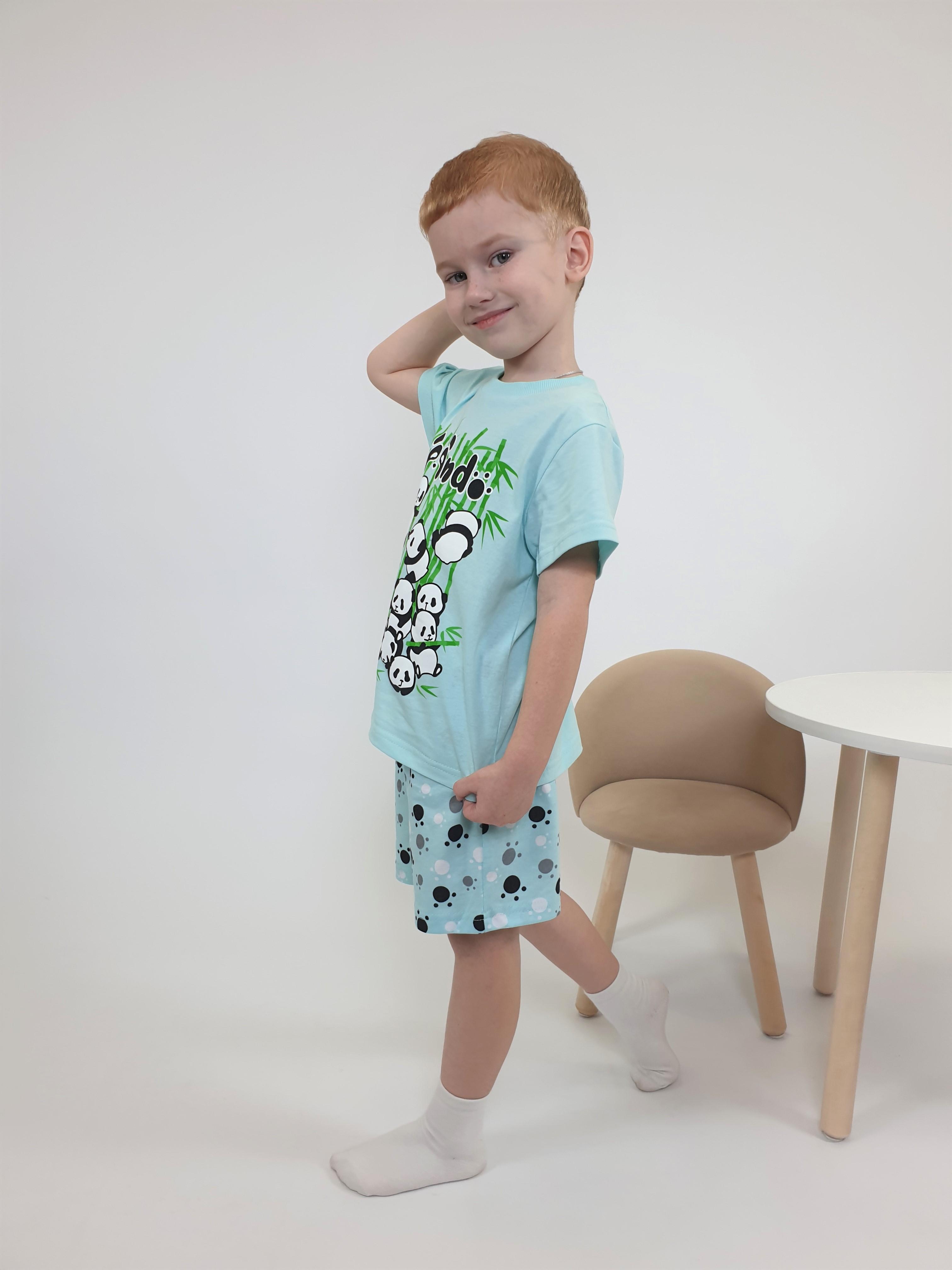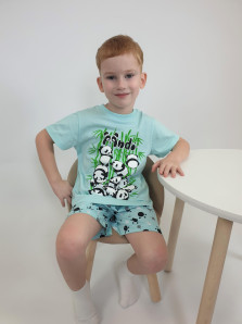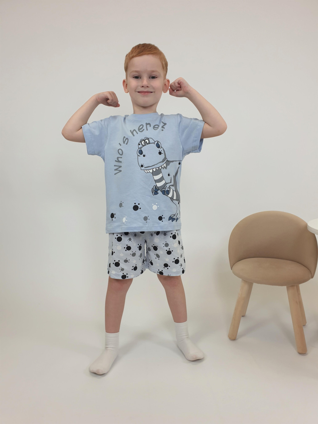 Кулирное полотно:100%х/б. Фуфайка-прямая,рукав втачной,короткий.Горловина обработана ластиком.Печать на переде. Брюки-короткие,верхний срез подшит с резинкой.