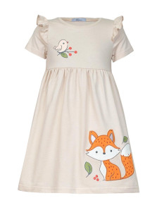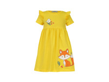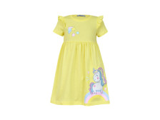 Кулирное полотно:100% х/б. Платье-отрезная юбка со сборкой,с вышивкой на переде.Кокетка переда с печатью.Короткий рукав,в пройме рюша,горловина обработана ластиком.
