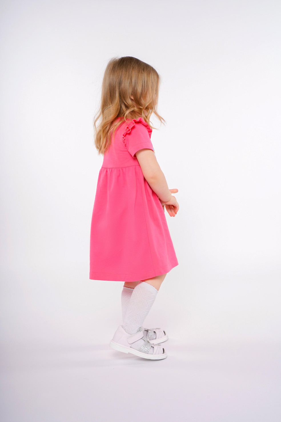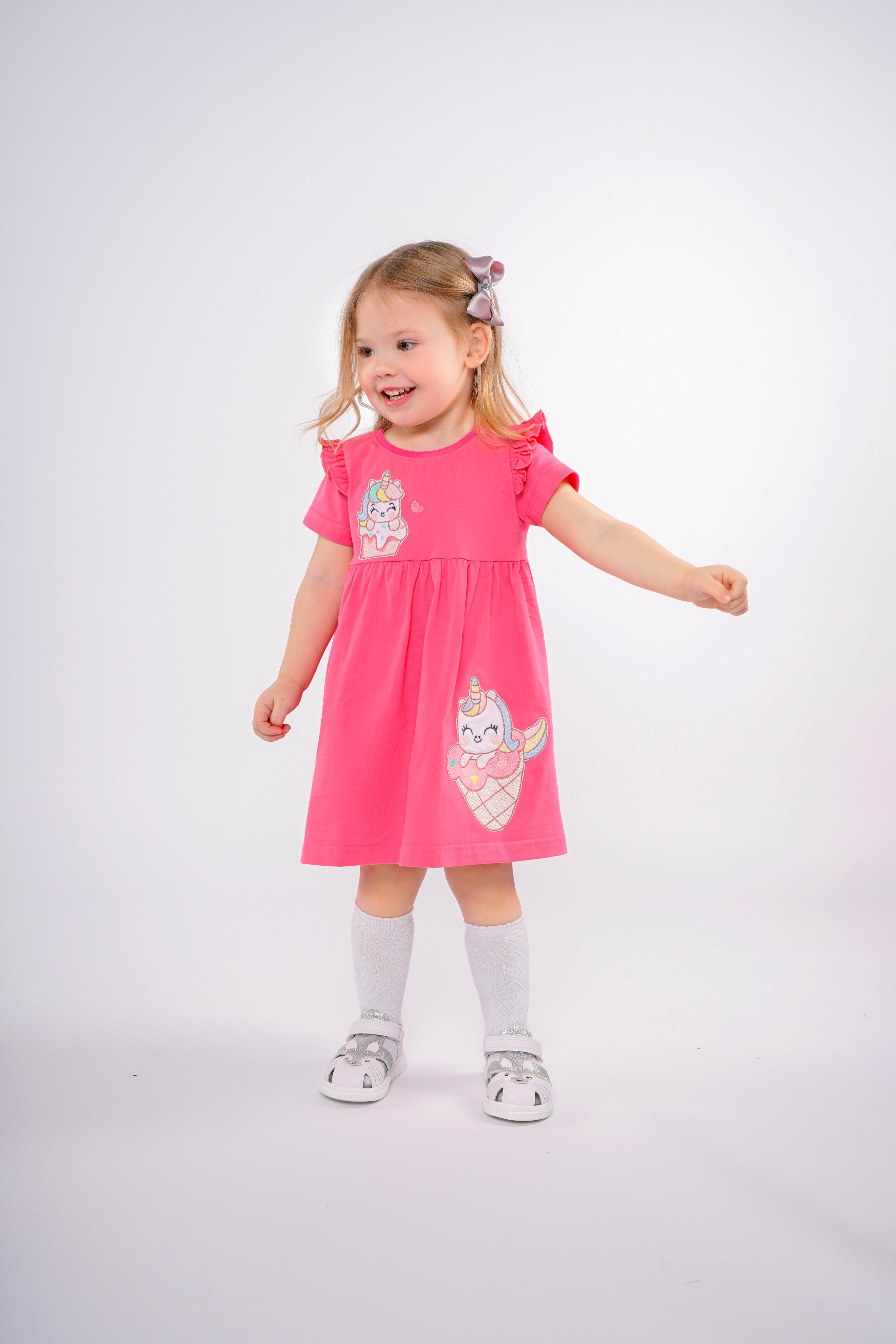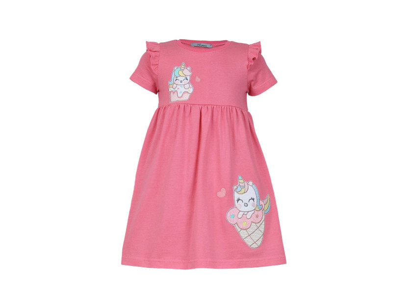 Кулирное полотно:100% х/б. Платье-отрезная юбка со сборкой,с вышивкой на переде.Кокетка переда с печатью.Короткий рукав,в пройме рюша,горловина обработана ластиком.