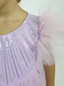 Кулирное полотно:95% х/б,5% лайкра,(подкладка-100% х/б,сетка(отделка)-100% п/э. Платье-приталенный силуэт на подкладке без рукава с рюшей из сетки.Отрезная юбка на подкладке с сеткой в два слоя.Вышивка(пайетки)на переде.Застежка по спинке "щель"на пуговицу.