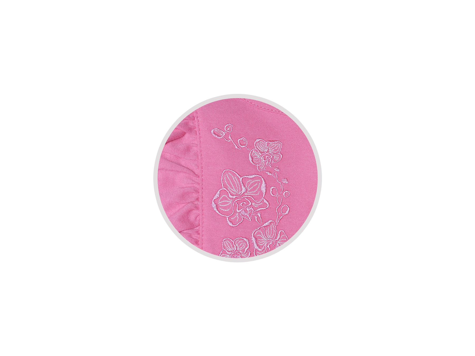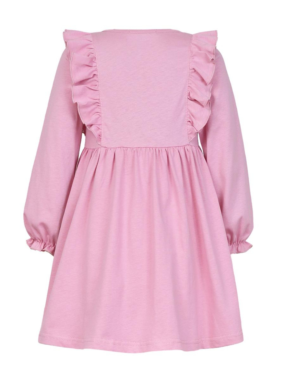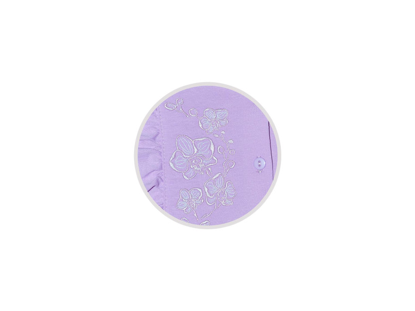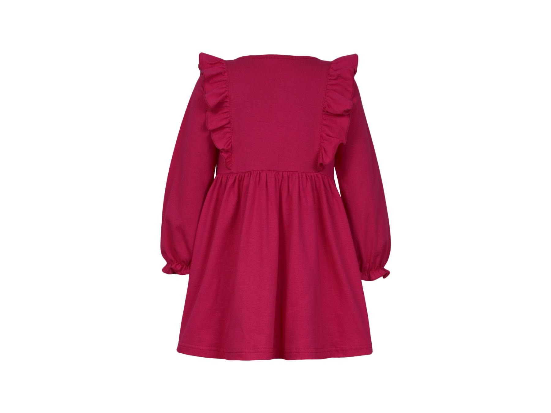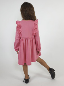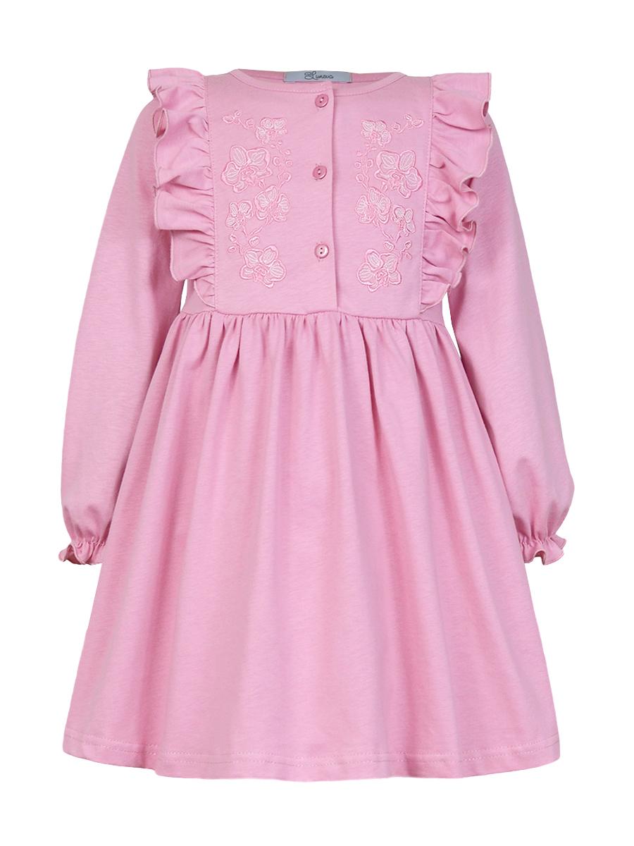 Кулирное полотно:100% х/б. Платье-полуприлегающего силуэта,длинный рукав с резинкой "венгерка" внизу.Отрезная юбка со сборкой.рельефы с рюшей.Вышивка на переде.Горловина окантована.застежка центральная на пуговицы.