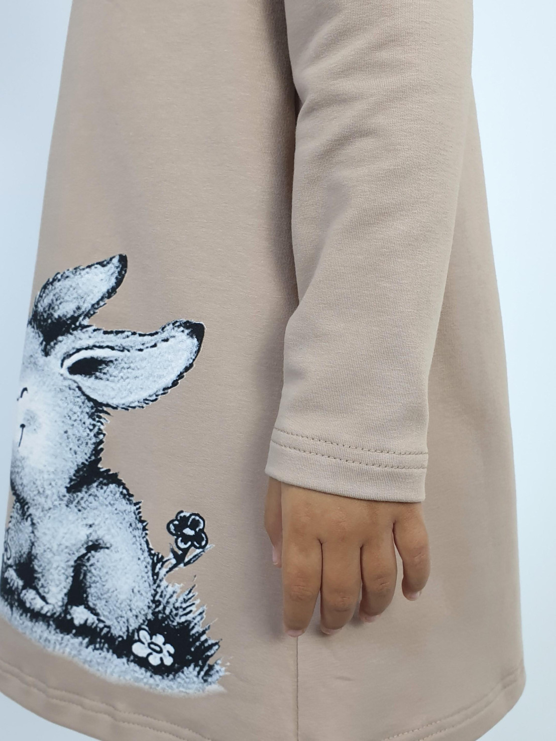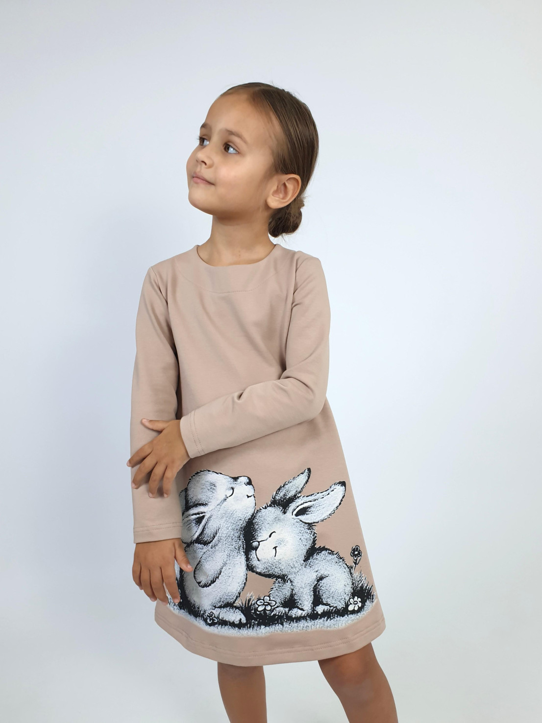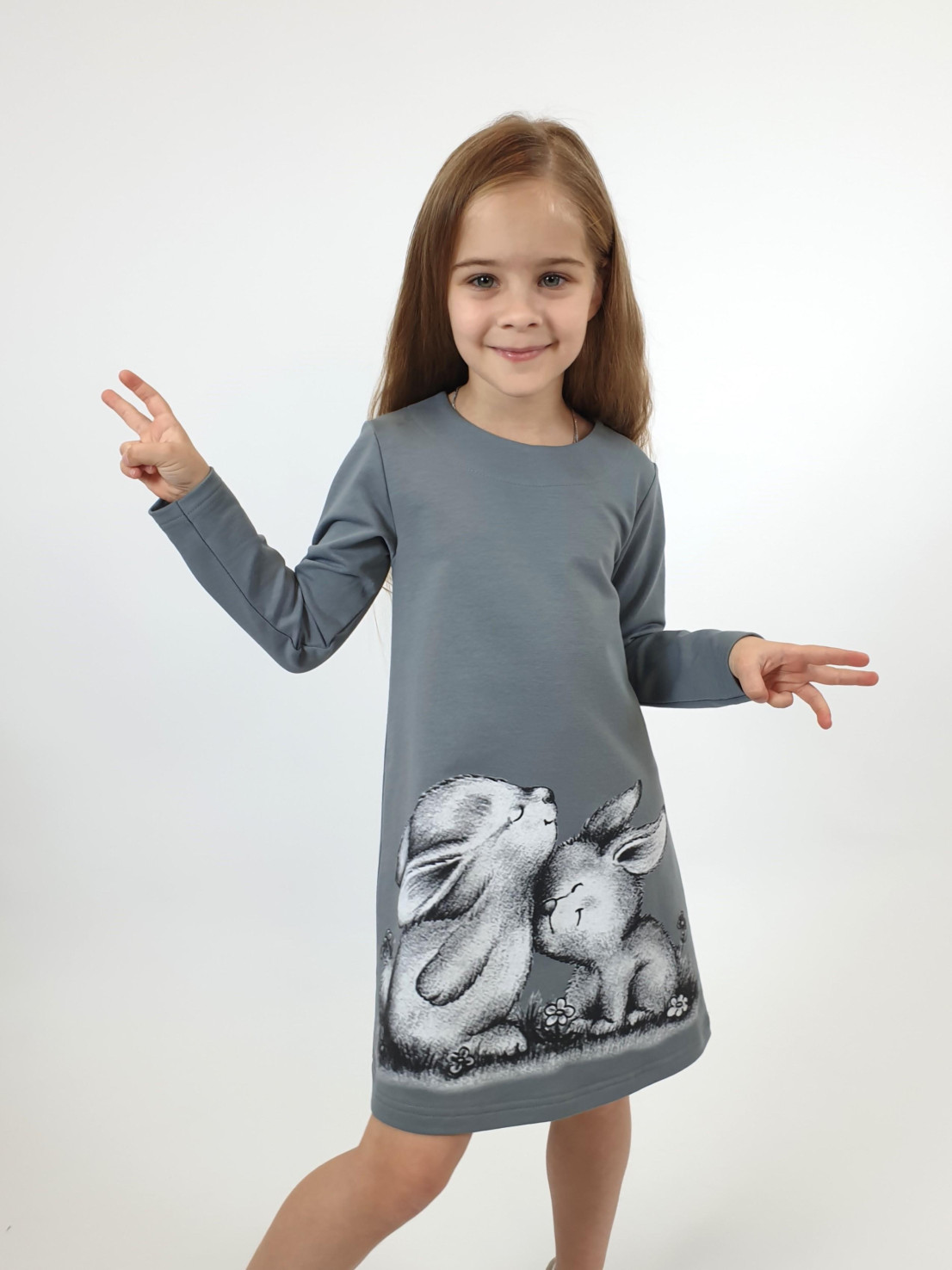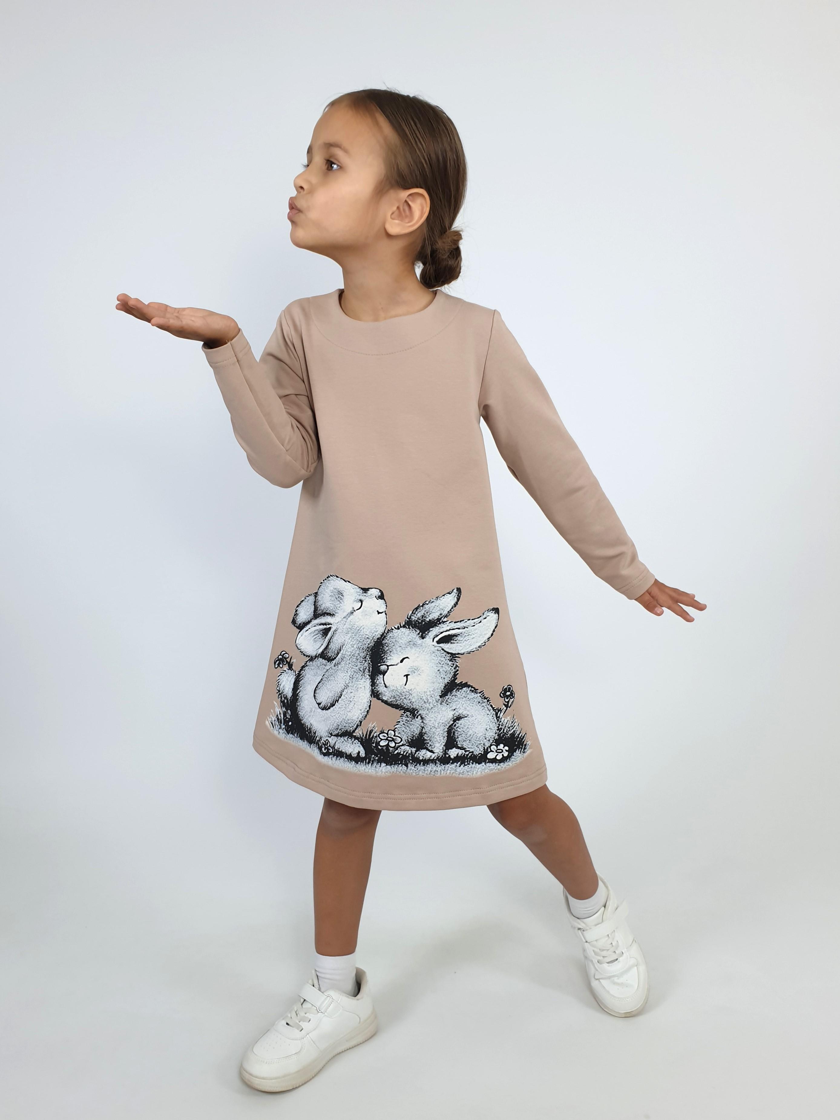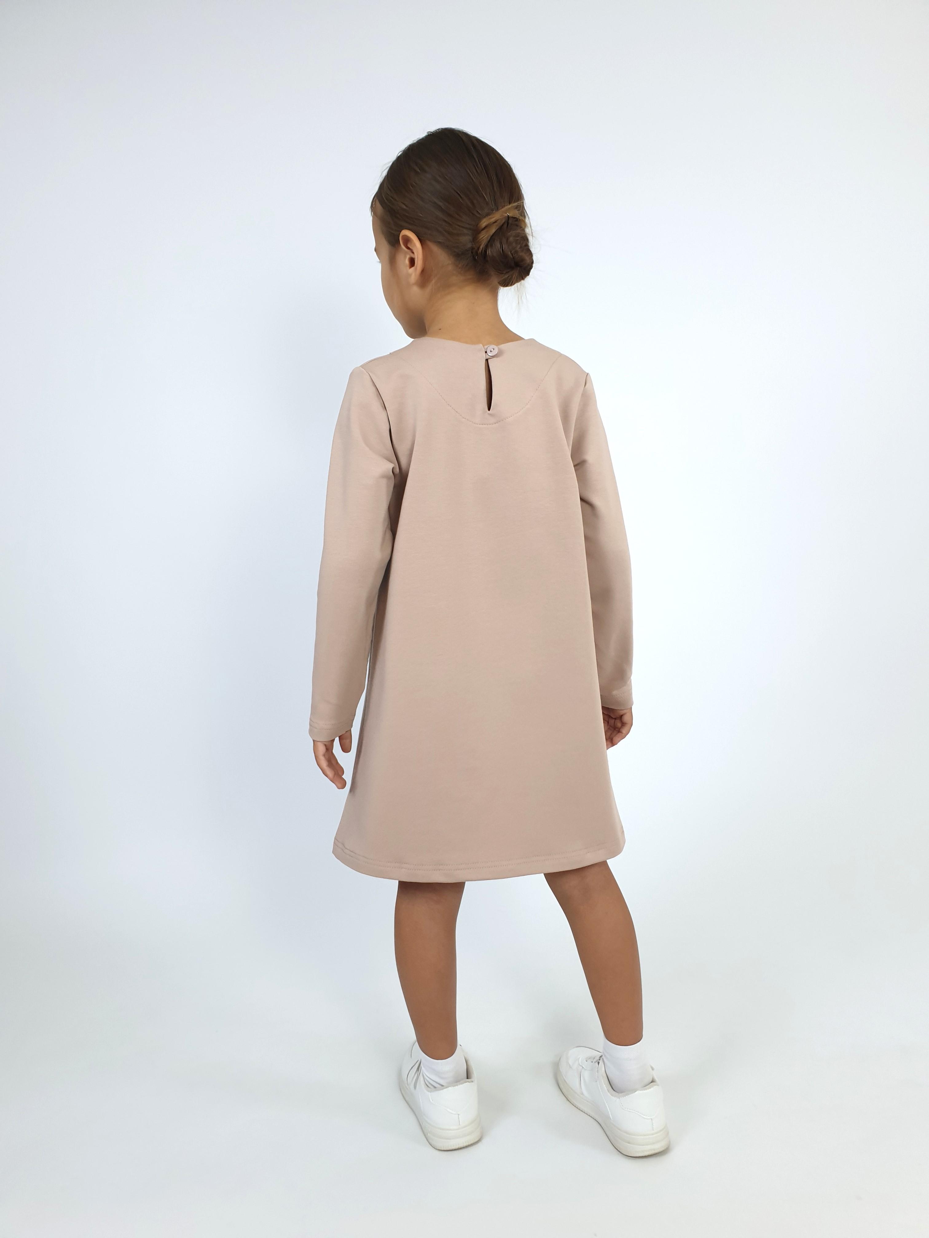 Платье с длинным рукавом выполнено из качественного футера (80% хлопок,15% п/э,5% лайкра). Модель силуэт трапеция, декорирована оригинальным принтом . Такое платье идеально подойдёт для прогулок, школы, детского сада и как повседневный вариант.