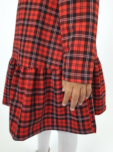 Футер двух нитка:75% х/б,25% п/э. Платье-силуэт трапеция,длинный рукав,сборка по окату.Отрезной волан внизу в сборку.Горловина обработана обтачкой,застежка по спинке на пуговицу.