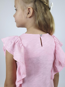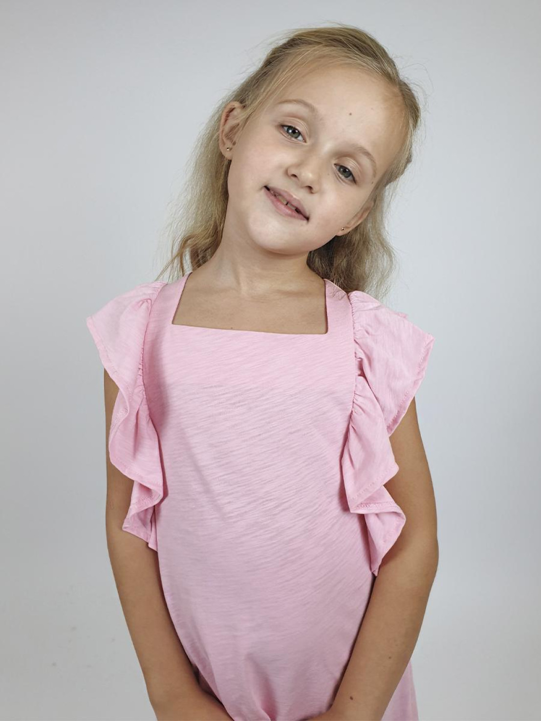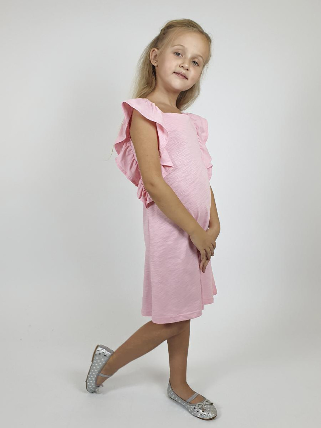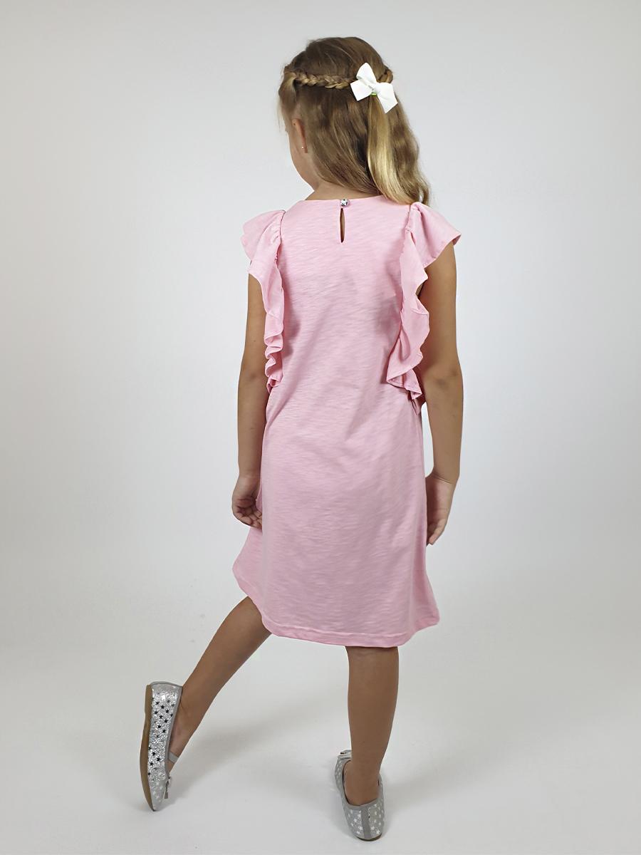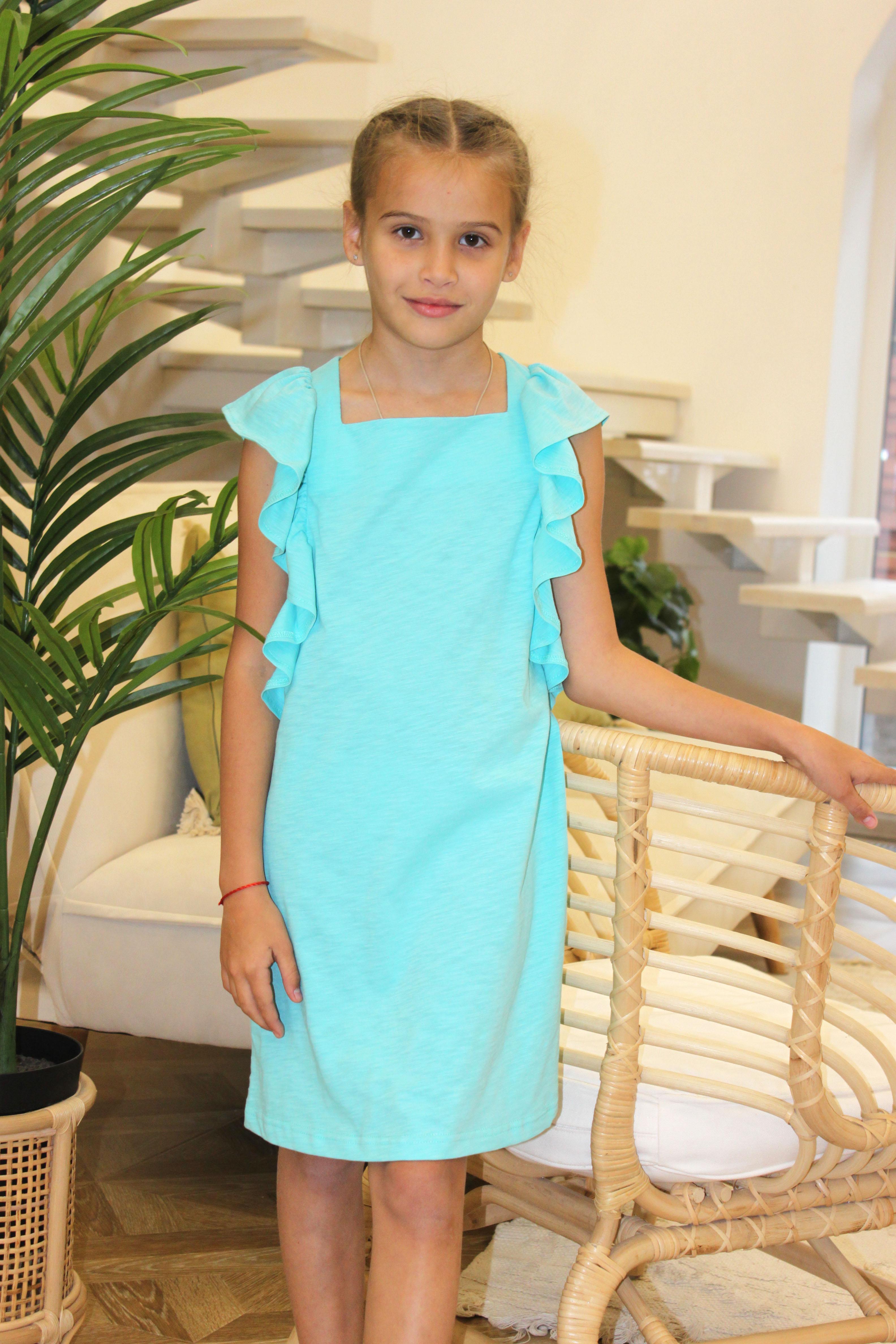 Летнее платье для девочки выполнено из качественного кулирного полотна (газе 100% хлопок). Модель – силуэт трапеция , декорирована рюшами. Удобная застёжка по спинке на пуговицу. Материал легкий, приятный на ощупь, устойчивый к частым стиркам. Приятный трендовый цвет можно легко сочетать с любыми образами, как на каждый день, так и при особых случаях.