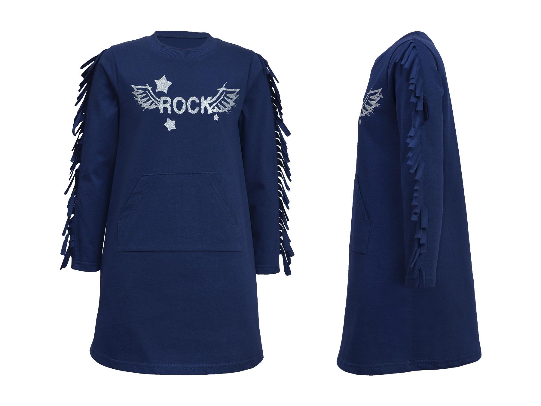 Платье с длинным рукавом выполнено из качественного кулирного полотна (100% хлопок). Модель силуэт трапеция, декорирована оригинальным принтом и изящной бахромой на рукавах.Такое платье идеально подойдёт для прогулок, школы, детского сада и как повседневный вариант.