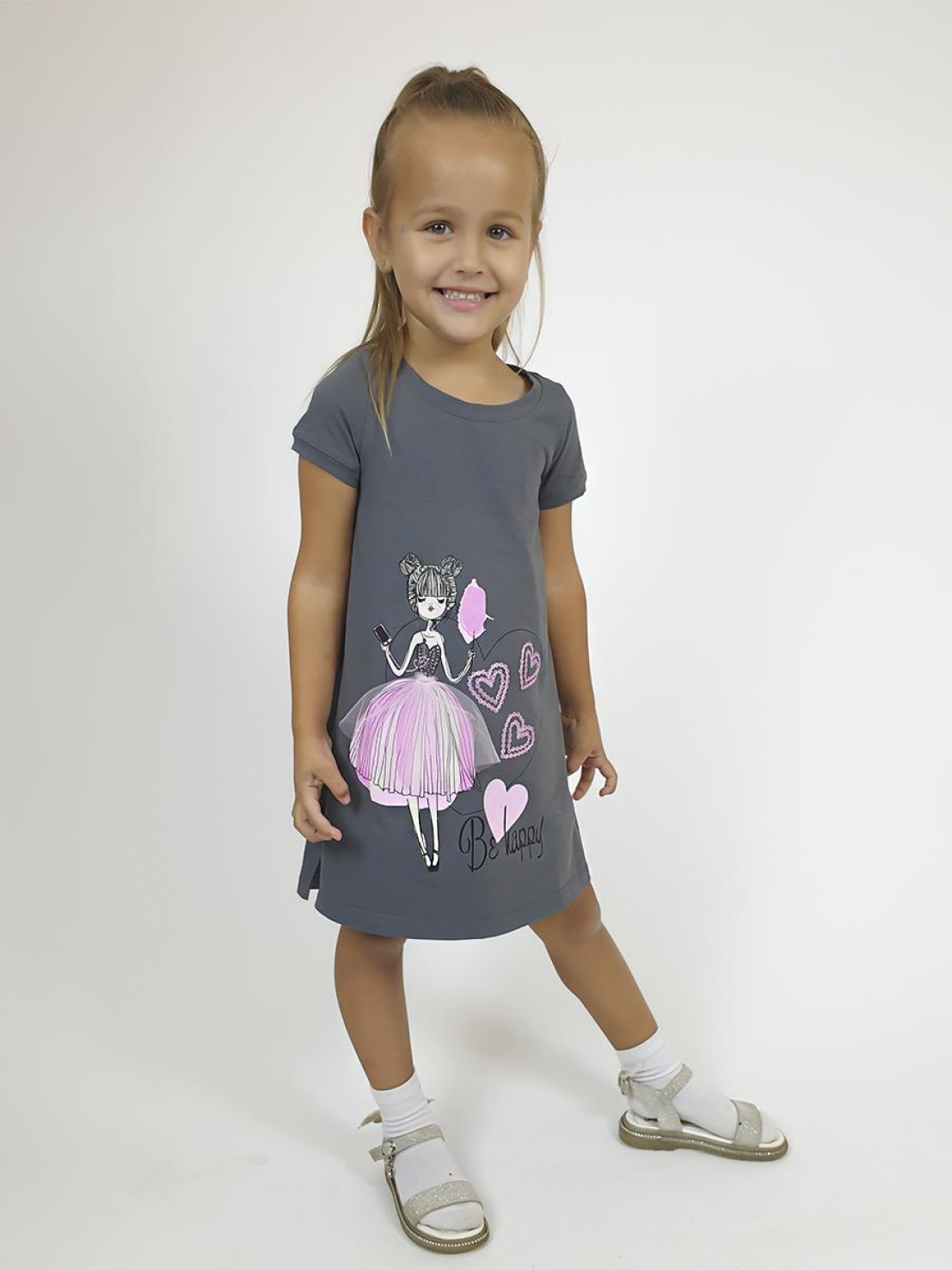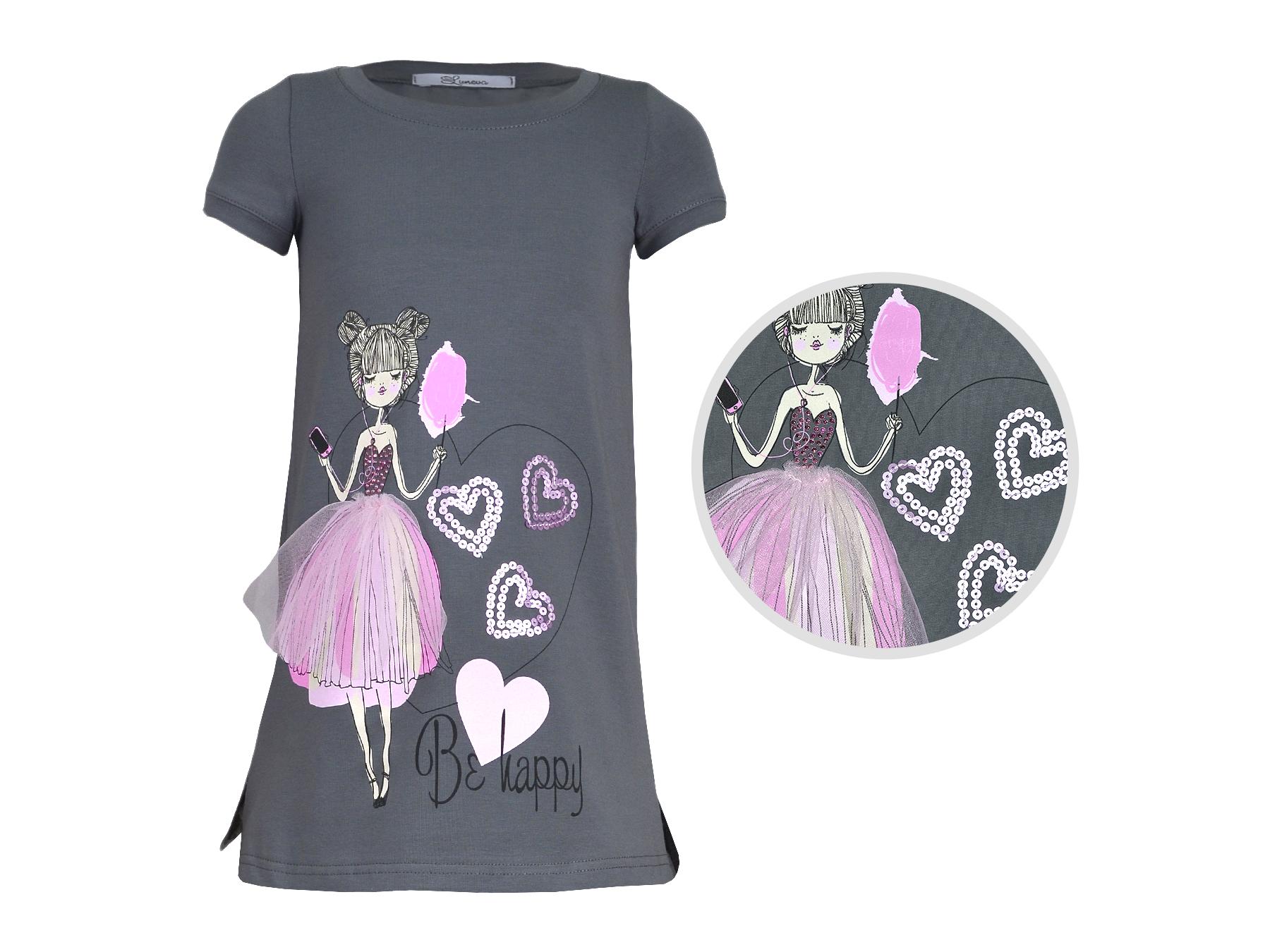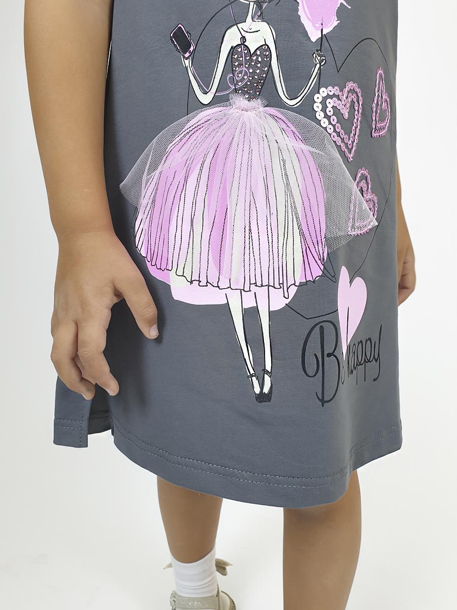Летнее платье для девочки выполнено из качественного кулирного полотна (95% хлопок,5% лайкра).Модель – силуэт трапеция , декорирована оригинальным принтом с вышивкой (пайетки) и отделочным элементом юбочкой-сеткой. . Такое платье идеально подойдёт как на каждый день, так и при особых случаях. Материал легкий, приятный на ощупь, устойчивый к частым стиркам.