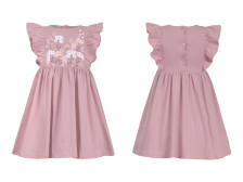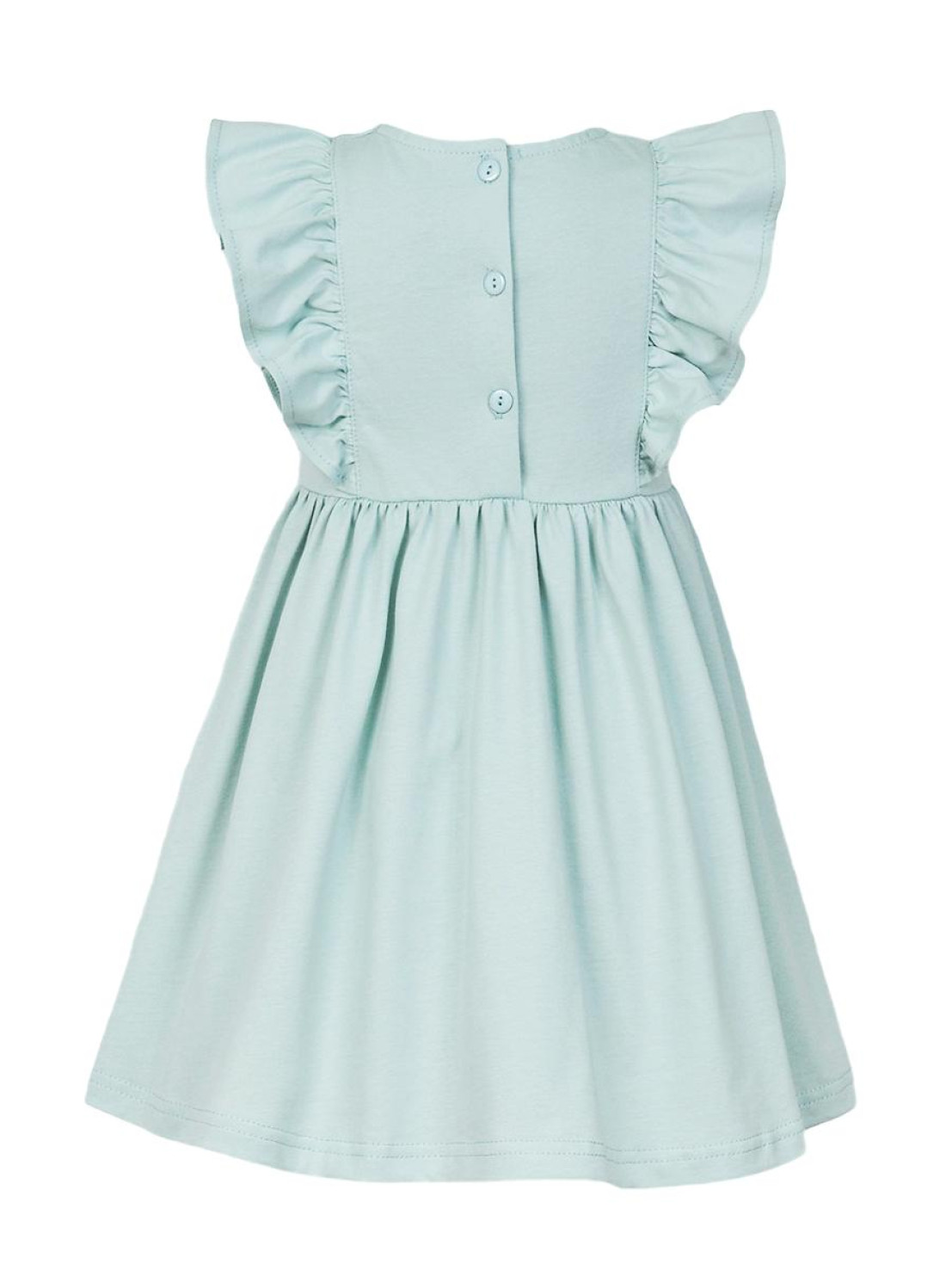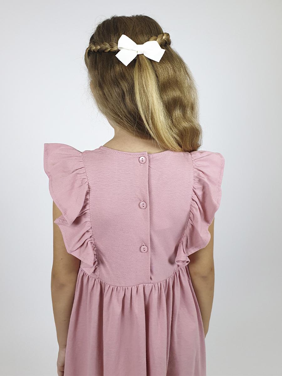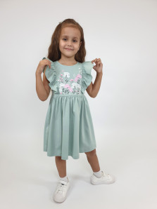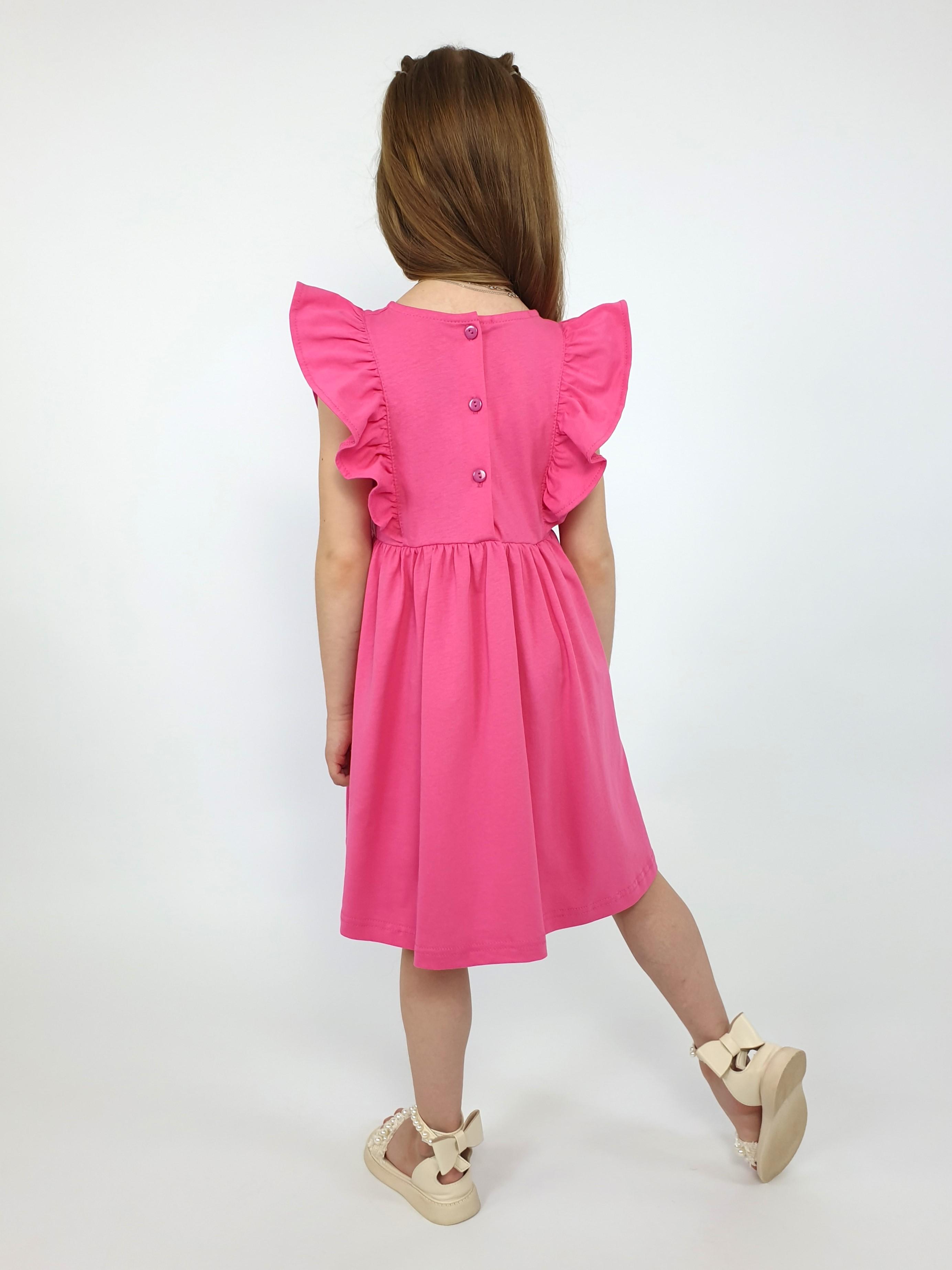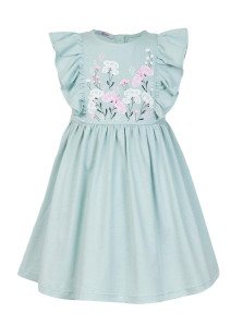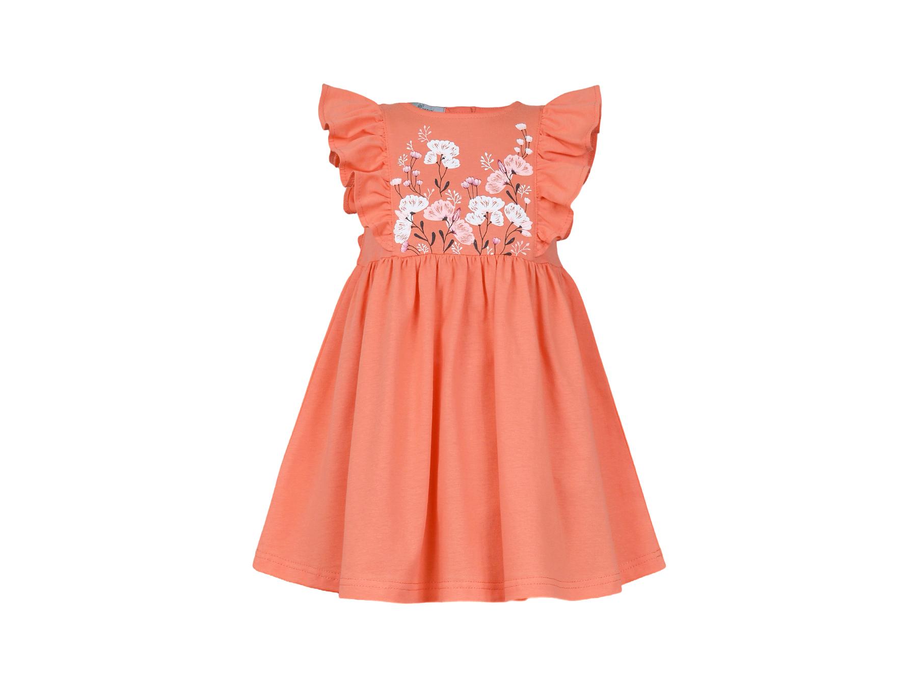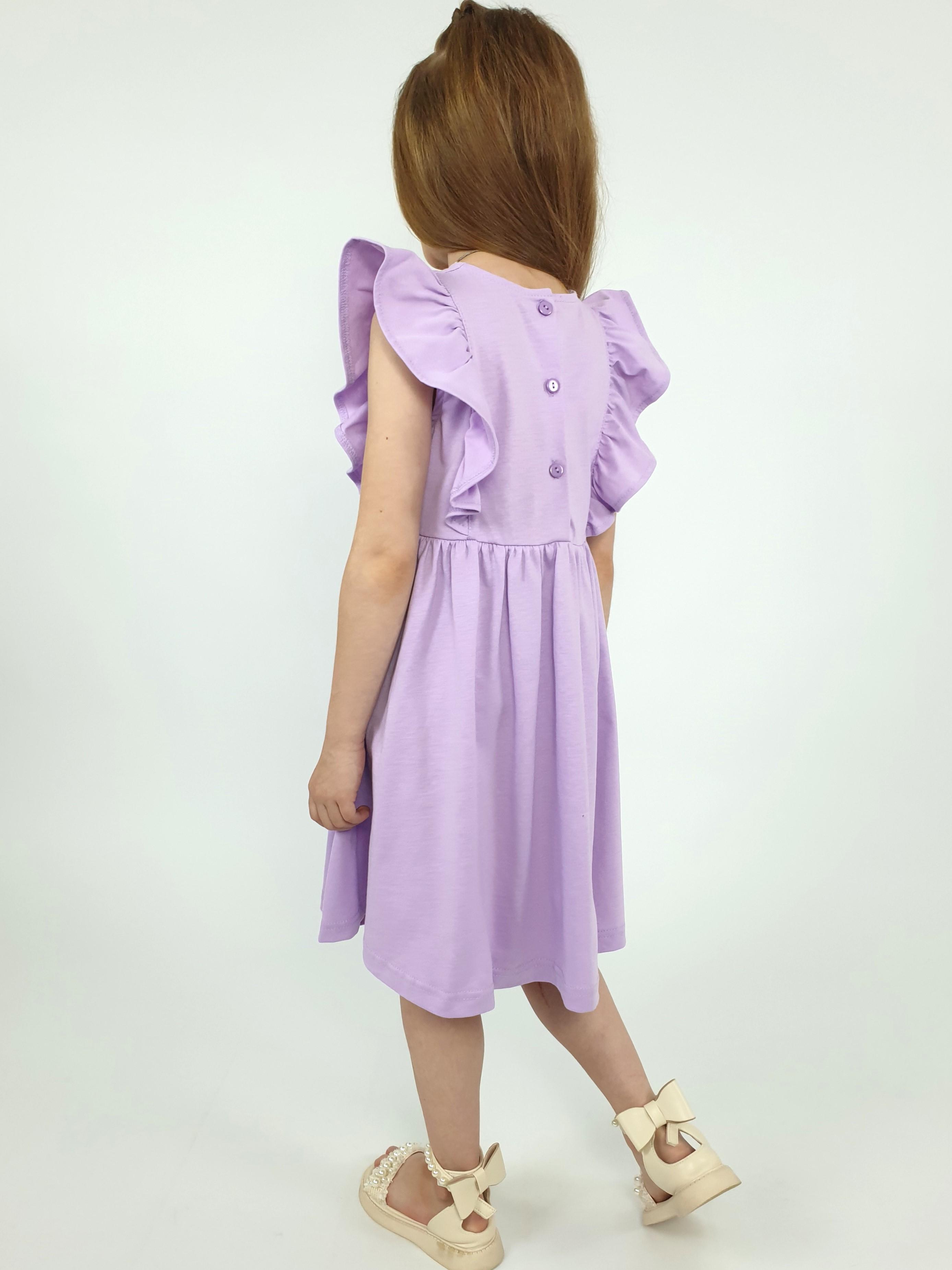 Летнее платье для девочки выполнено из качественного кулирного полотна (100% хлопок). Модель полуприлегающего силуэта ,декорирована цветочным принтом с рюшами .Удобная застёжка по спинке на пуговицы .Такое платье идеально подойдёт как на каждый день, так и при особых случаях. Материал легкий, приятный на ощупь, устойчивый к частым стиркам.