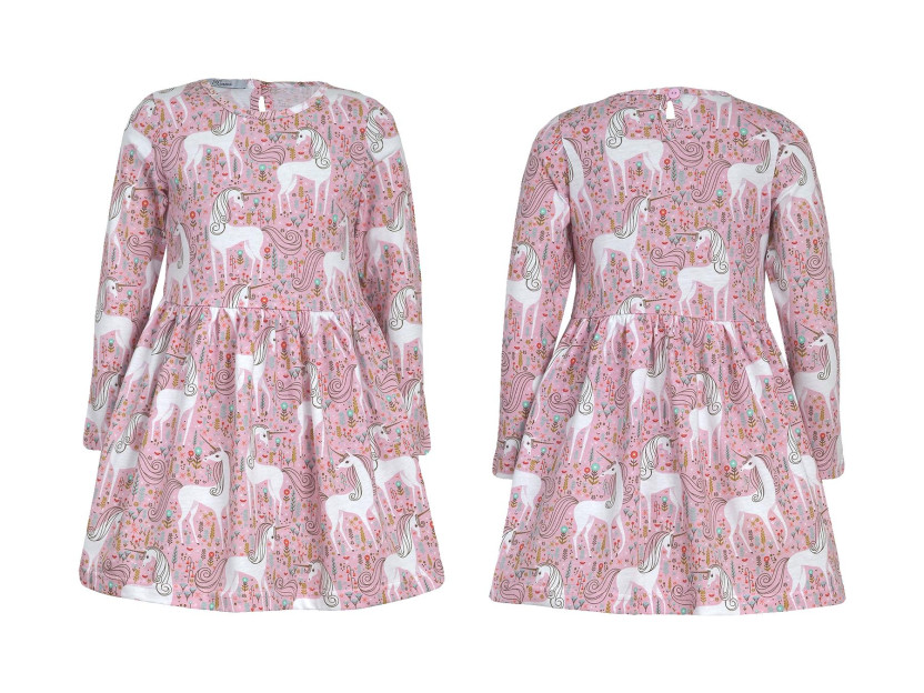 Кулирное полотно (набивка):100% х/б. Платье-полуприлегающего силуэта,отрезная юбка со сборкой.Втачной,длинный рукав.Застежка на спинке капля с пуговицей,горловина окантована.