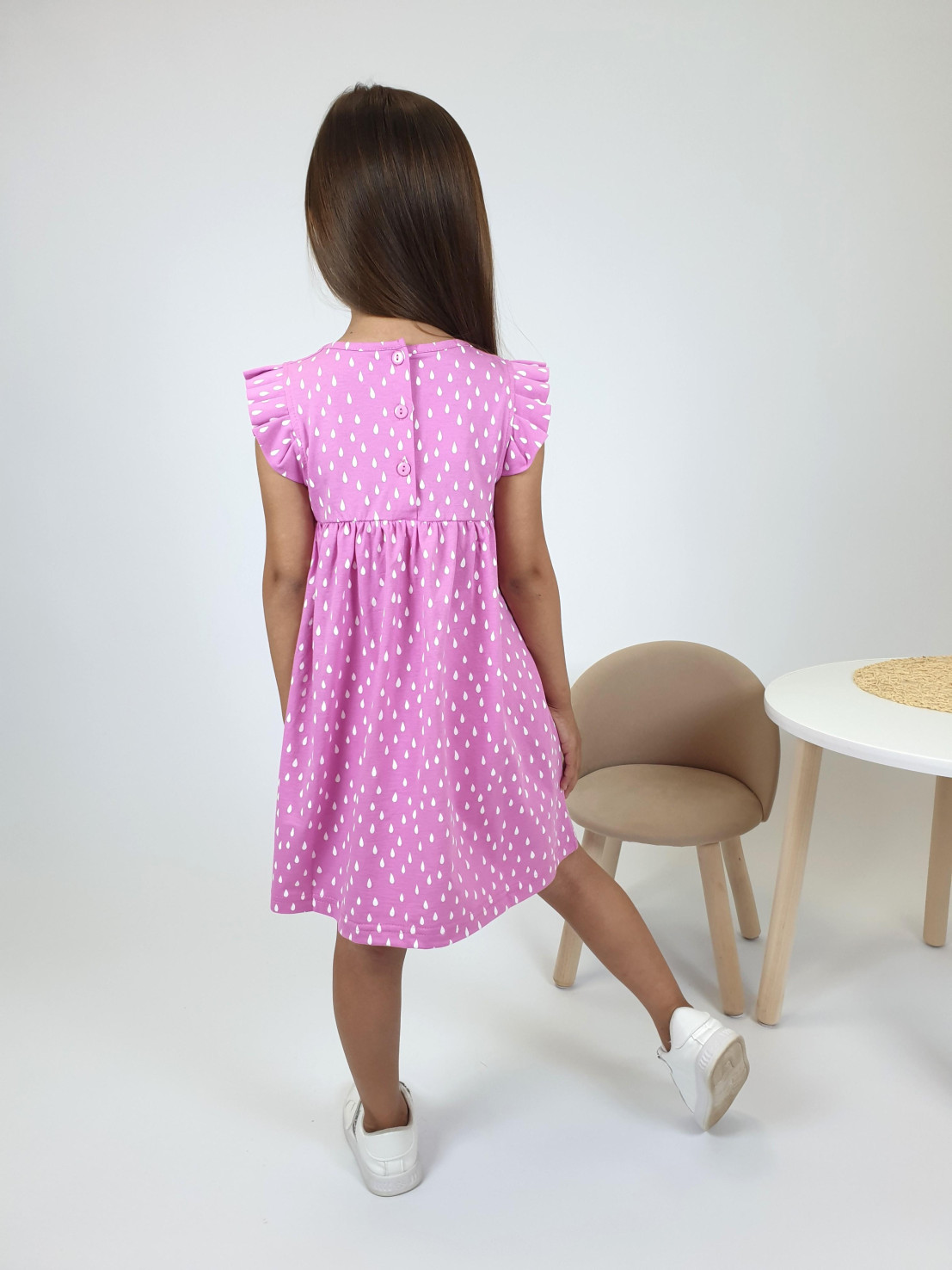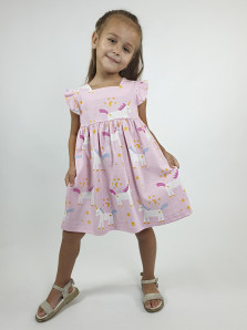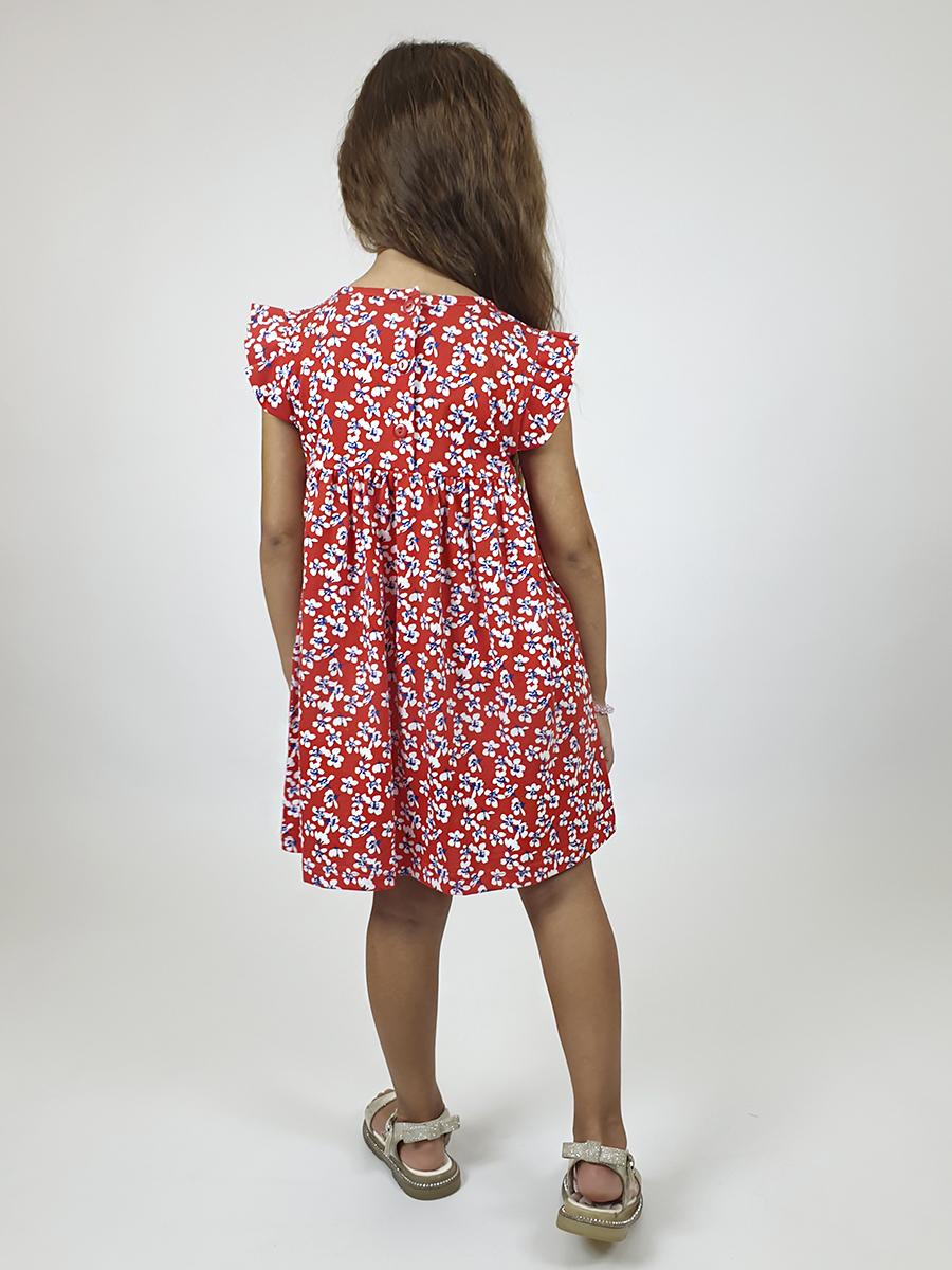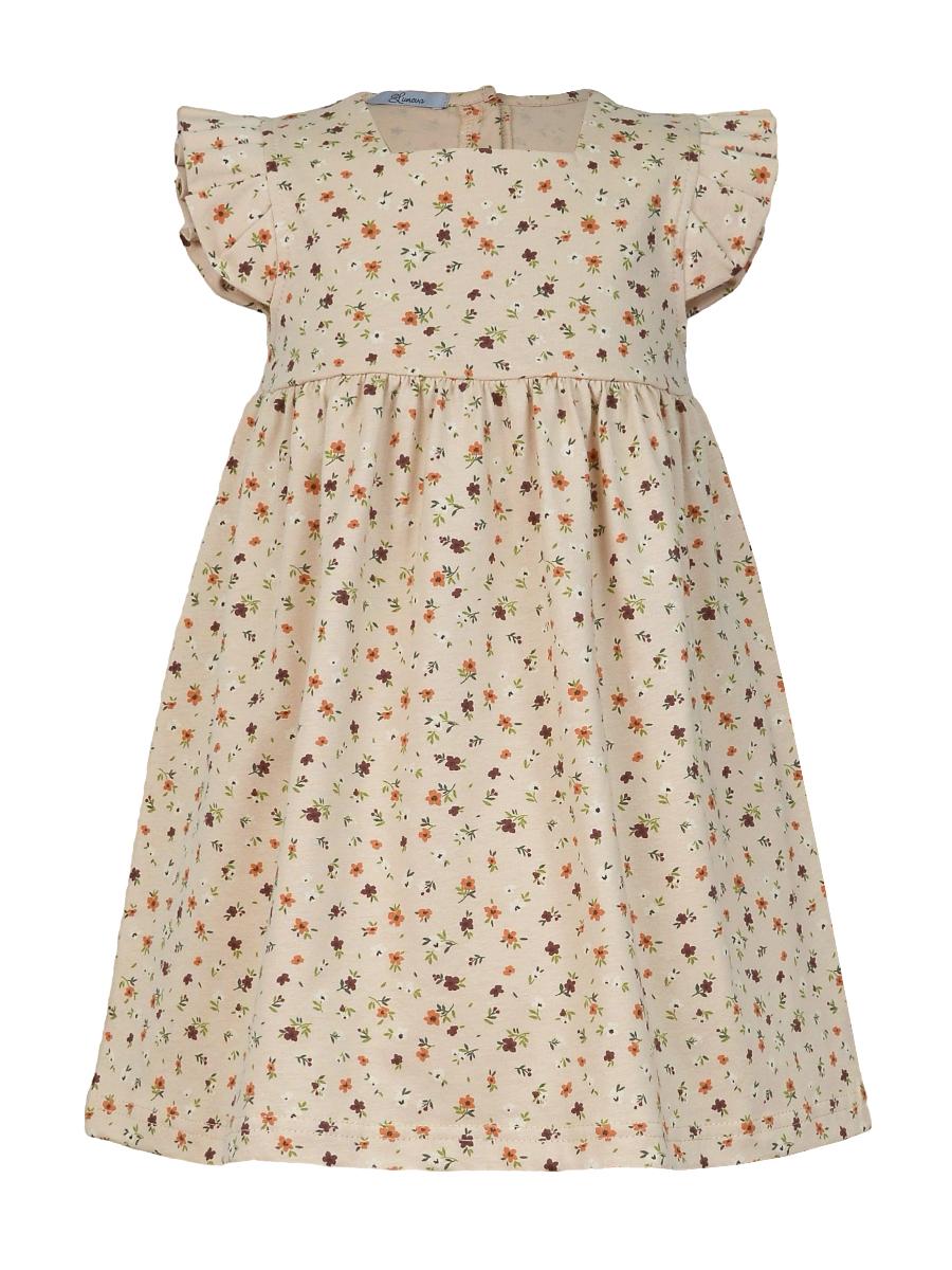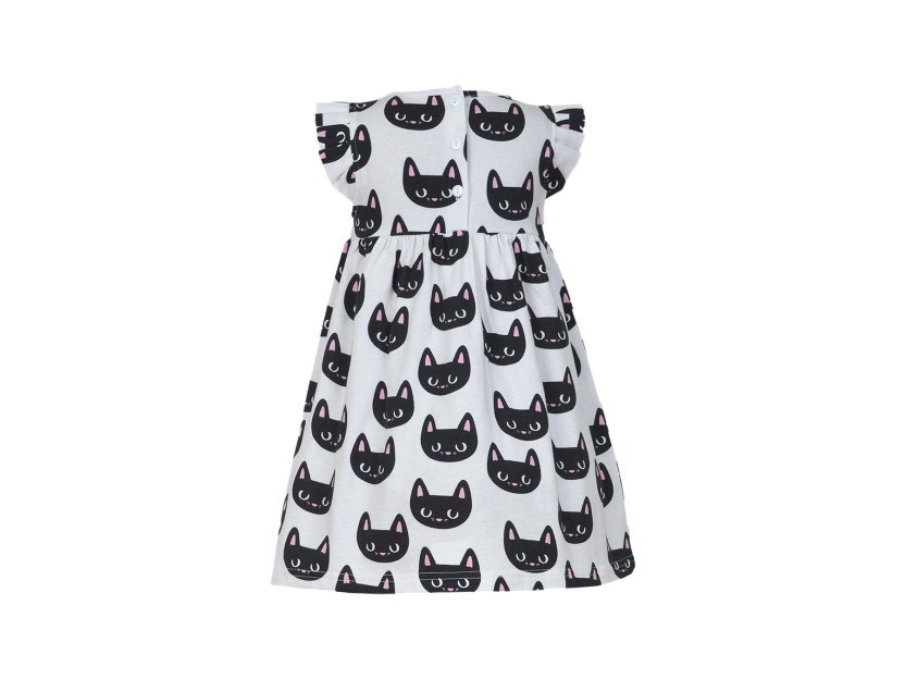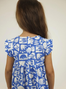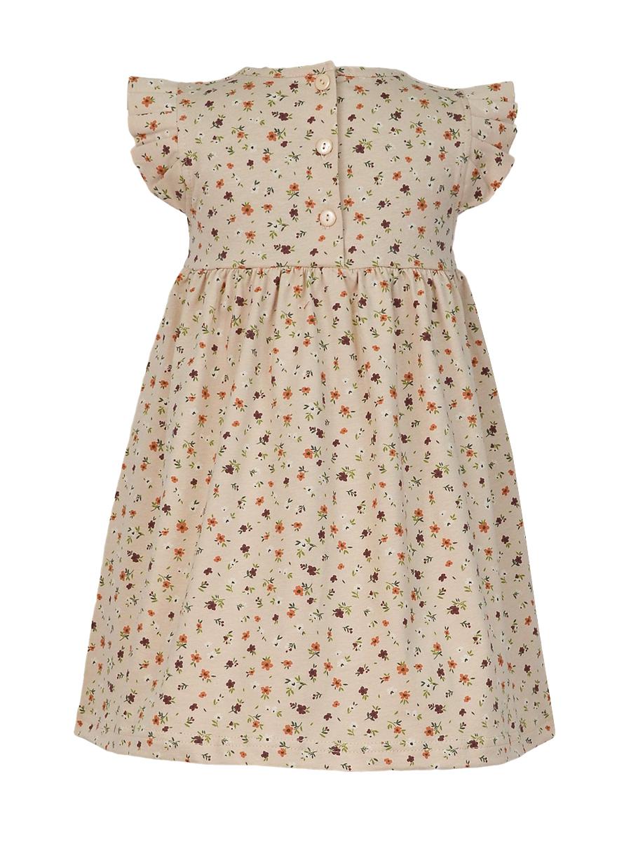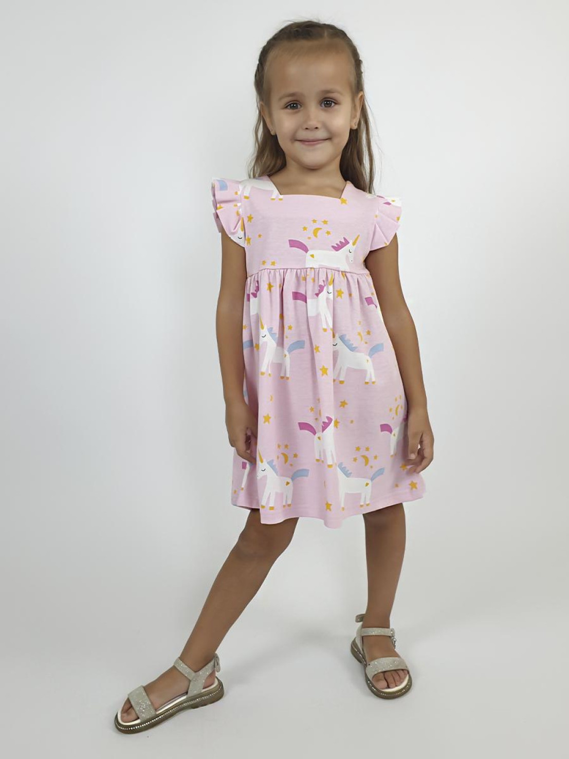 Кулирное полотно(набивка):100% х/б. Платье-завышена линия талии,отрезная юбка со сборкой.Рукав-рюша в складку.Вырез горловины квадратный,застежка по спинке на пуговицы.Низ юбки подшит.