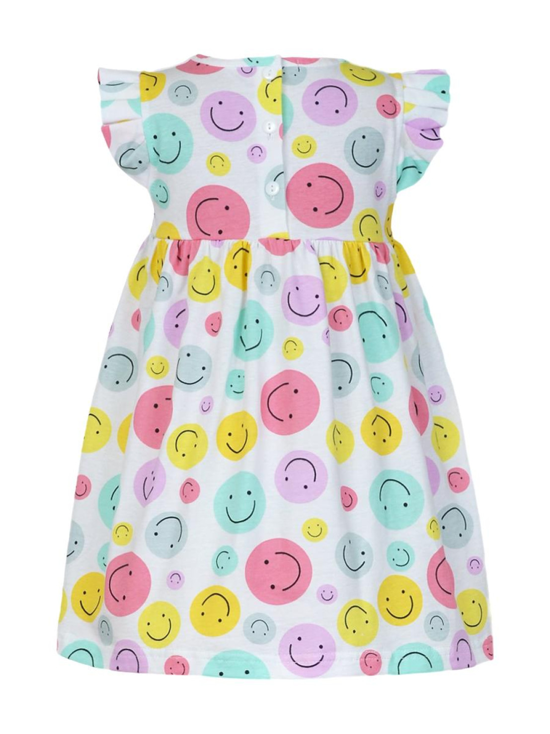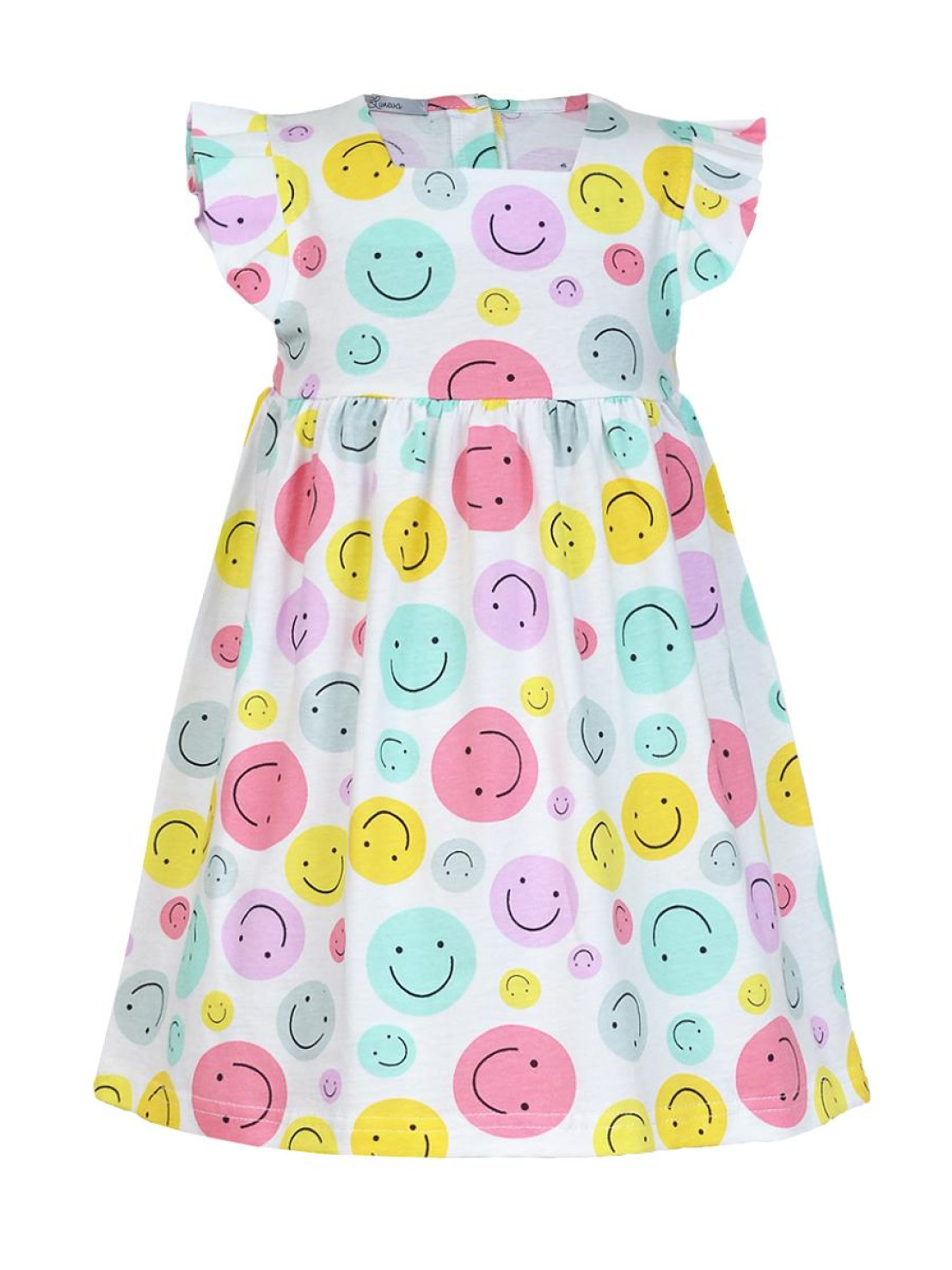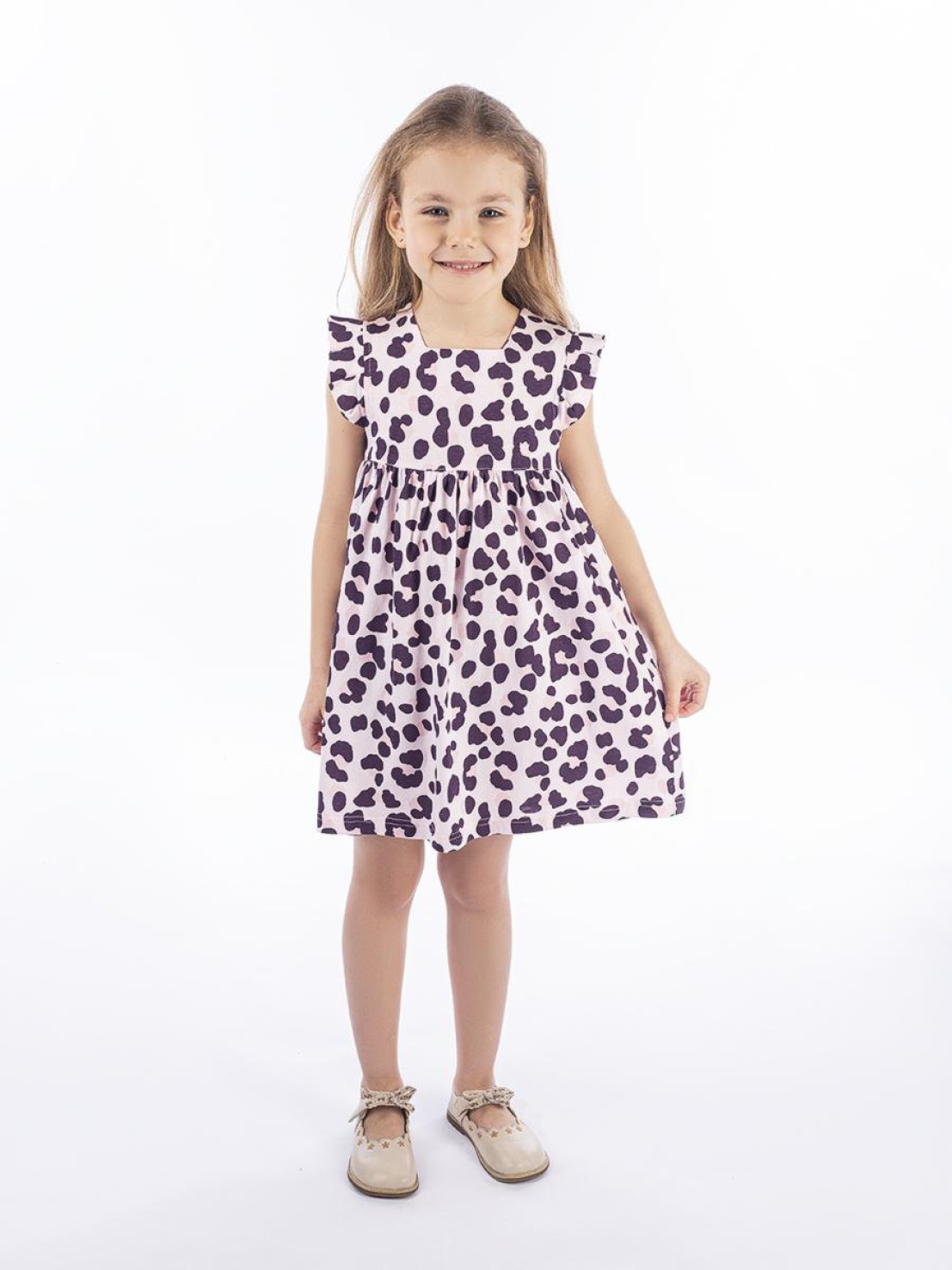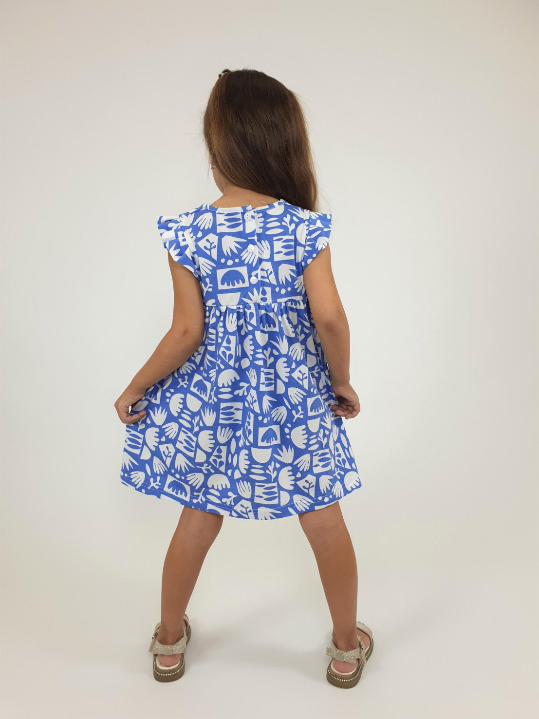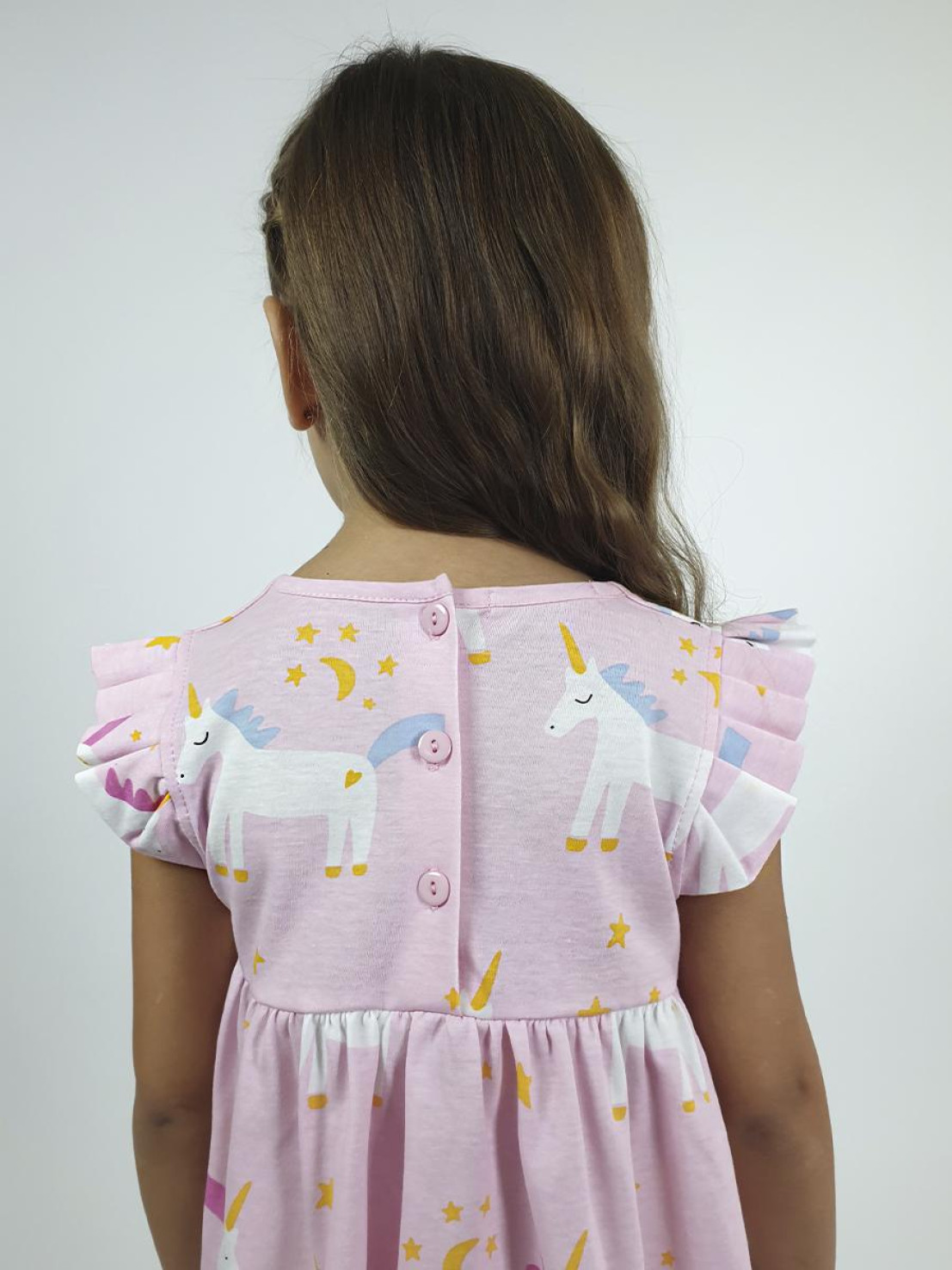 Кулирное полотно(набивка):100% х/б. Платье-завышена линия талии,отрезная юбка со сборкой.Рукав-рюша в складку.Вырез горловины квадратный,застежка по спинке на пуговицы.Низ юбки подшит.