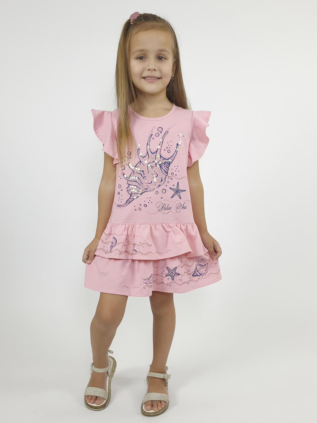 Летнее платье выполнено из качественного кулирного полотна (100% хлопок).Модель силуэт трапеция , декорирована оригинальной вышивкой с пайетками и изящными воланами . Застёжка по спинке на пуговицу. Такое платье идеально подойдёт для прогулки, а также для садика, похода в гости. Материал легкий, приятный на ощупь, устойчивый к частым стиркам.