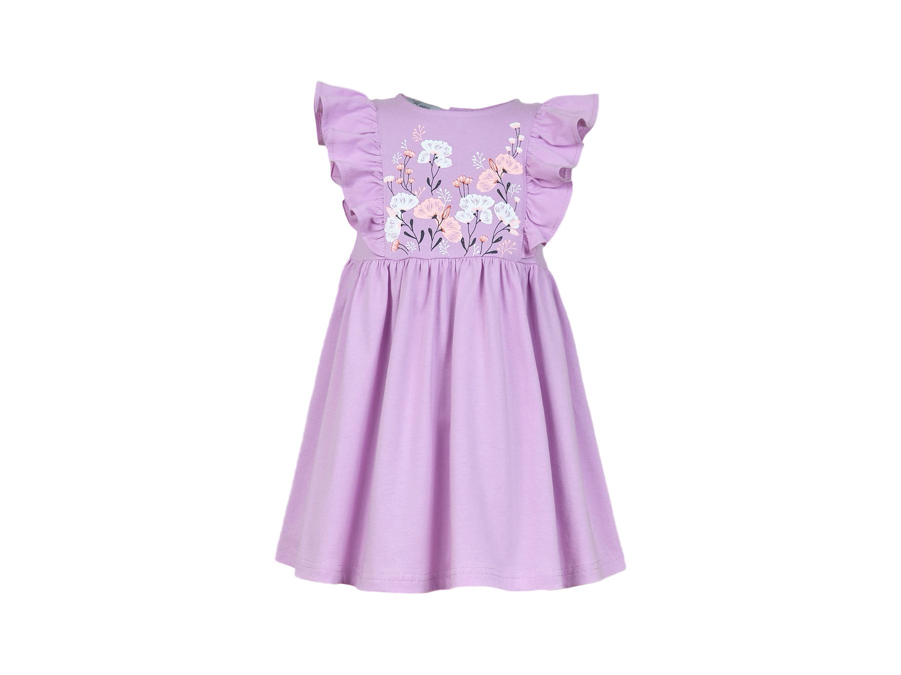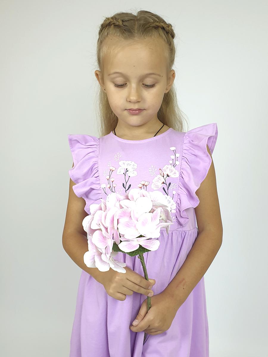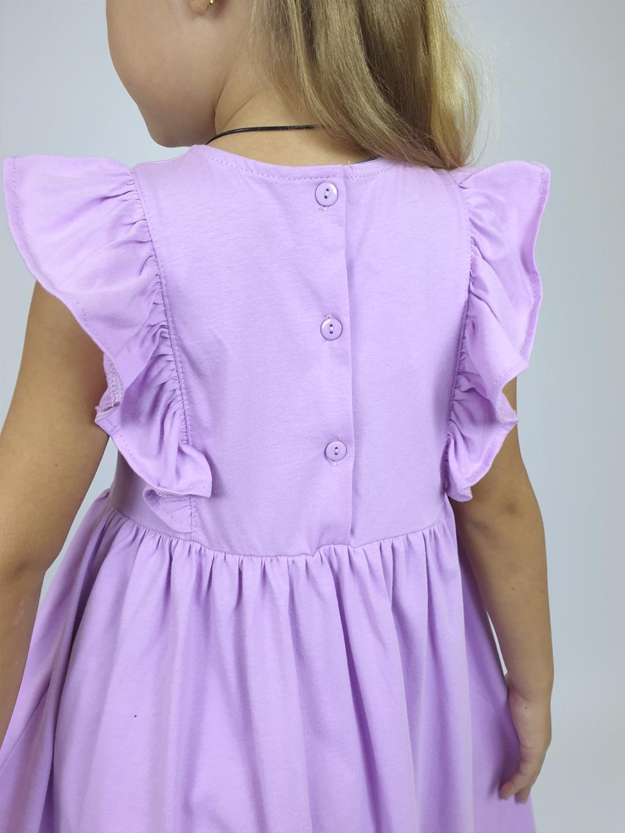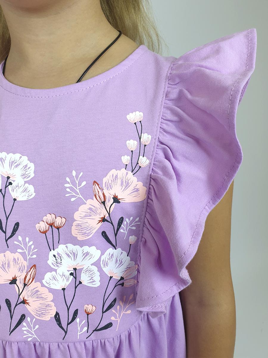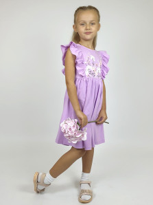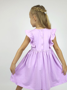 Кулирное полотно:100% х/б. Платье- полуприлегающего силуэта. Отрезная юбка со сборкой, рельефы с рюшей. Печать на переде. Горловина окантована и подшита, застежка сзади на пуговицы.