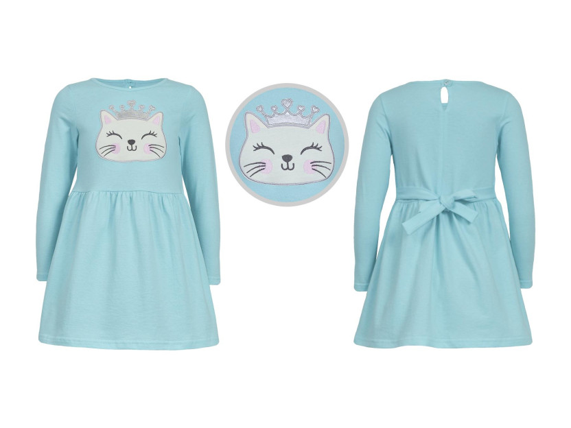 Кулирное полотно:100% х/б. Платье-полуприлегающего силуэта,отрезная юбка со сборкой,перед с вышивкой,длинный рукав.Горловина окантована.застежка по спинке на пуговицу,завязывающийся пояс сзади.
