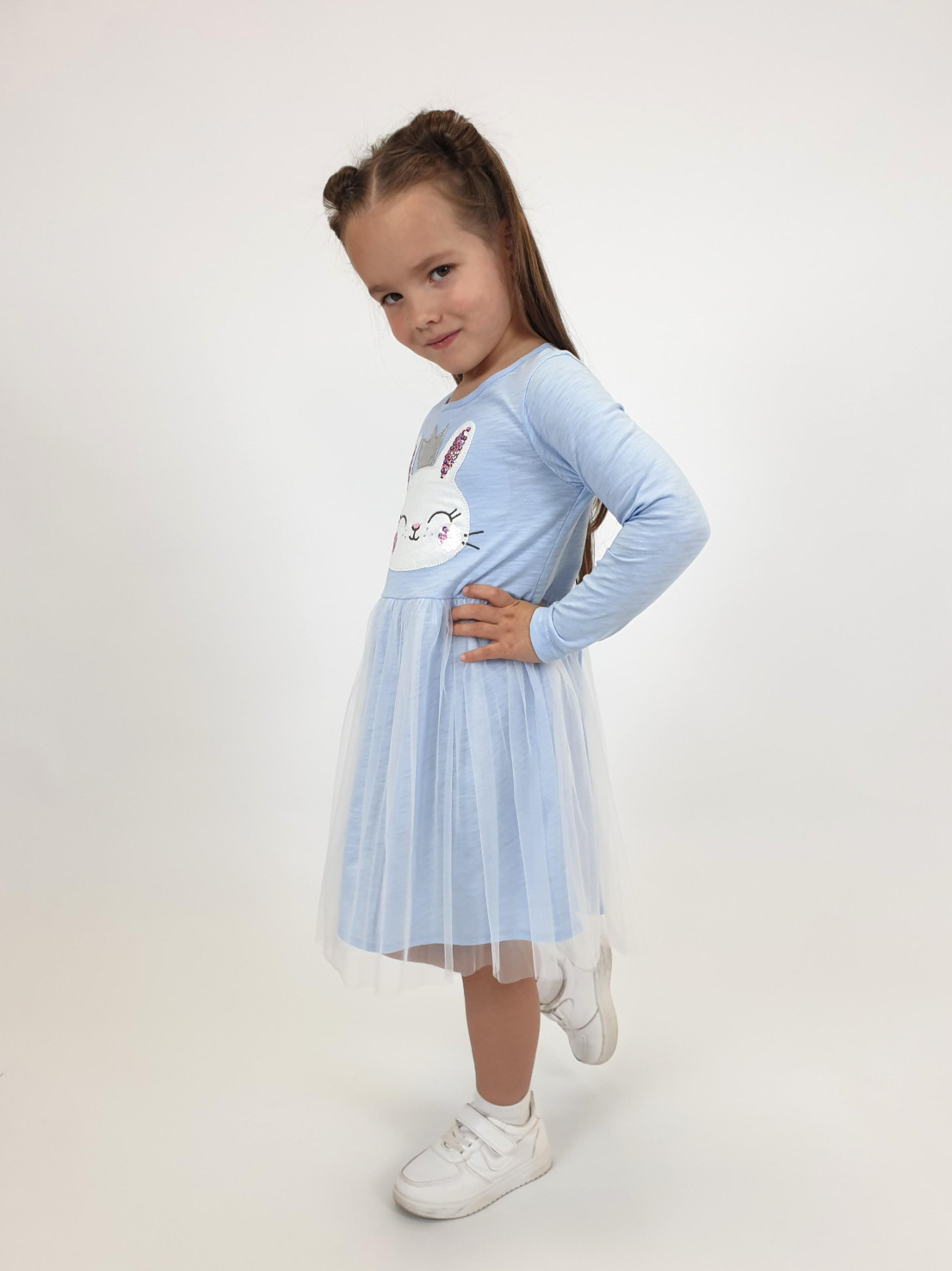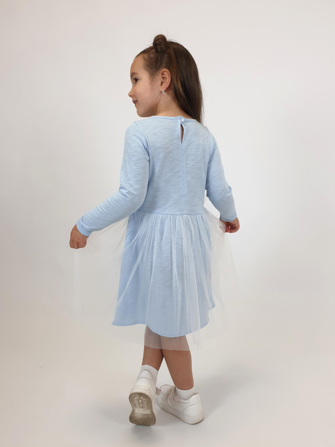 Кулирное полотно(газе):100% х/б,сетка-100% п/э. Платье-полуприлегающего силуэта,длинный рукав.Отрезная юбка с сеткой.Перед с вышивкой-аппликацией.Горловина окантована,застежка по спинке на пуговицу.