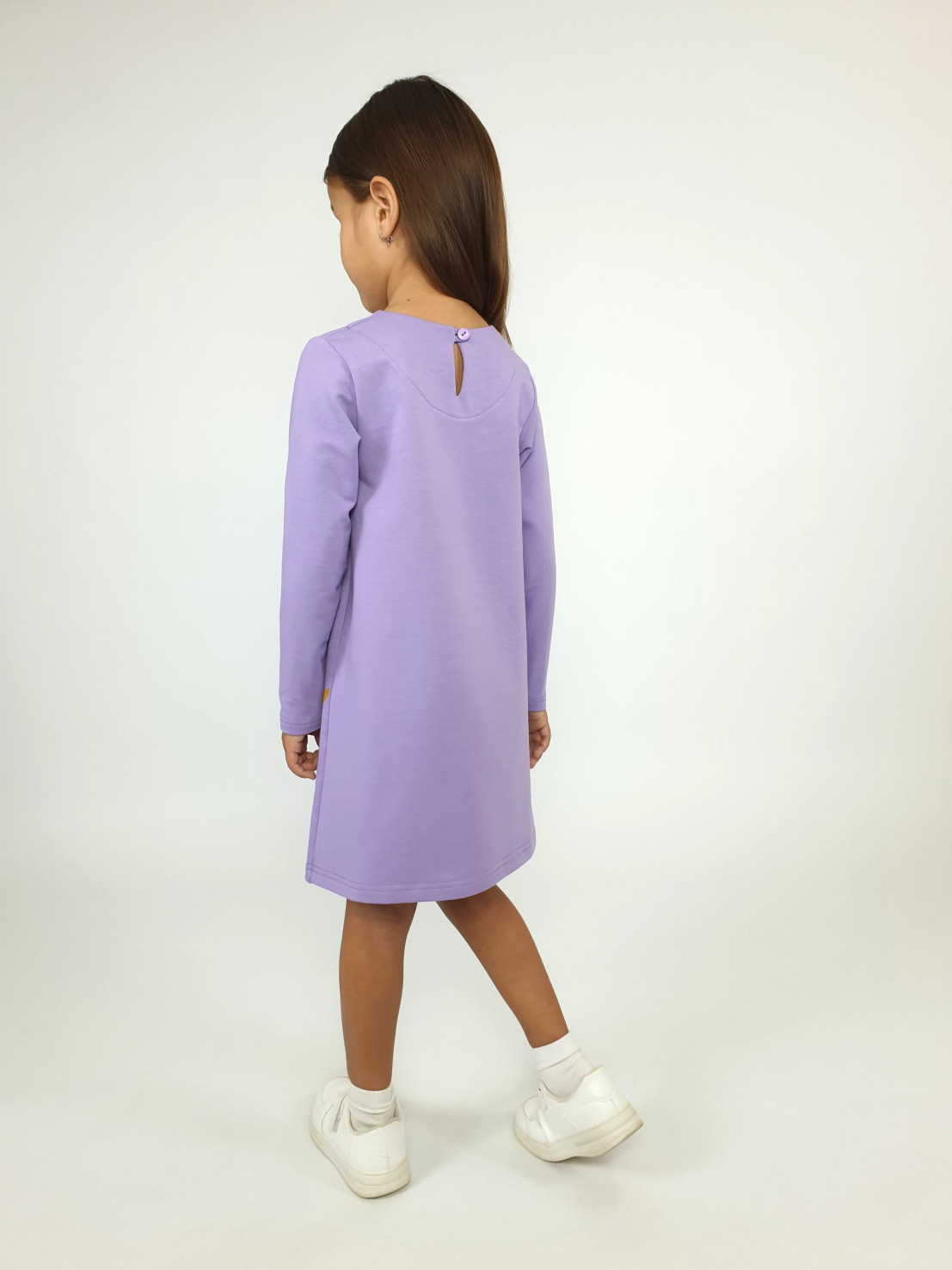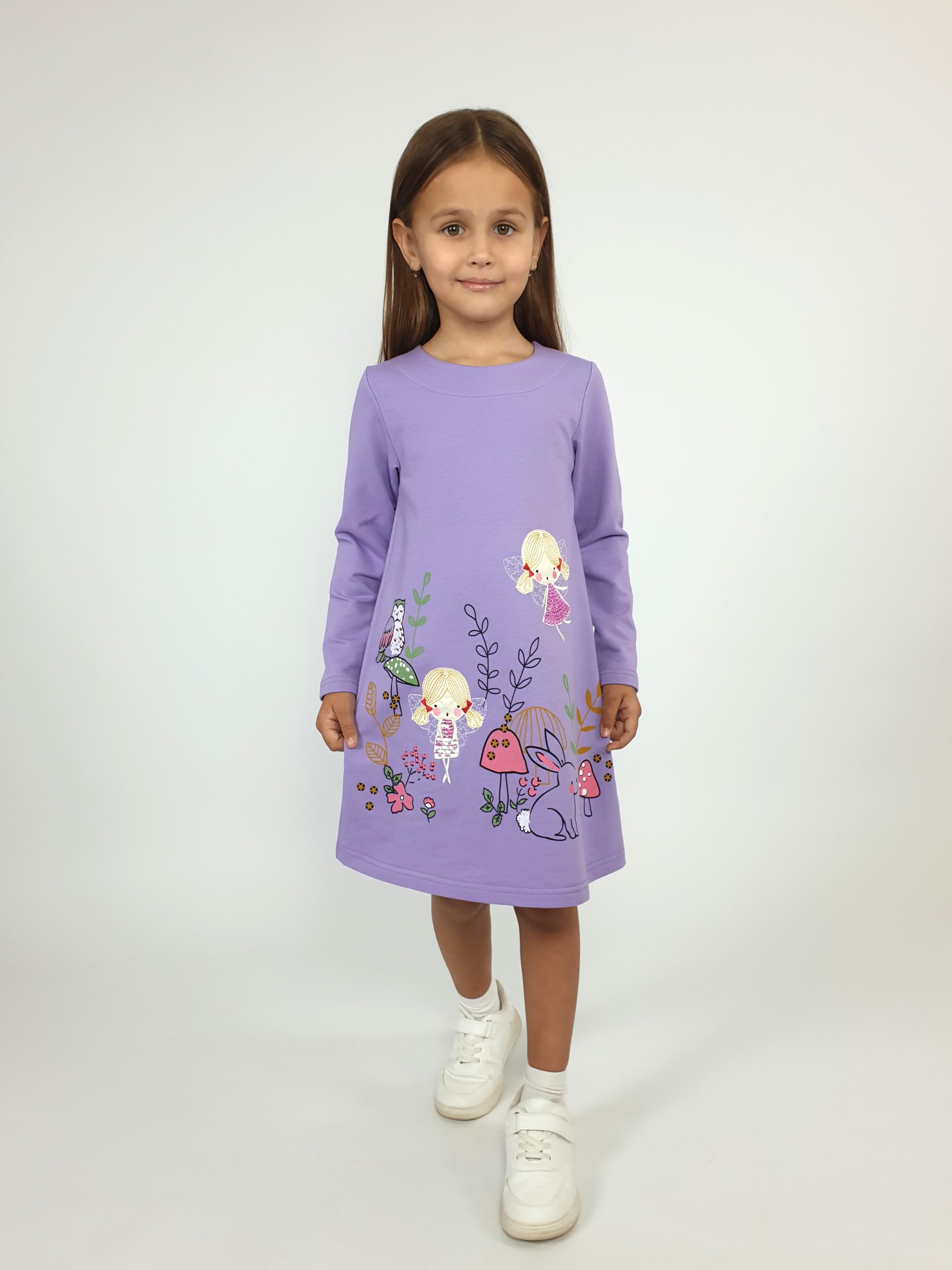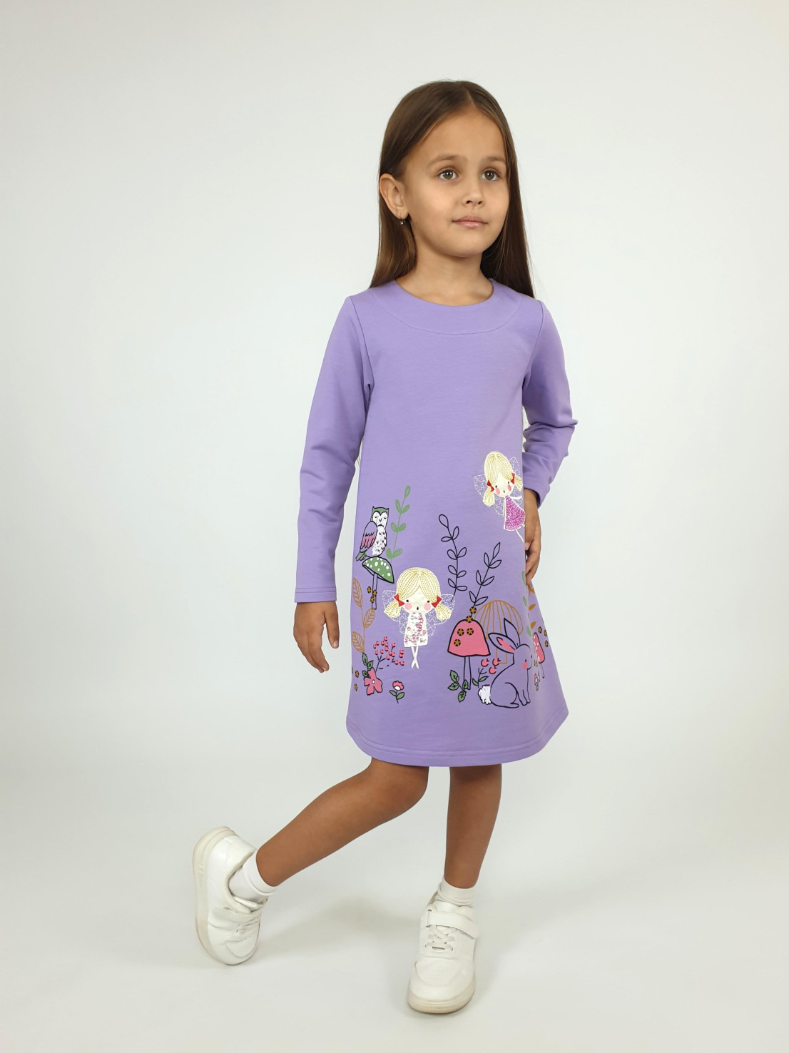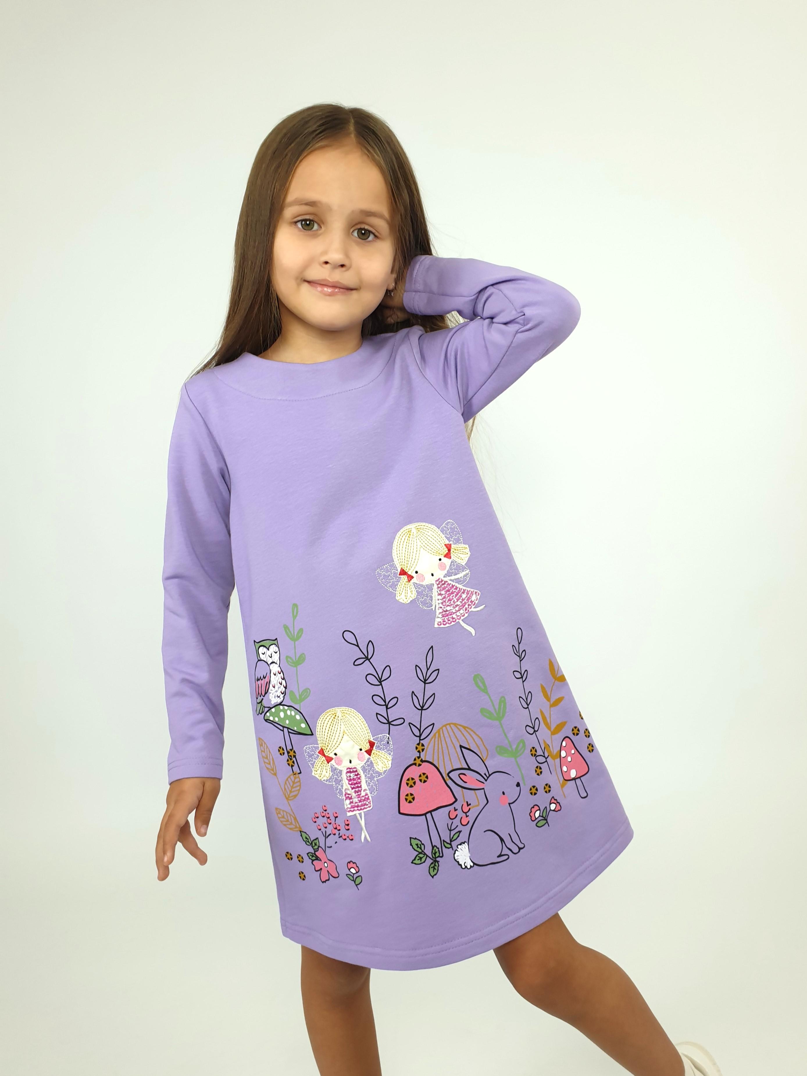 Футер 2-х нитка:97% х/б,3% лайкра. Платье-силуэт трапеция,без воротника,застежка на пуговицу по спинке.Втачной,длинный рукав.Печать и вышивка аппликация(пайетки) на полочке.