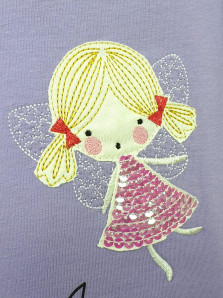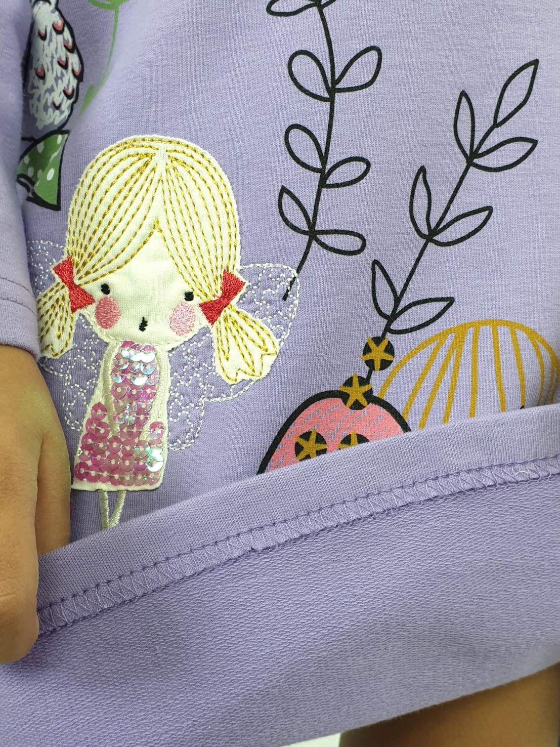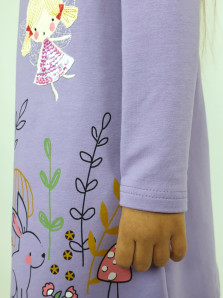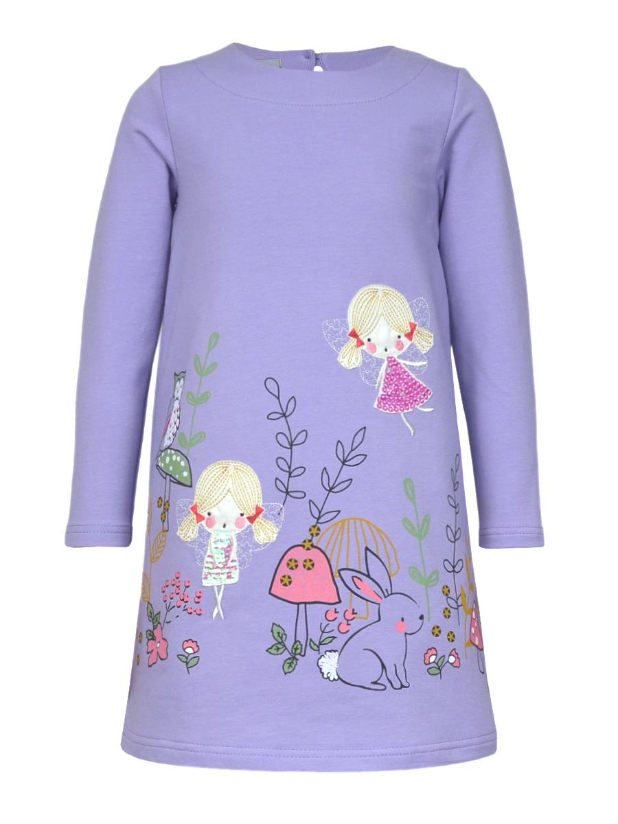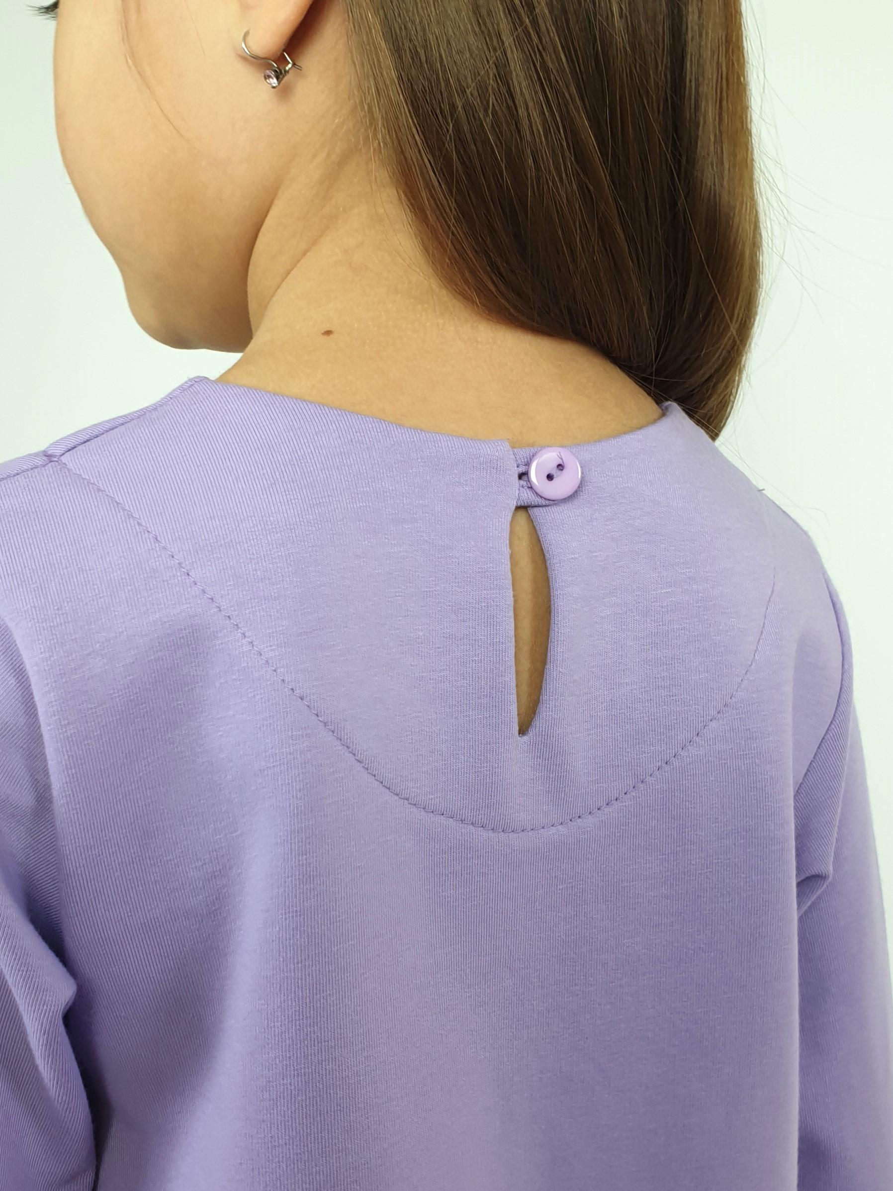 Футер 2-х нитка:97% х/б,3% лайкра. Платье-силуэт трапеция,без воротника,застежка на пуговицу по спинке.Втачной,длинный рукав.Печать и вышивка аппликация(пайетки) на полочке.