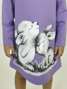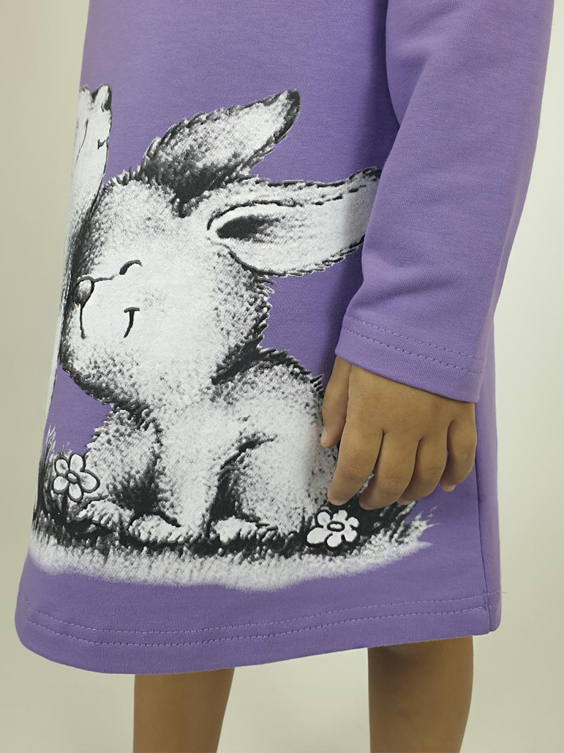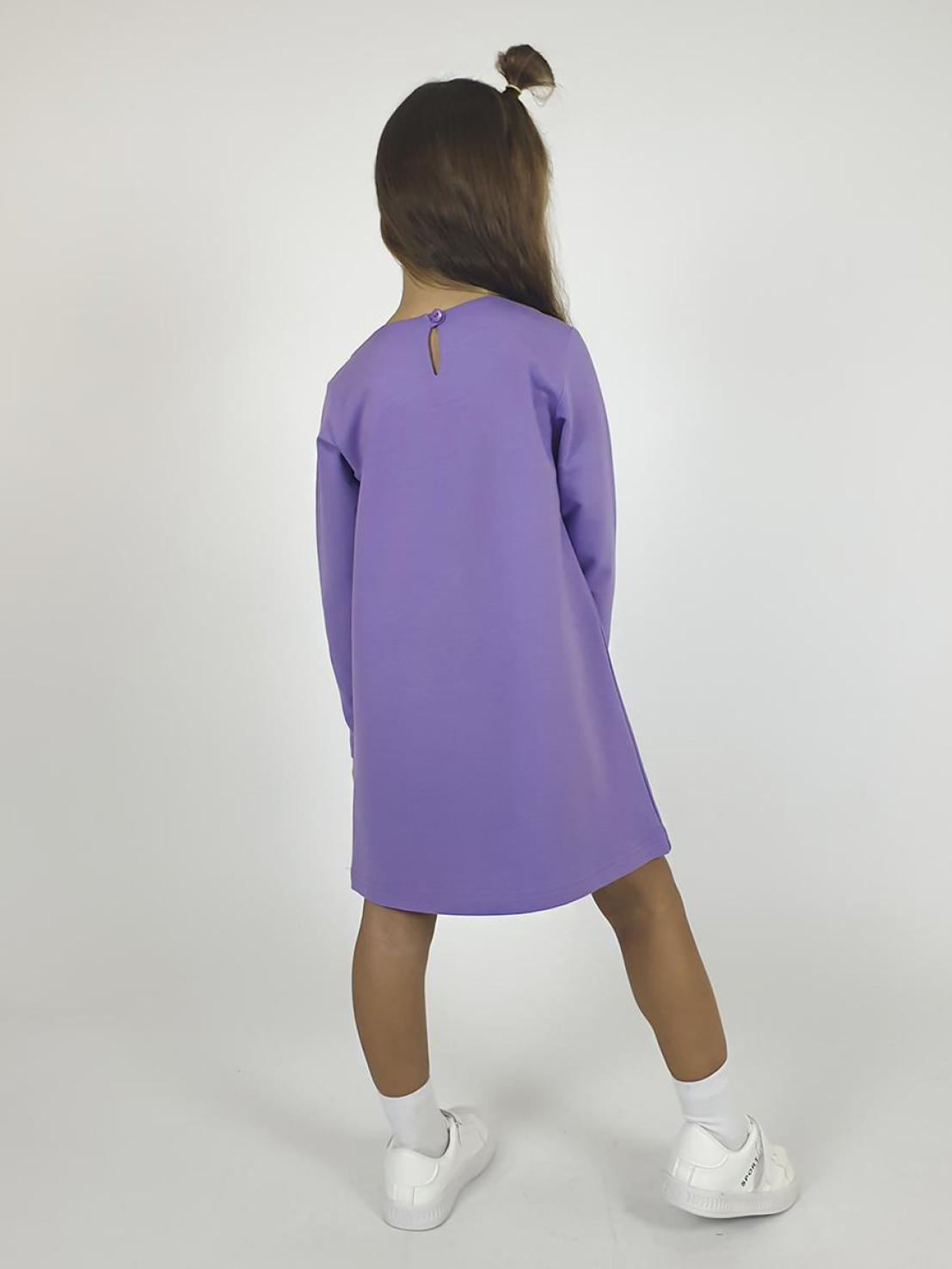 Футер 2-х нитка:80% х/б,14% п/э,6% лайкра. Платье-силуэт трапеция,без воротника,застежка на пуговицу по спинке.Втачной длинный рукав.Печать на полочке,внизу.