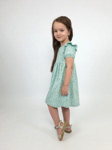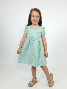 Кулирное полотно:100% х/б. Платье-перед и спинка с кокеткой,сборка по верху юбки.Рукав короткий,внизу собран на резинку,в пройме рюша.Горловина обработана ластиком.