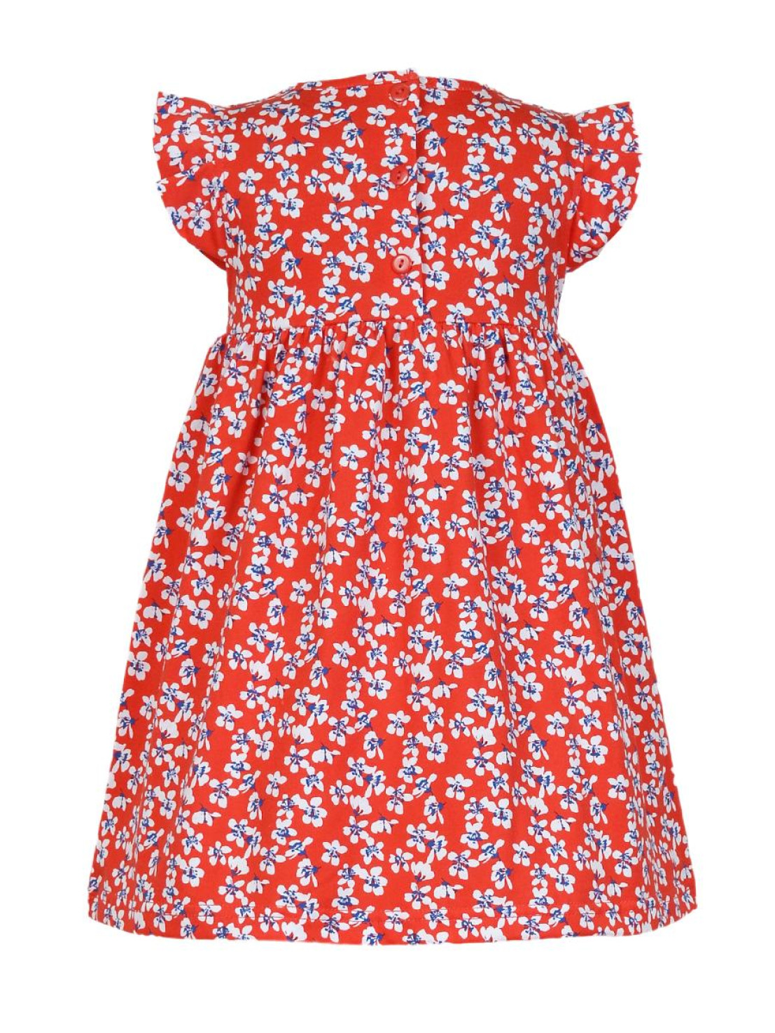 Кулирное полотно(набивка):100% х/б. Платье-завышена линия талии,отрезная юбка со сборкой.Рукав-рюша в складку.Вырез горловины квадратный,застежка по спинке на пуговицы.Низ юбки подшит.