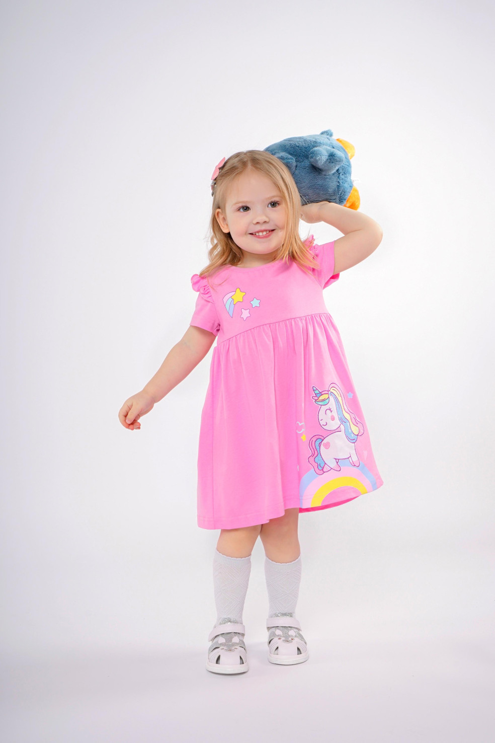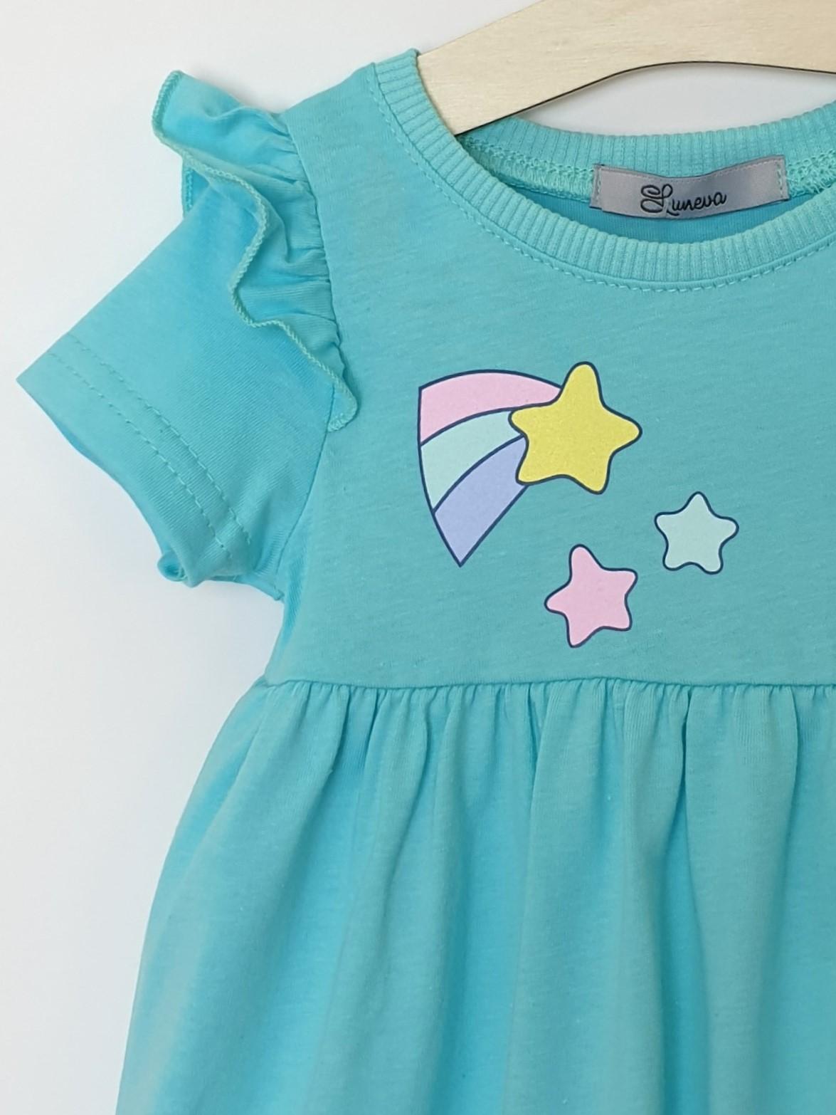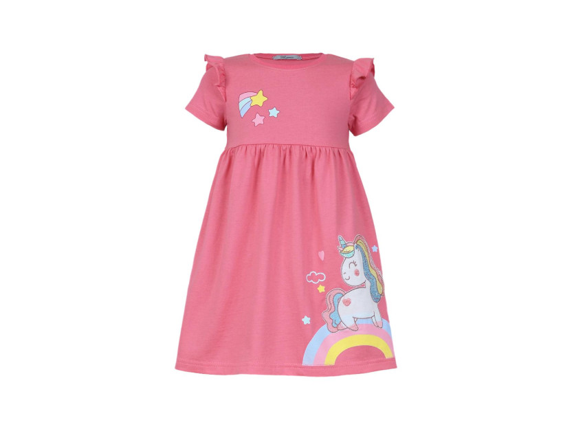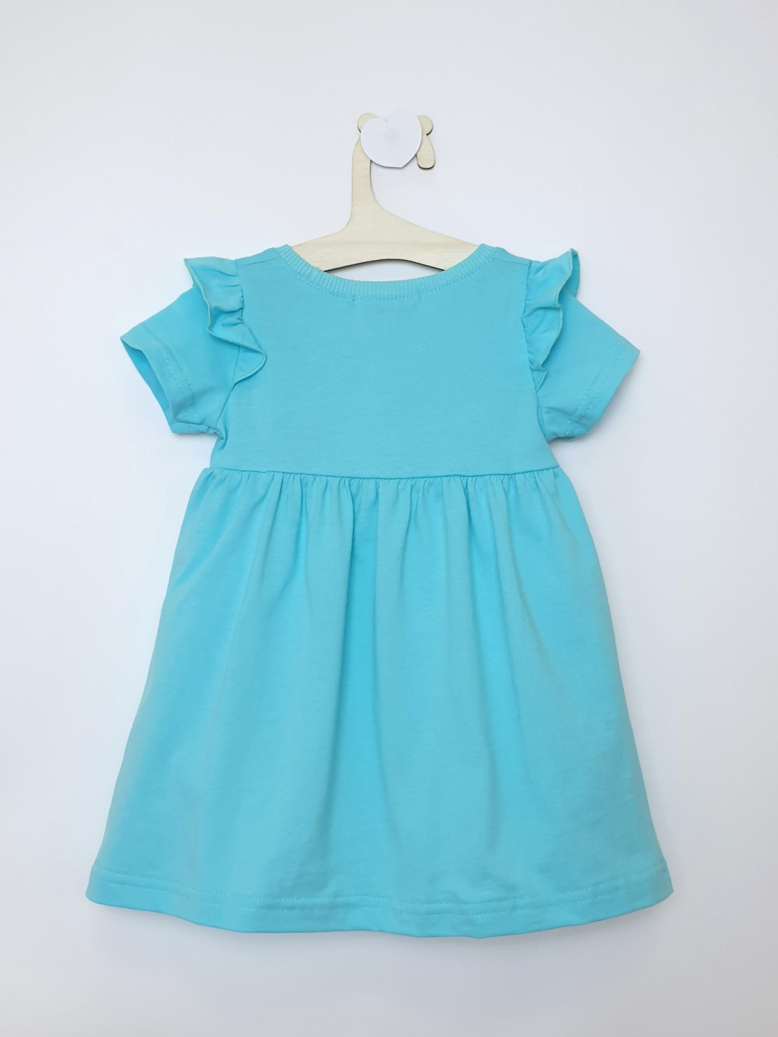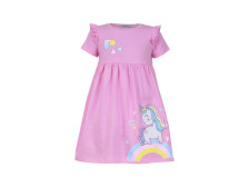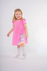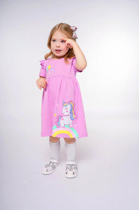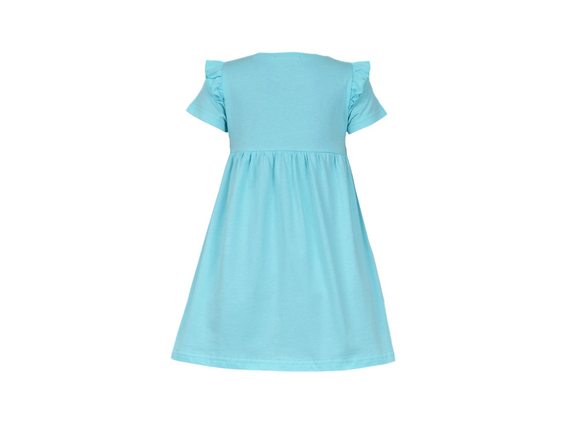 Кулирное полотно:100% х/б. Платье-отрезная юбка со сборкой,с вышивкой на переде.Кокетка переда с печатью.Короткий рукав,в пройме рюша,горловина обработана ластиком.
