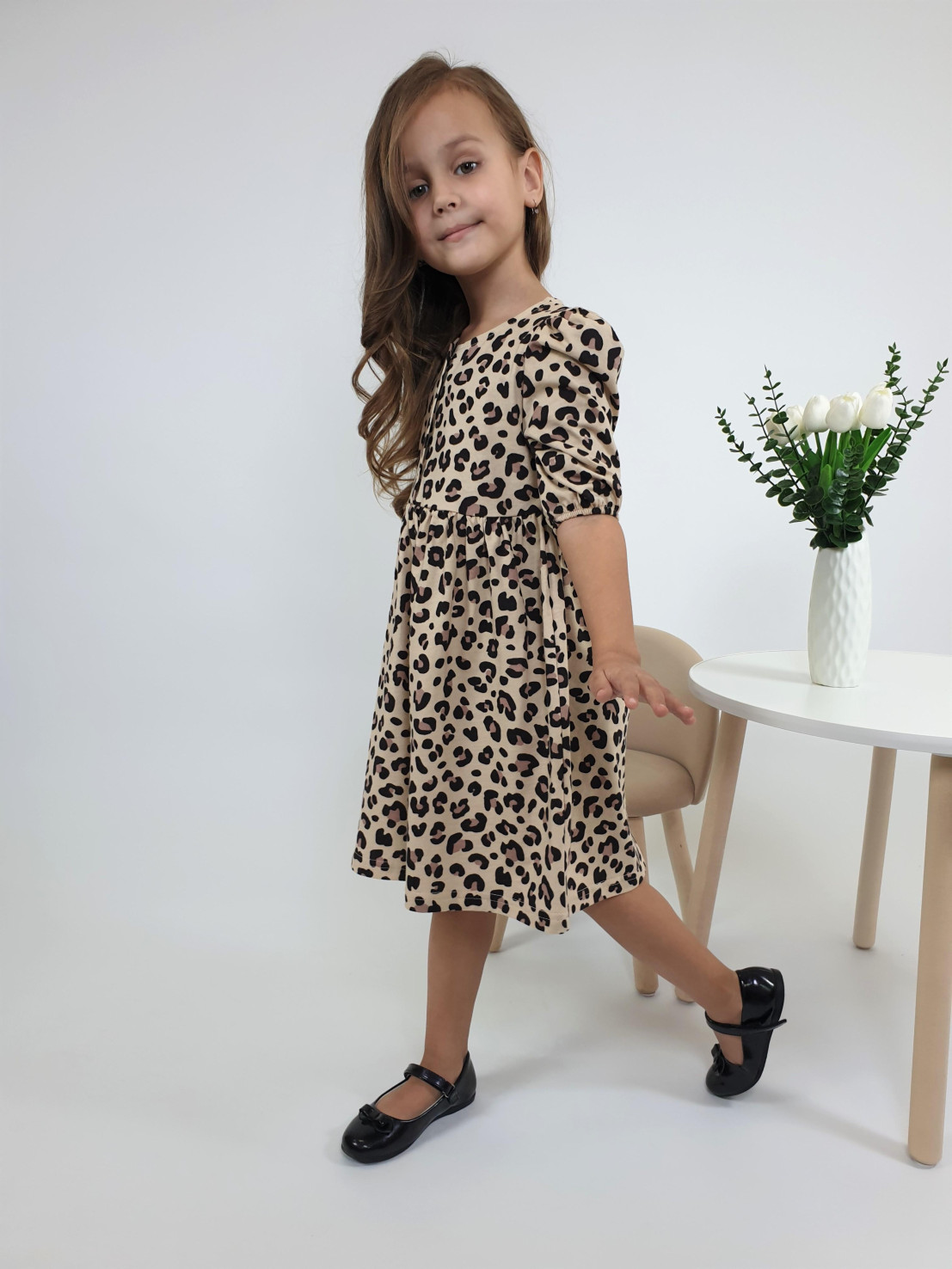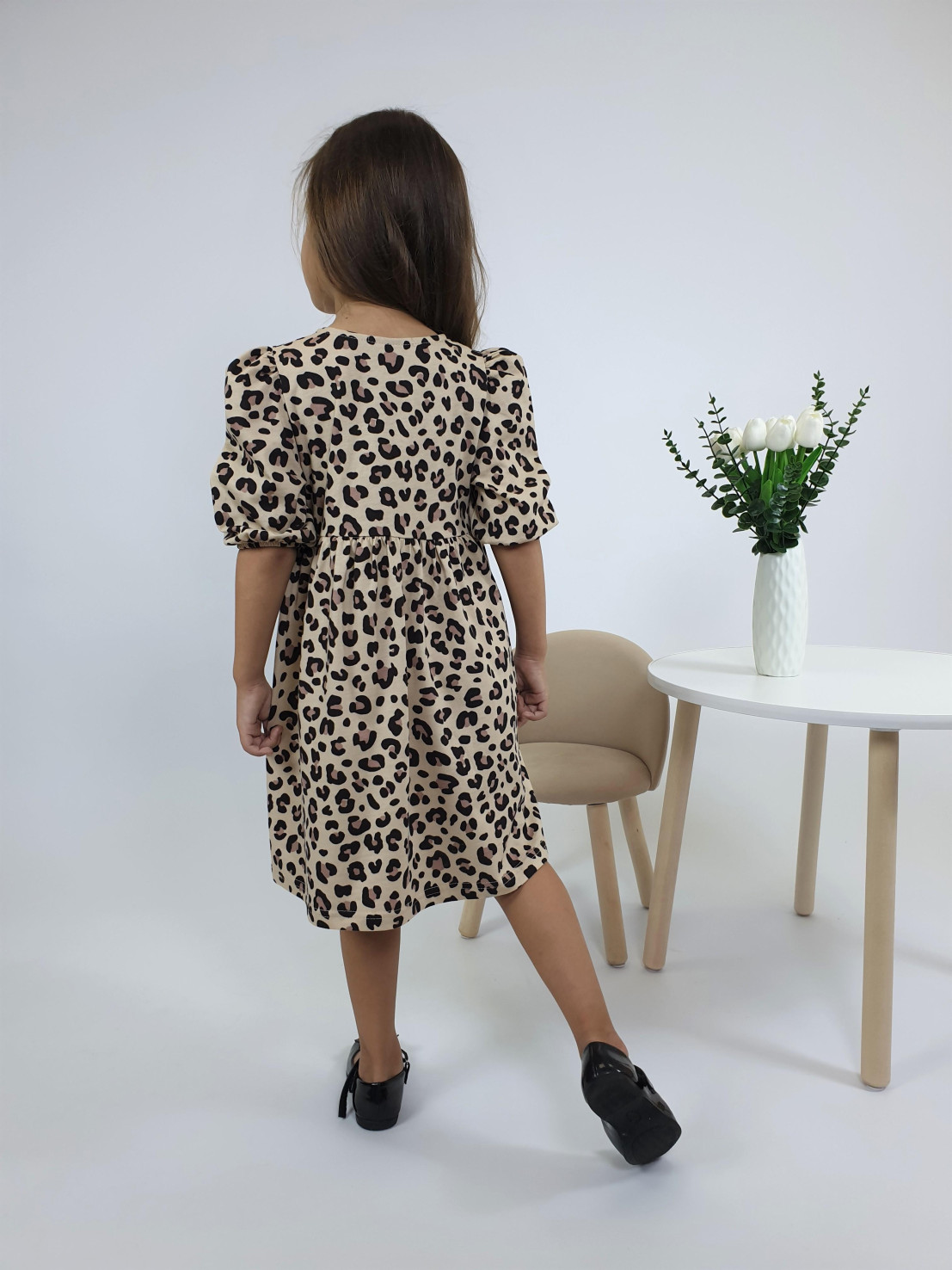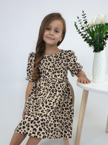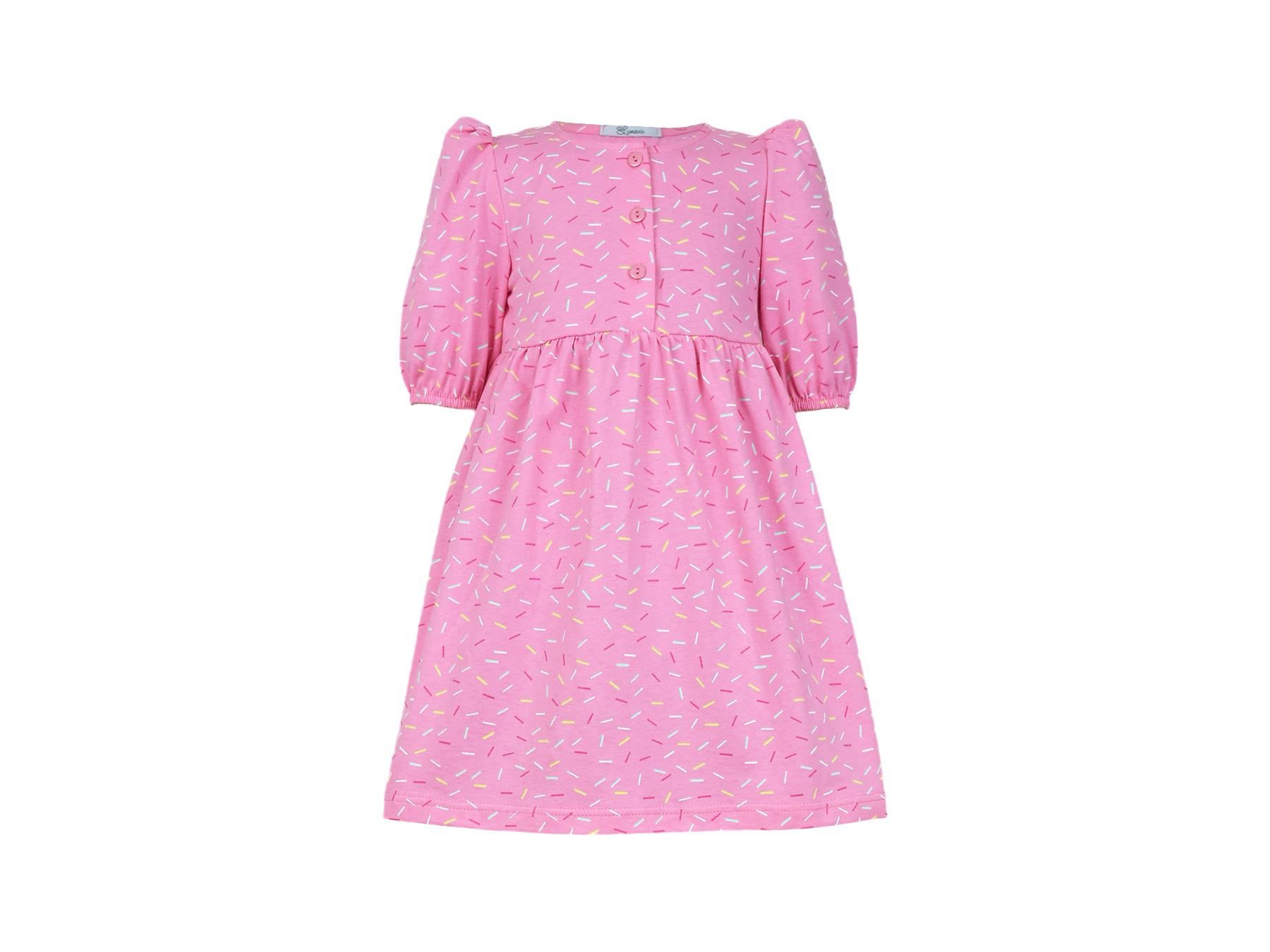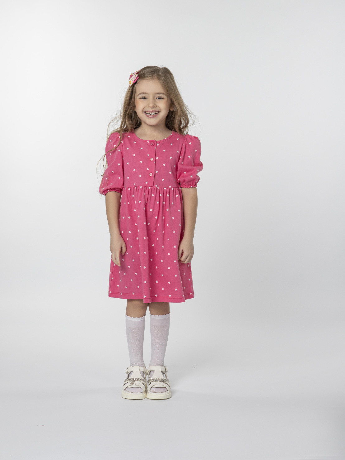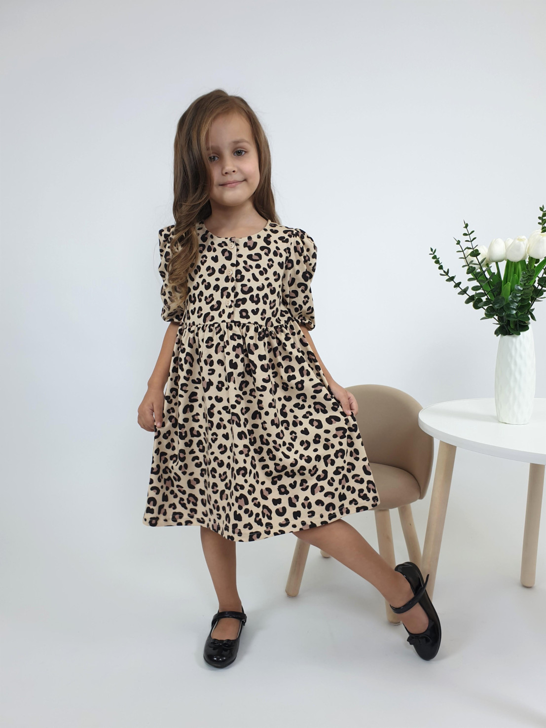 Кулирное полотно (набивка): 100% х/б. Платье-с отрезной юбкой в сборку.Короткий рукав с резинкой внизу,сборка по окату.Горловина окантована и подшита,застежка центральная на пуговицы.
