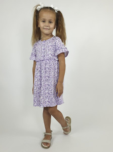 Кулирное полотно (набивка):100% х/б. Платье-силуэт трапеция,перед и спинка с кокеткой,юбка со сборкой.Рукав короткий с рюшей.Застежка по переду,на пуговицы.Горловина окантована.