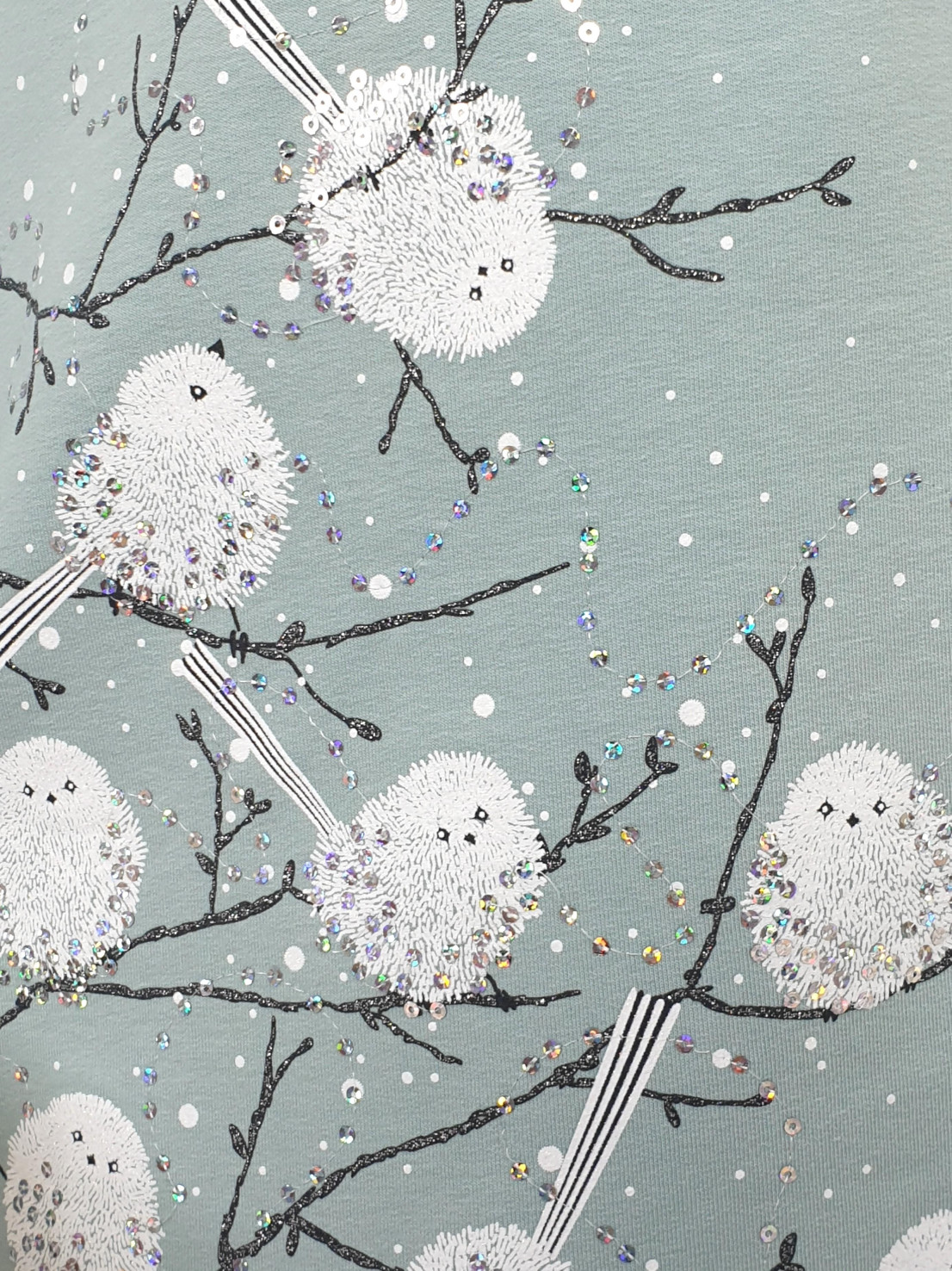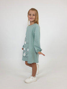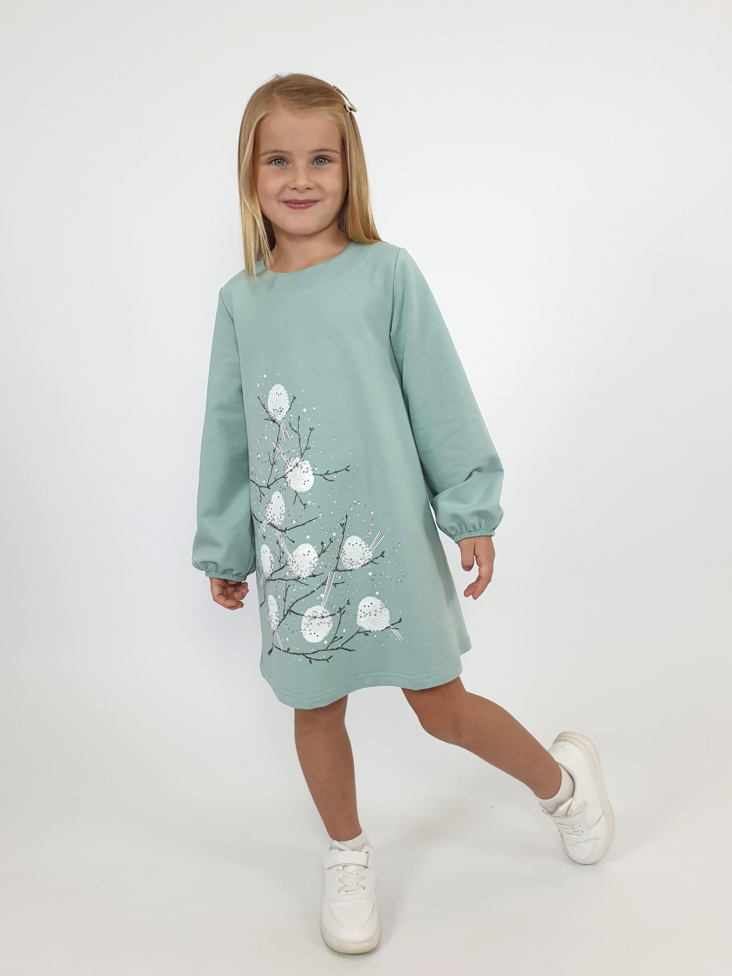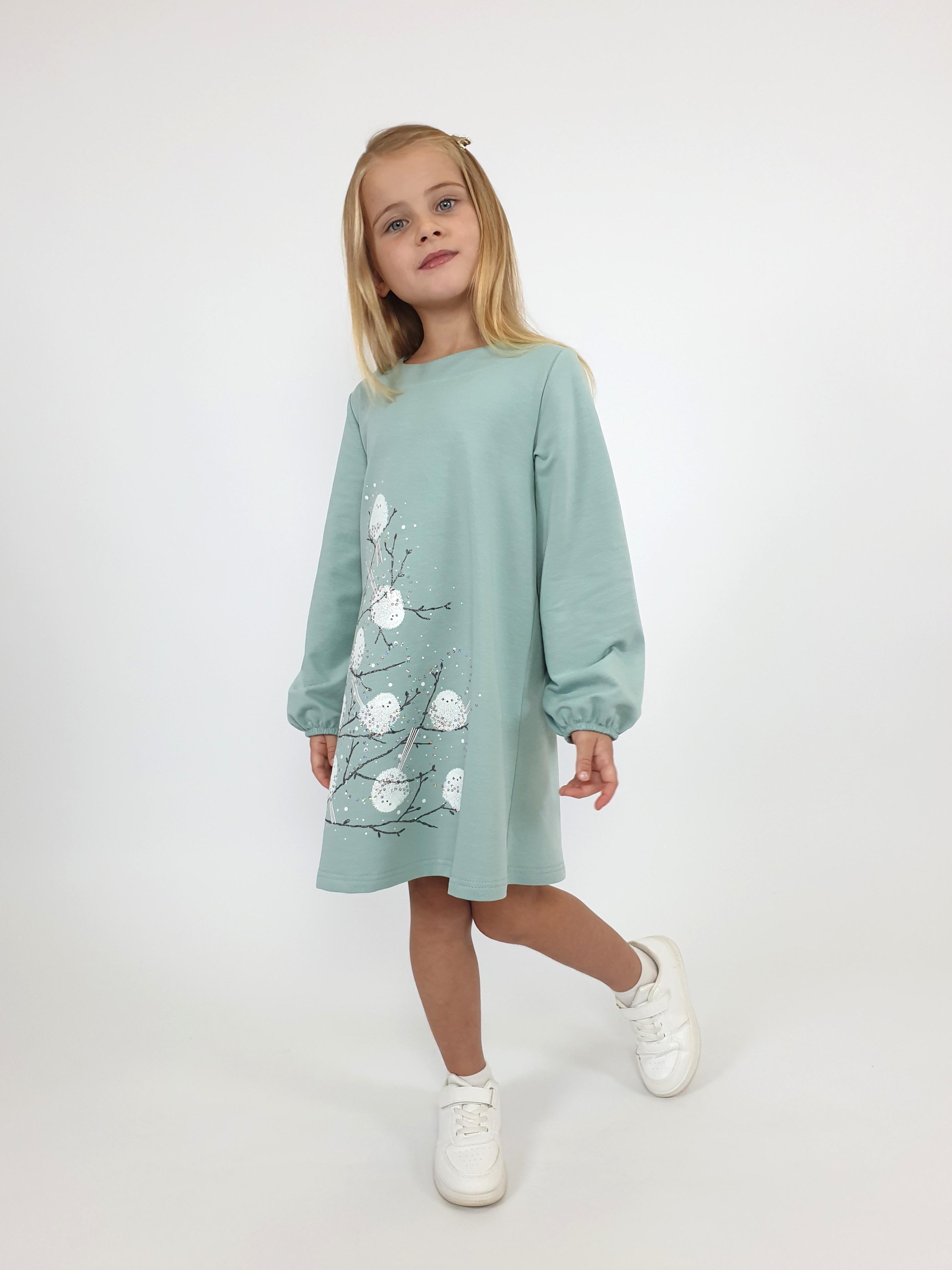 Футер 2-х нитка:95% х/б,5% лайкра. Платье-силуэт трапеция,рукав втачной длинный,внизу на резинке.Печать и вышивка пайетки по переду,горловина обработана обтачкой.Застежка по спинке на пуговицу.