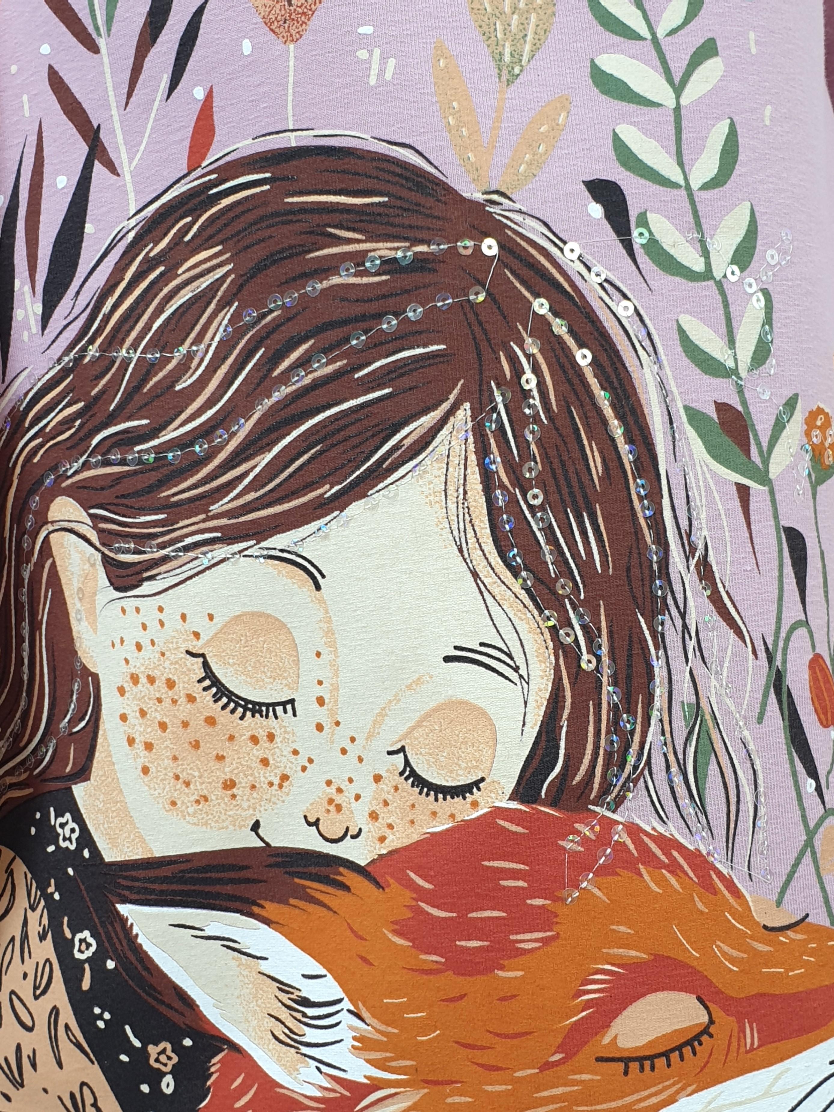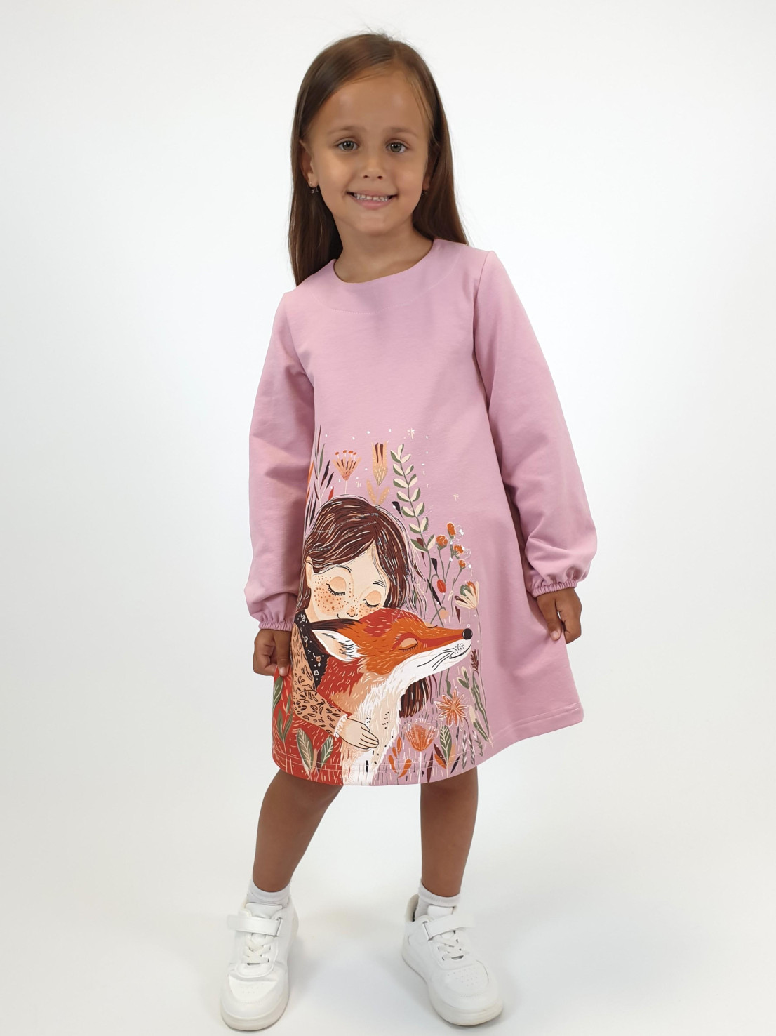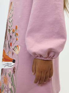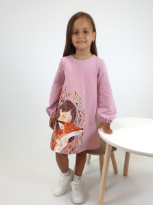 Футер 2-х нитка:95% х/б,5% лайкра. Платье-силуэт трапеция,рукав втачной длинный,внизу на резинке.Печать и вышивка пайетки по переду,горловина обработана обтачкой.Застежка по спинке на пуговицу.