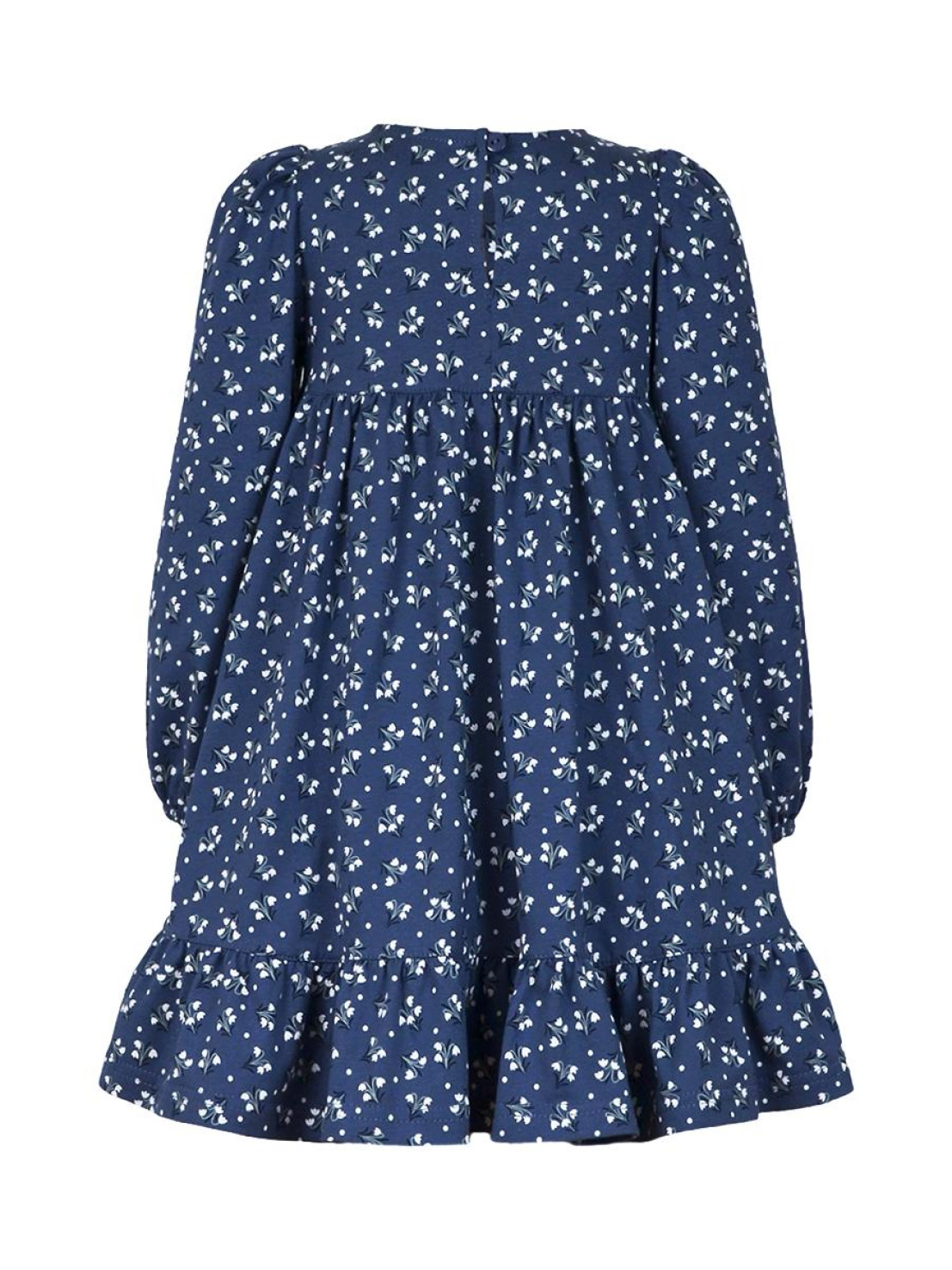 Кулирное полотно:100% х/б. Платье-силуэт трапеция,длинный втачной рукав сборка по окату,внизу на резинке.Юбка отрезная со сборкой,внизу с воланом.Горловина окантована и подшита,застежка на пуговицу по спинке.Отделочный,съемный воротник.
