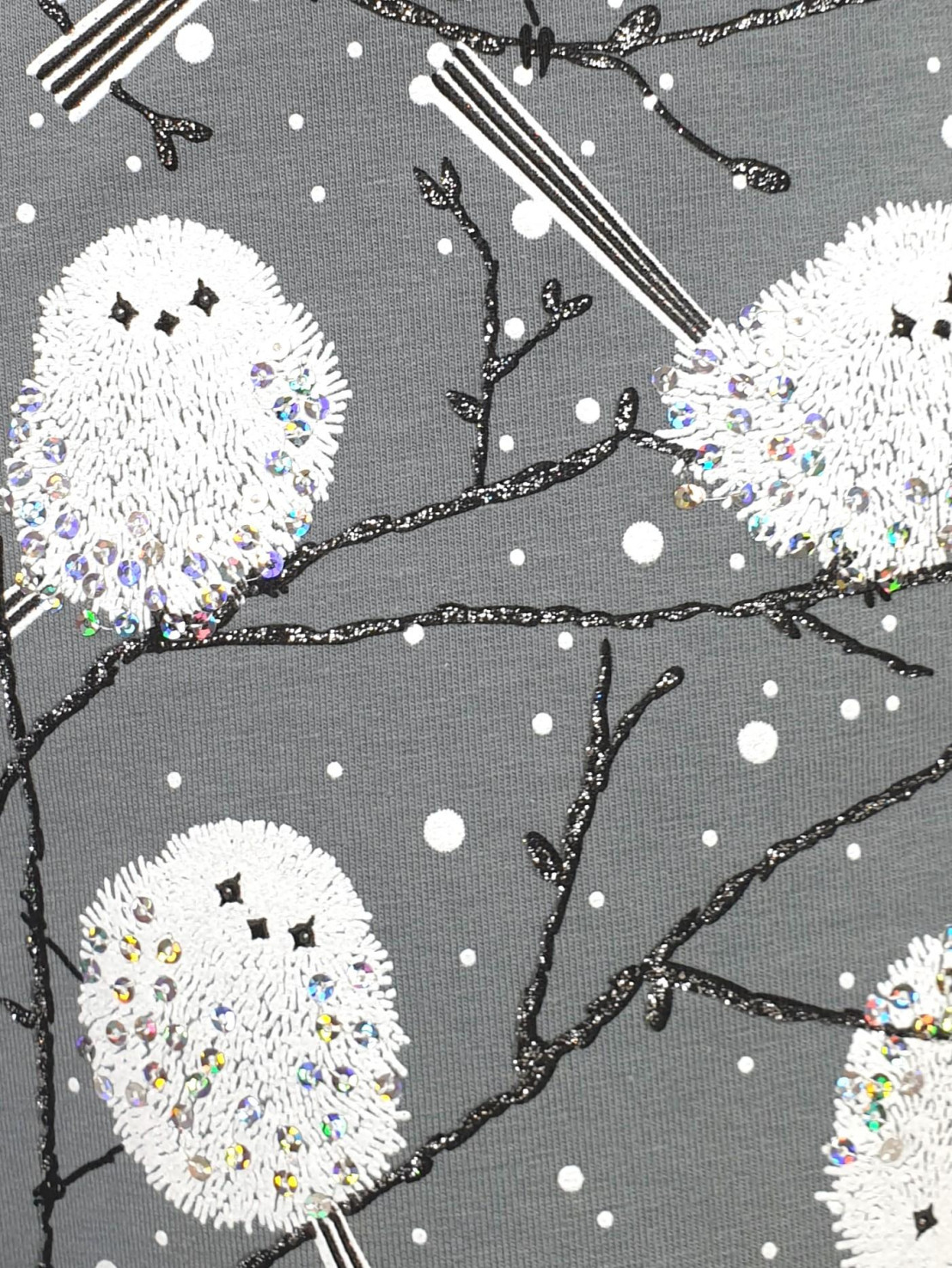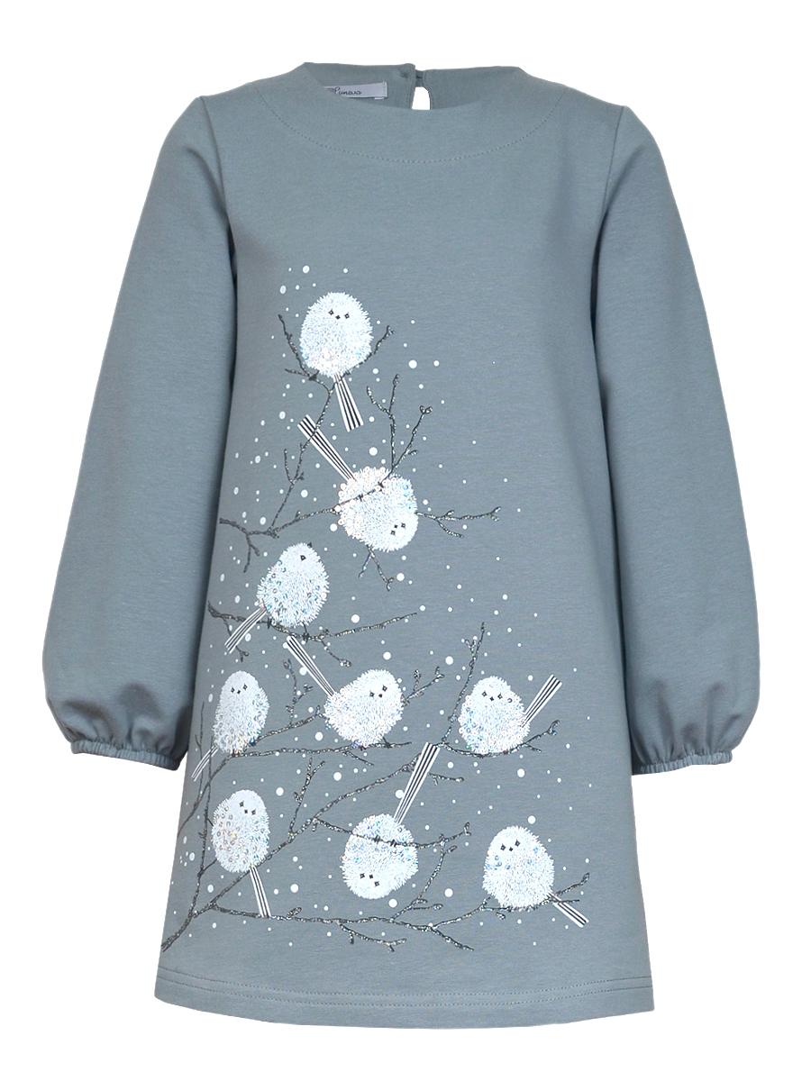 Футер 2-х нитка:95% х/б,5% лайкра. Платье-силуэт трапеция,рукав втачной длинный,внизу на резинке.Печать и вышивка пайетки по переду,горловина обработана обтачкой.Застежка по спинке на пуговицу.
