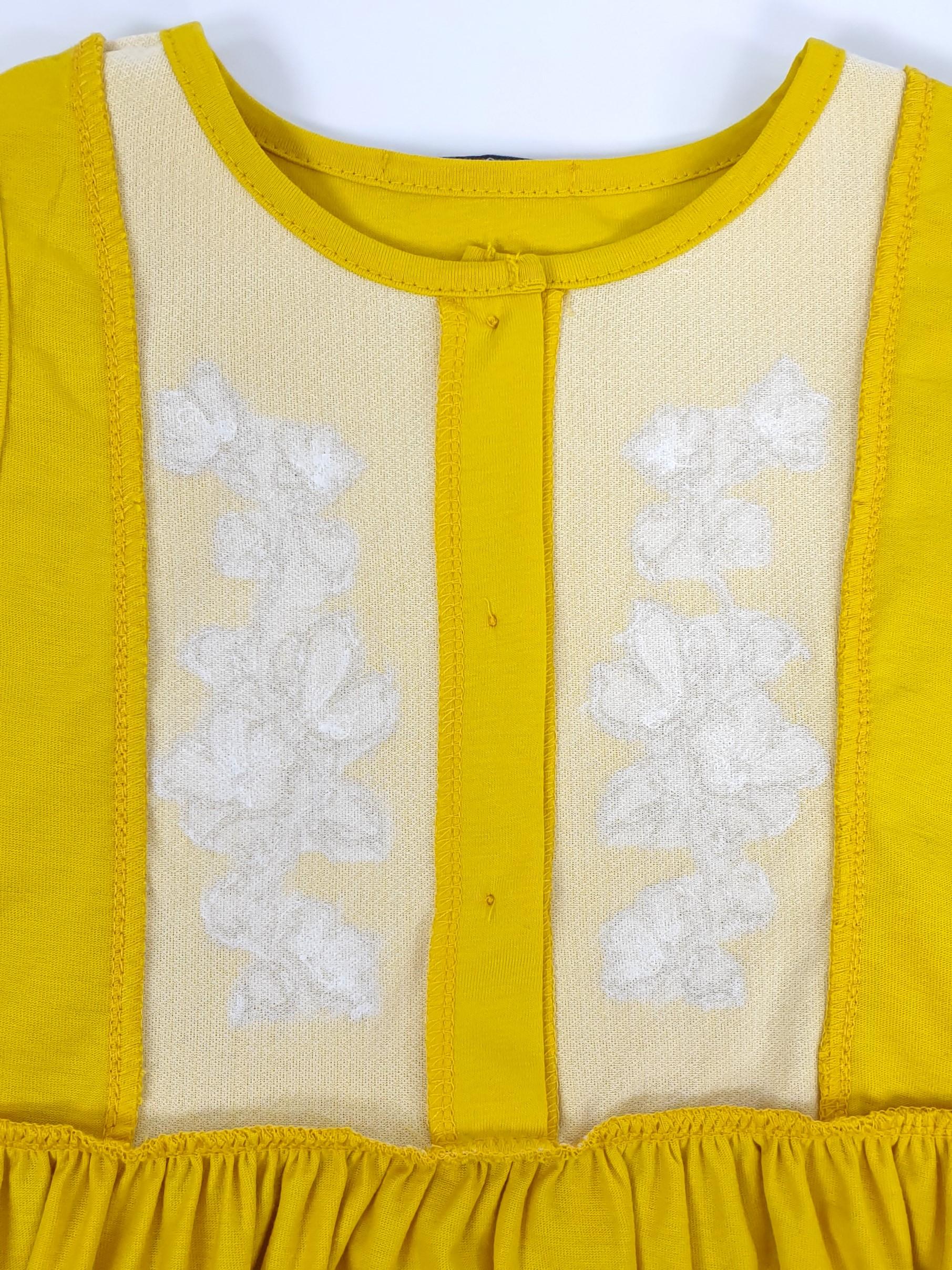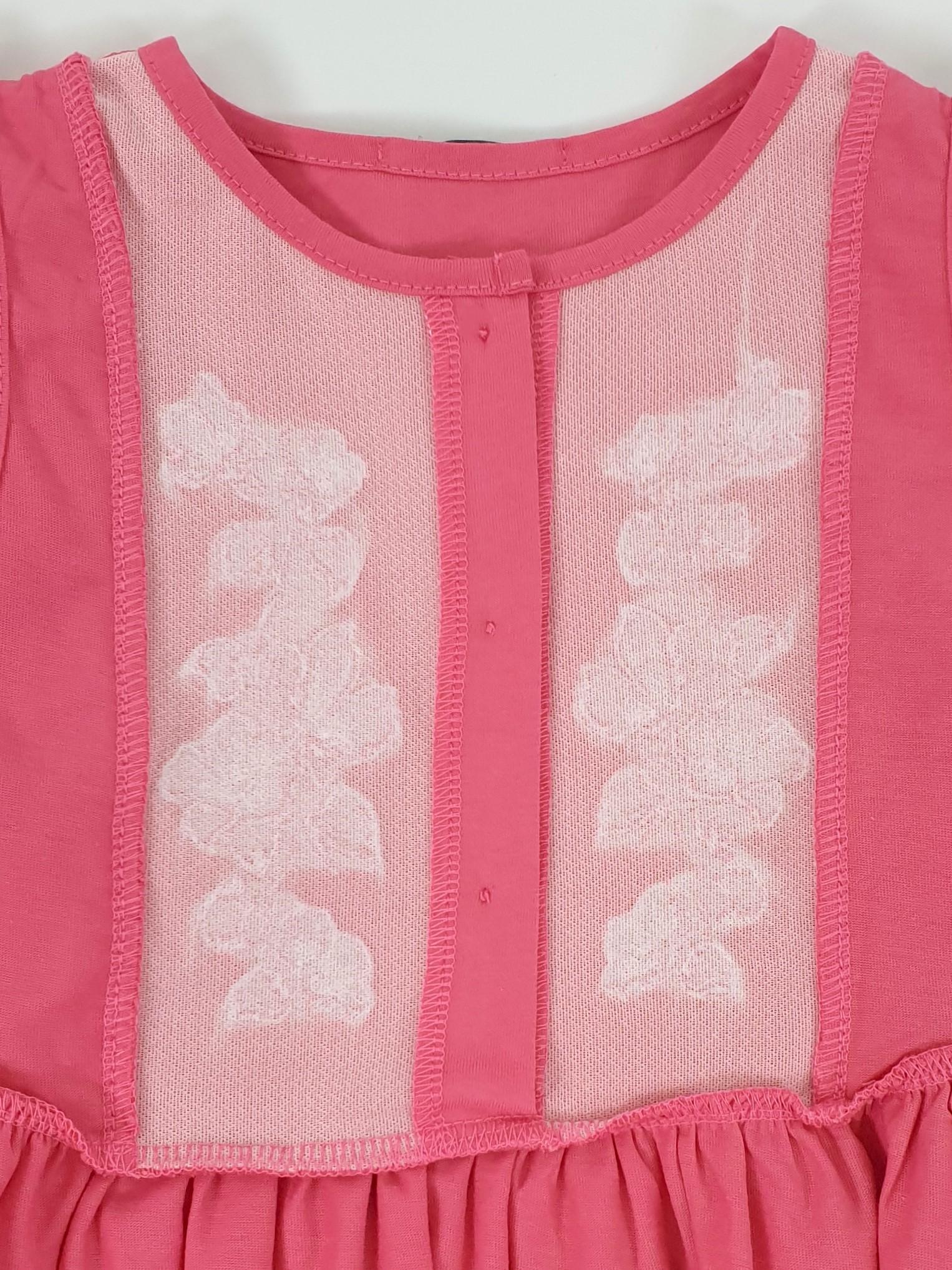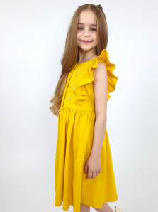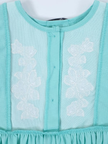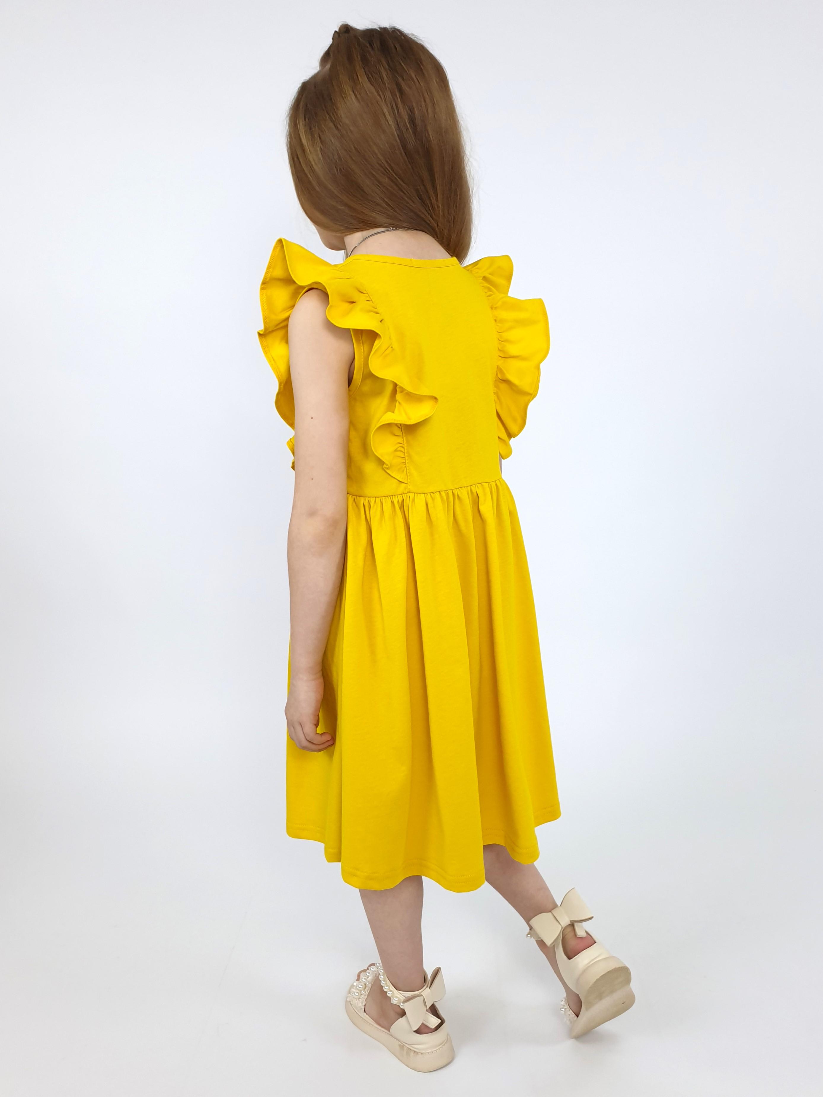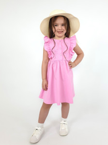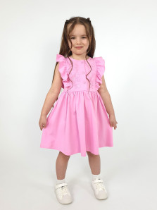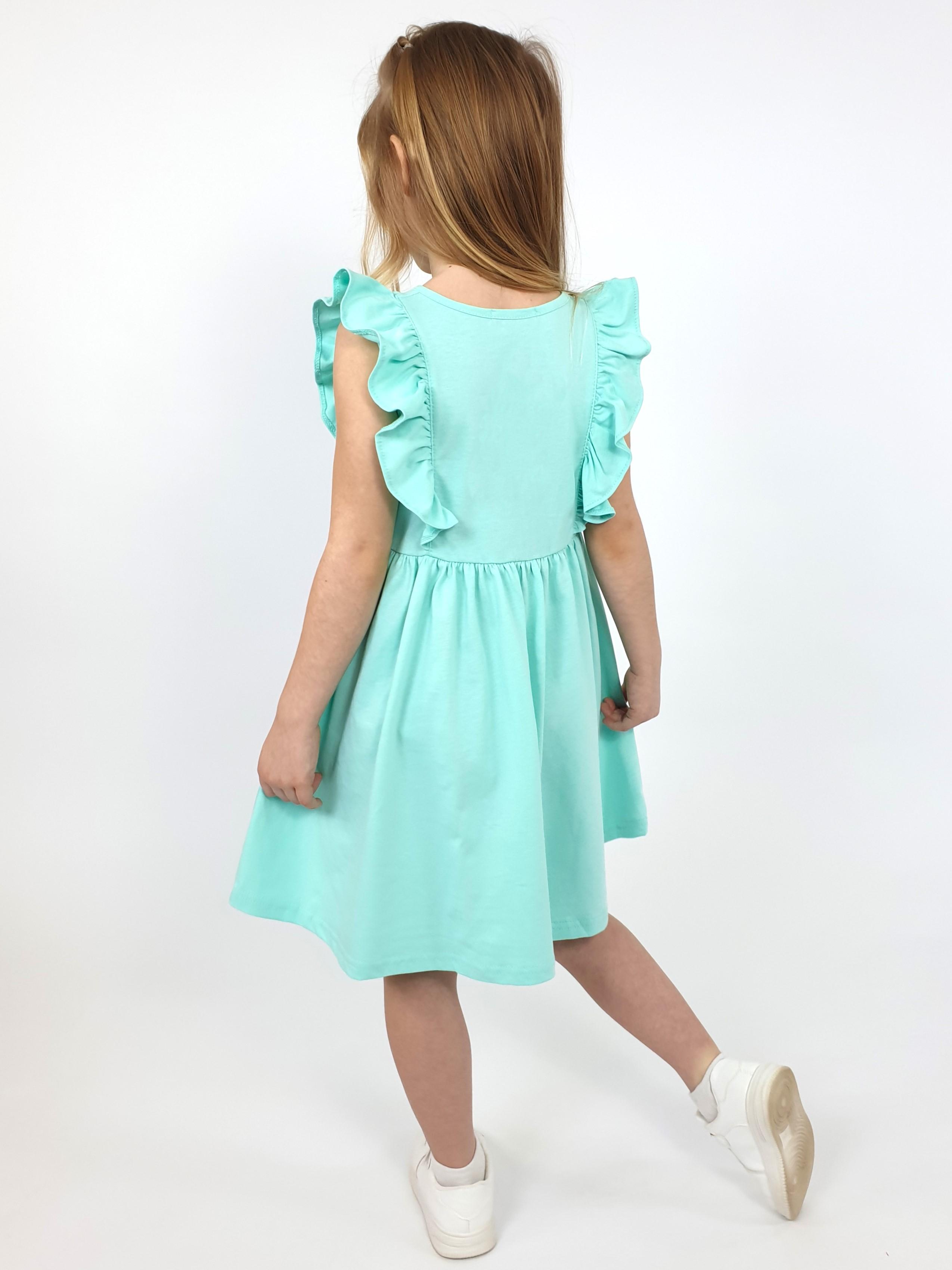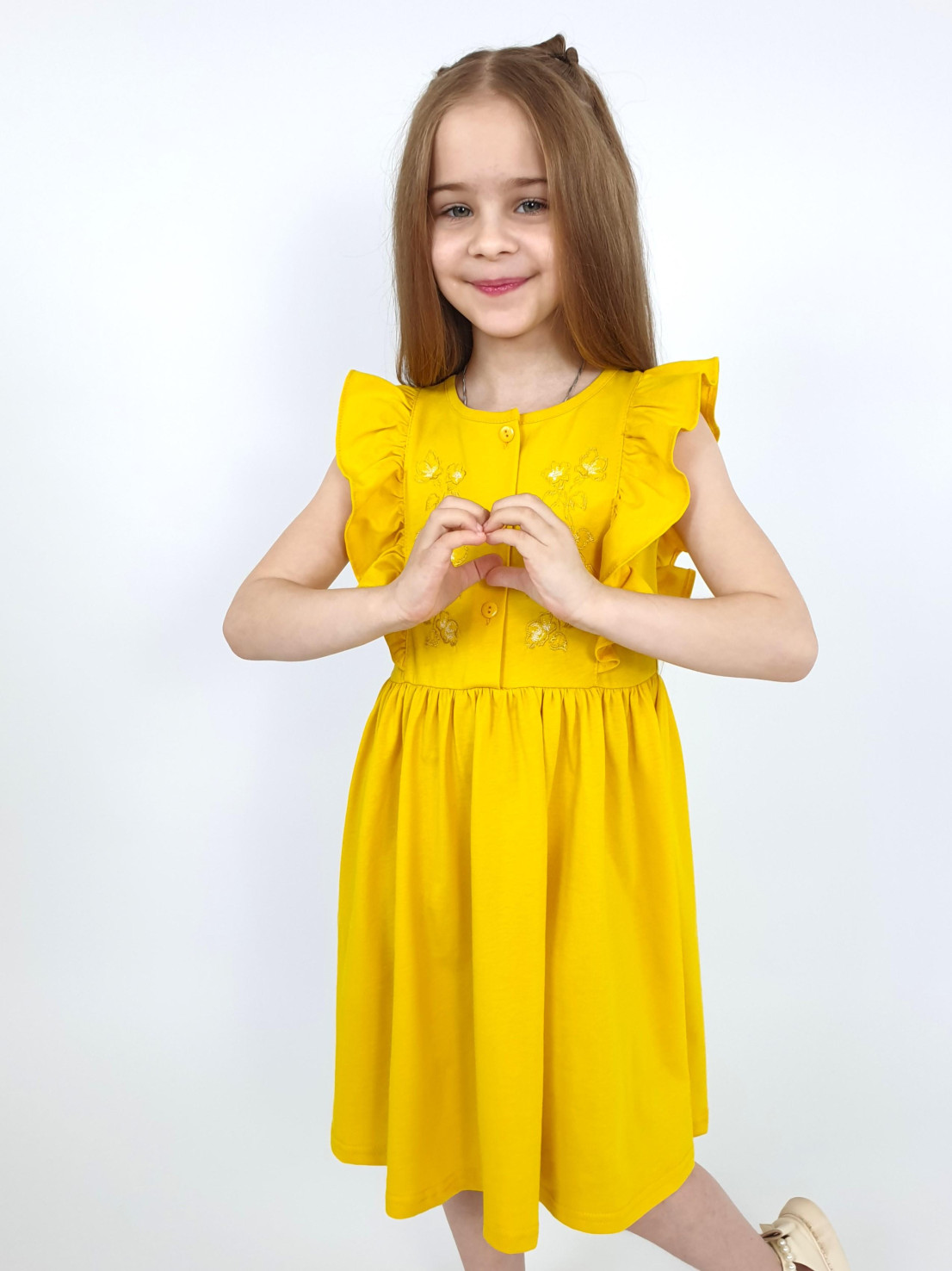 Летнее платье для девочки выполнено из качественного кулирного полотна ( 100% хлопок). Модель полуприлегающего силуэта ,декорирована оригинальным принтом с вышивкой и рюшами . Застёжка по центру на пуговицы.Такое платье идеально подойдёт как на каждый день, так и при особых случаях. Материал легкий, приятный на ощупь, устойчивый к частым стиркам.