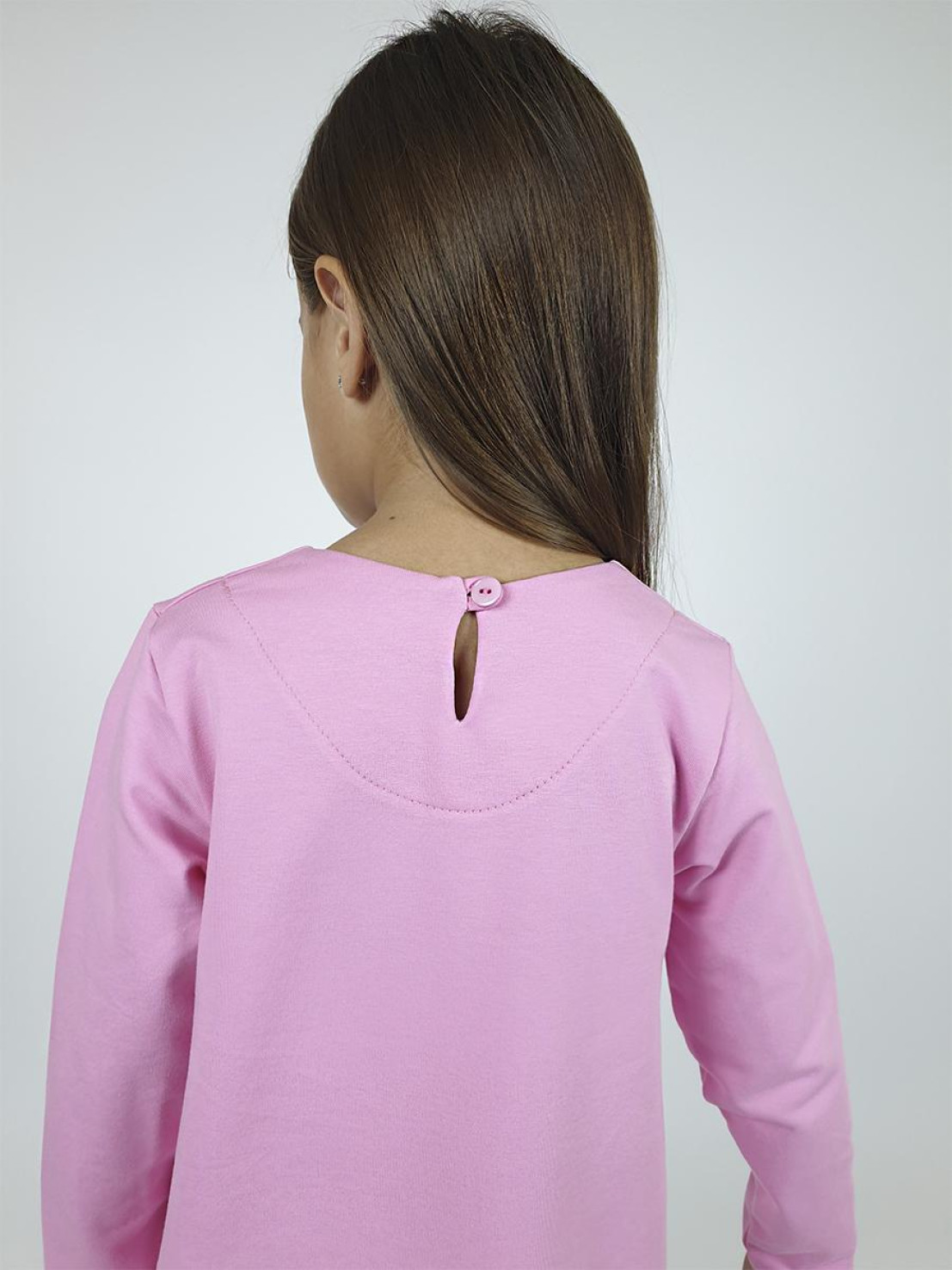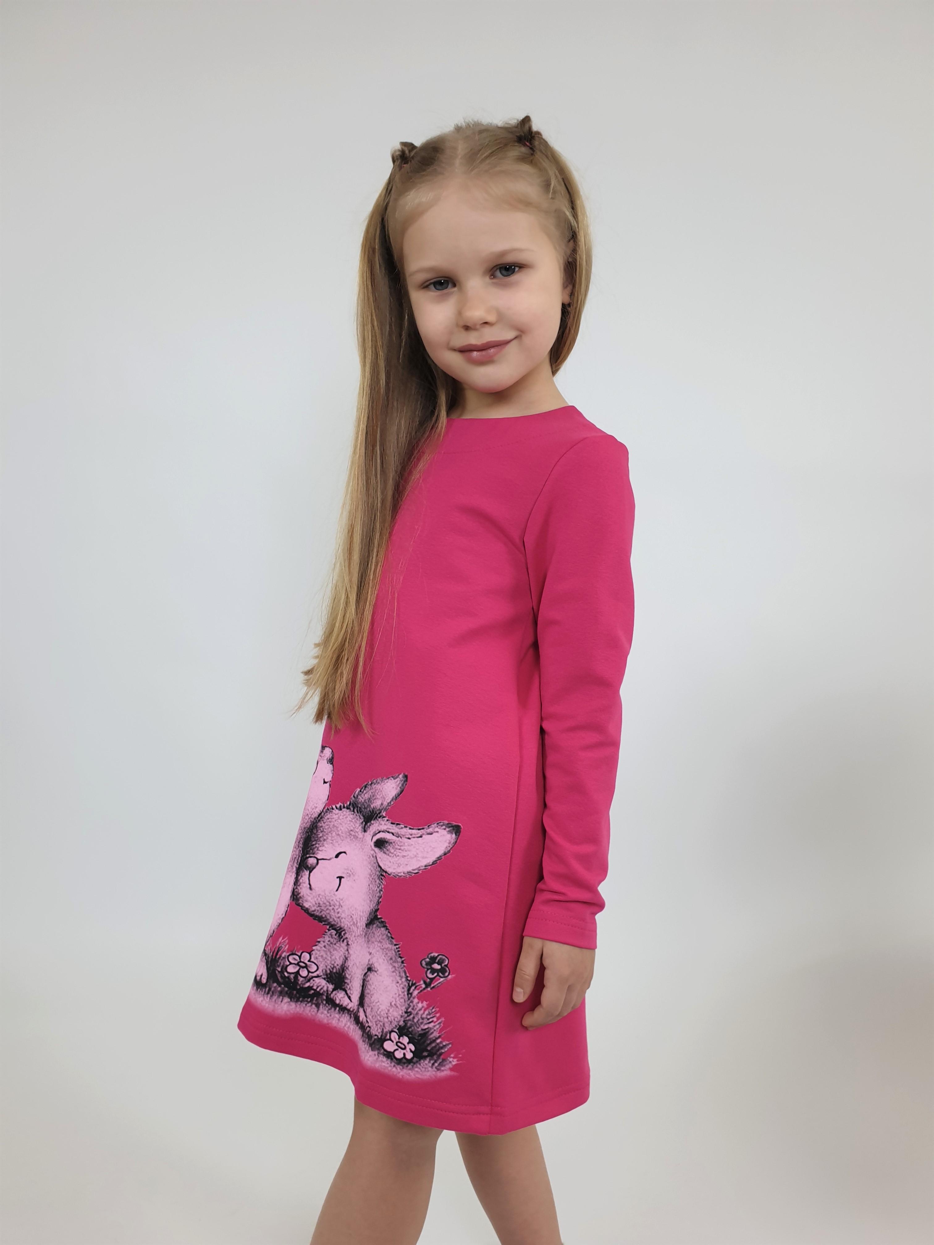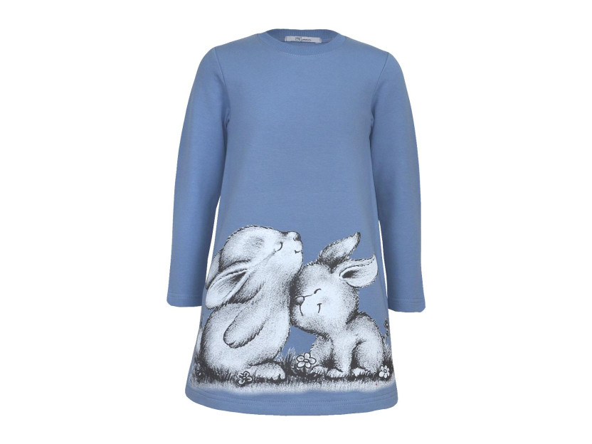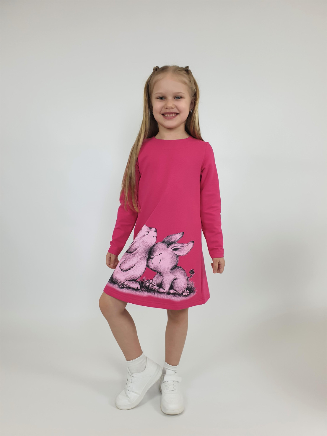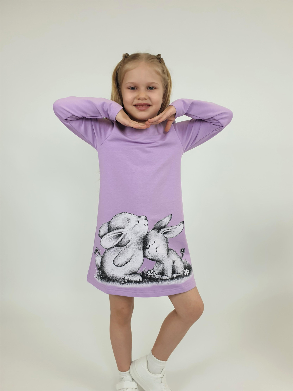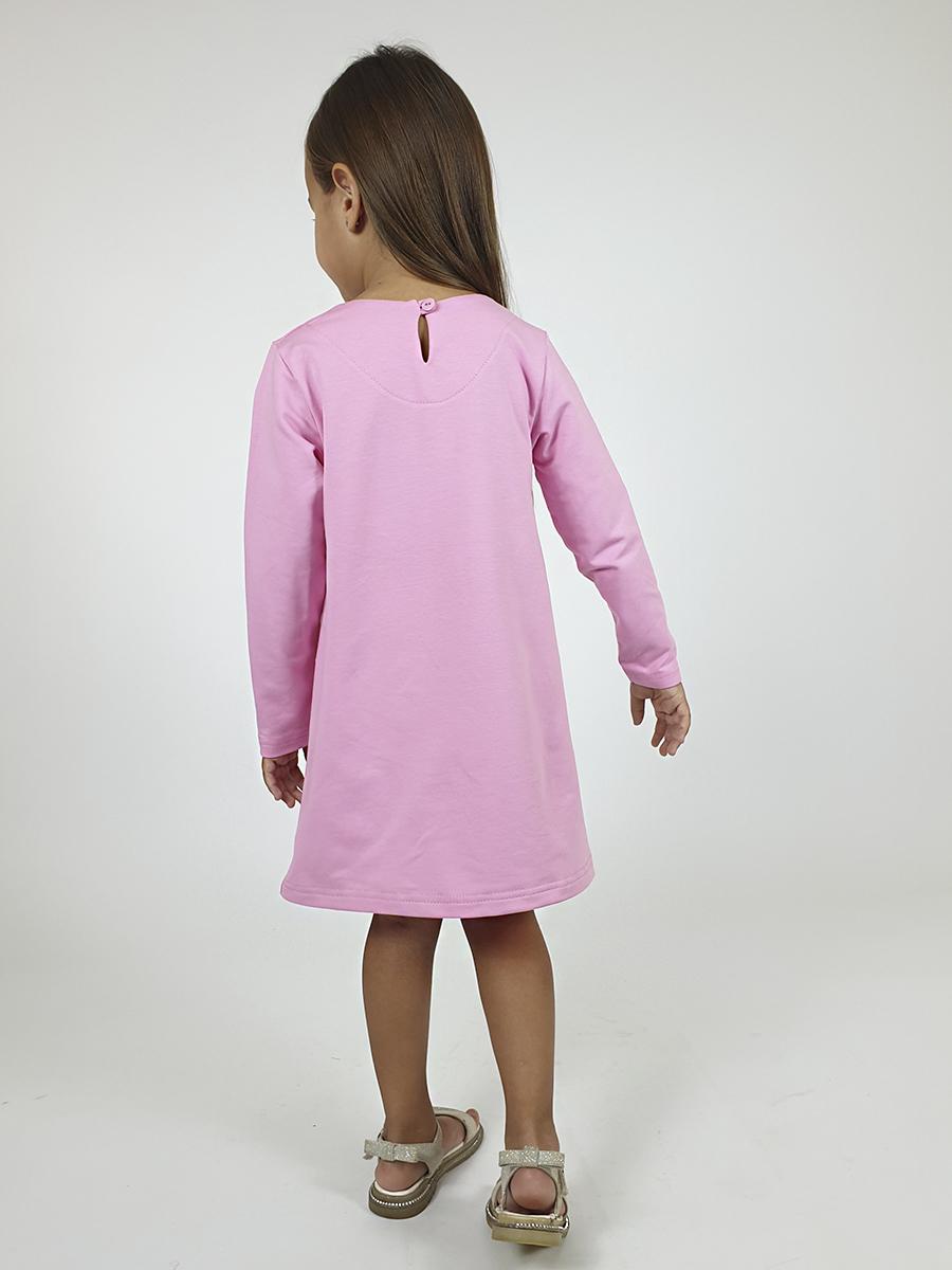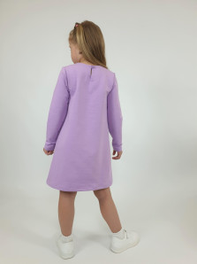 Футер 2-х нитка:80% х/б,14% п/э,6% лайкра. Платье-силуэт трапеция,без воротника,застежка на пуговицу по спинке.Втачной длинный рукав.Печать на полочке,внизу.