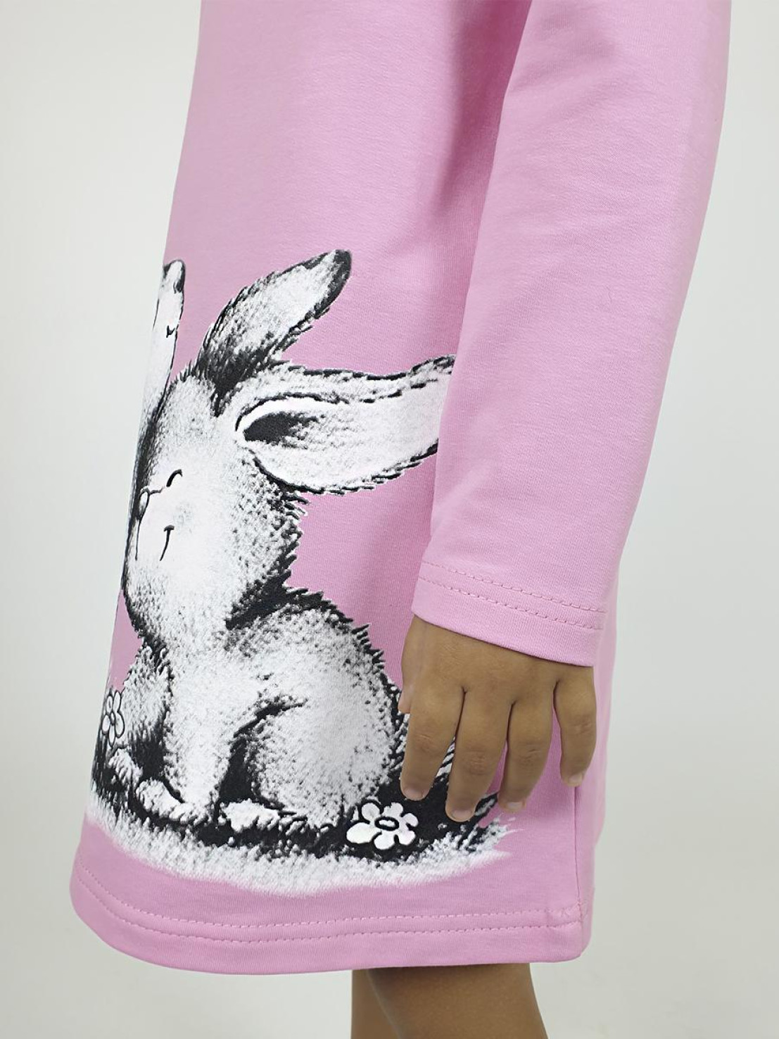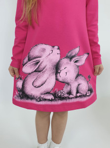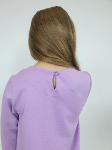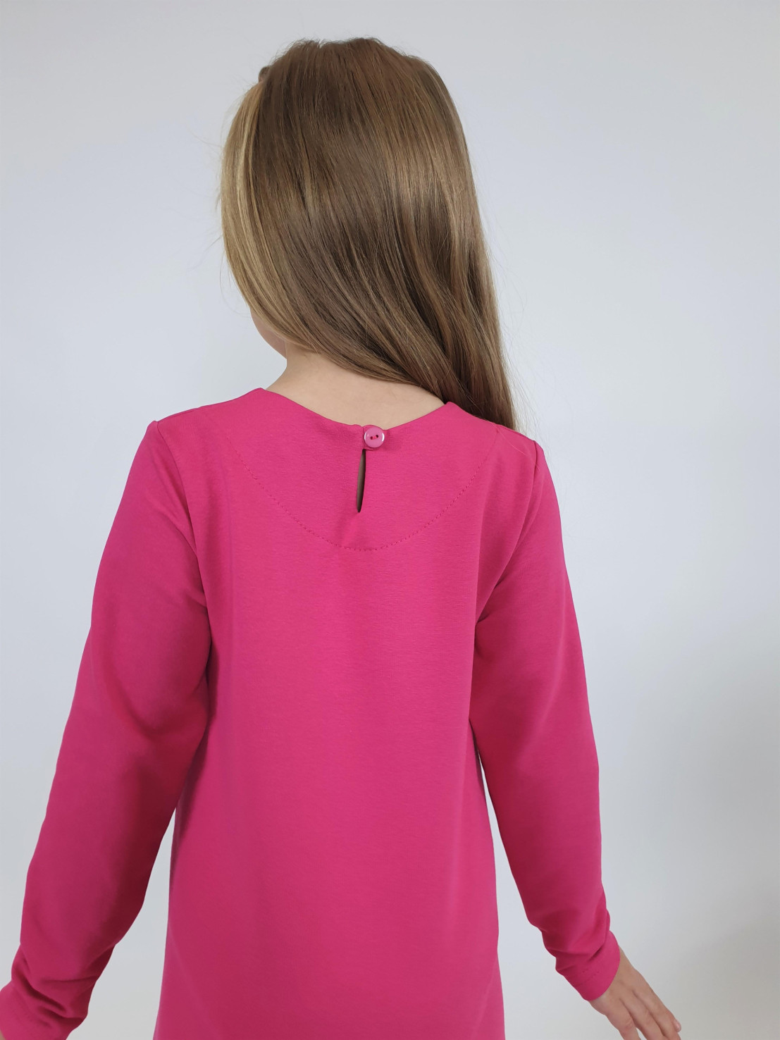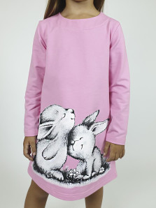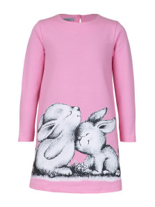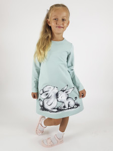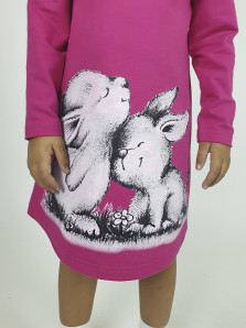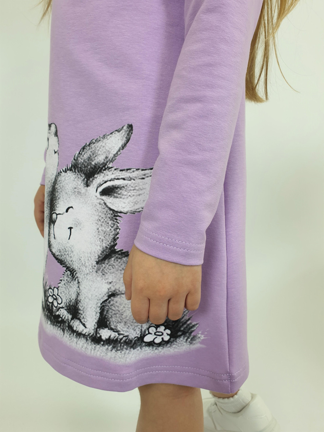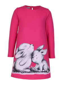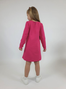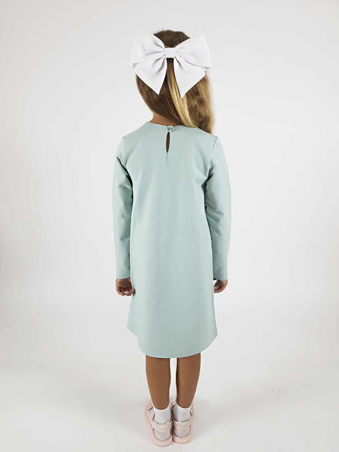Футер 2-х нитка:80% х/б,14% п/э,6% лайкра. Платье-силуэт трапеция,без воротника,застежка на пуговицу по спинке.Втачной длинный рукав.Печать на полочке,внизу.