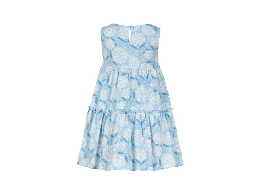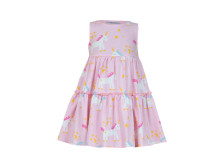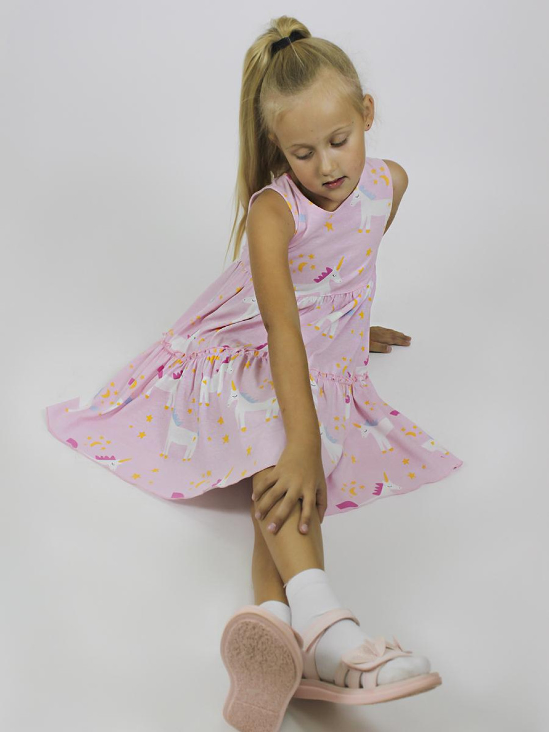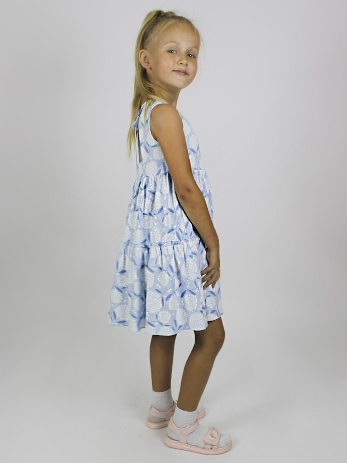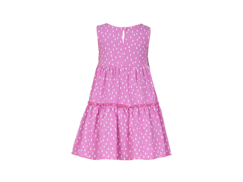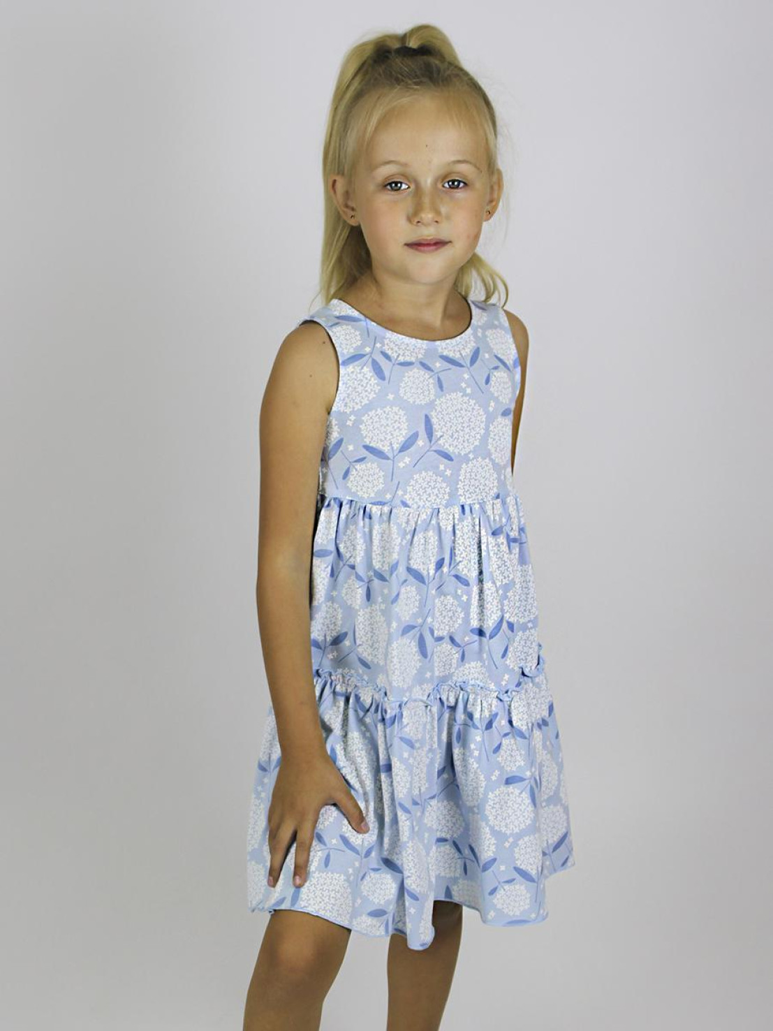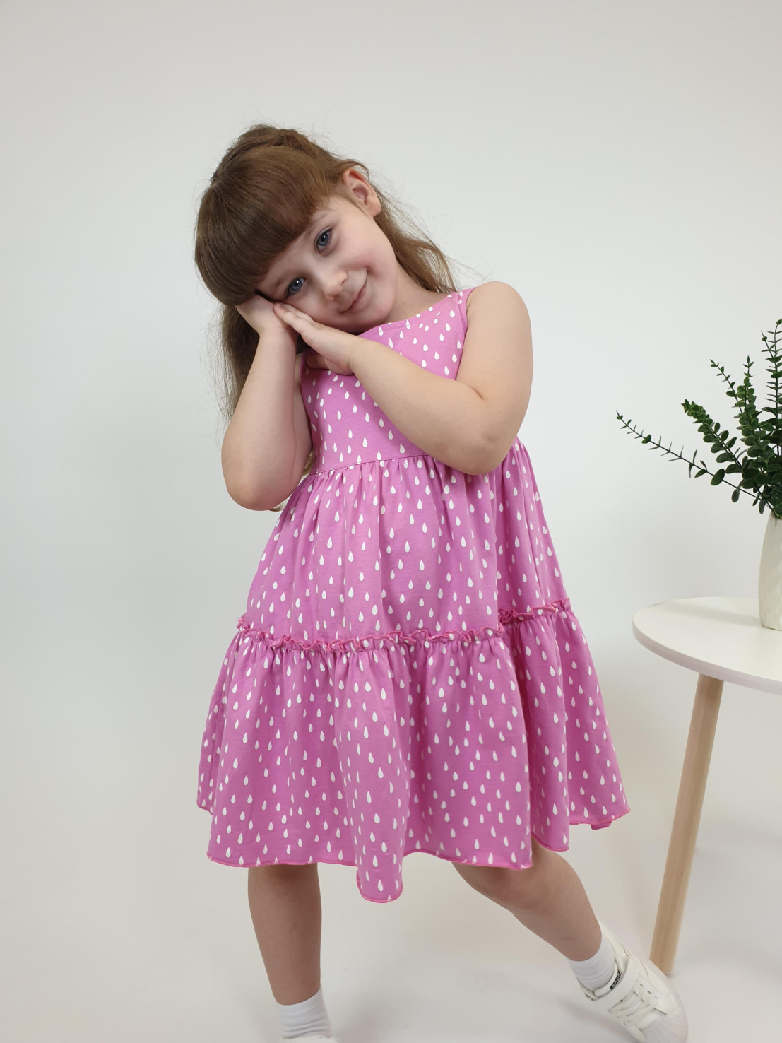 Кулирное полотно:100% х/б. Платье-силуэт трапеция,без рукава.Юбка переда и спинки из двух воланов.Горловина,пройма окантованы и подшиты.Застежка на спинке "щель"пуговица.