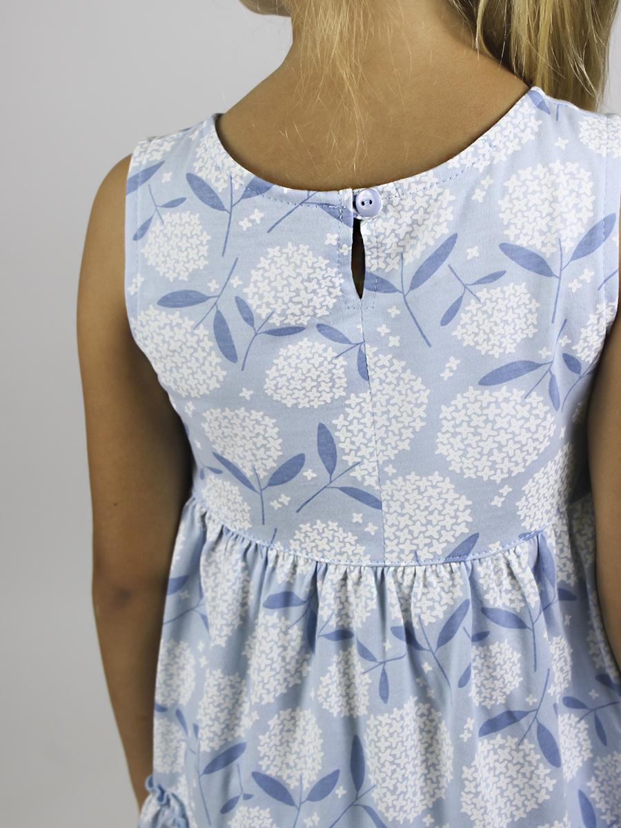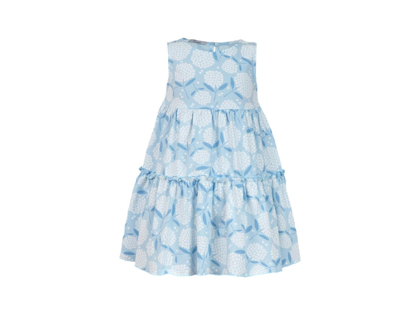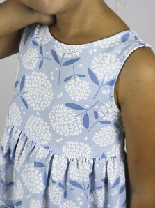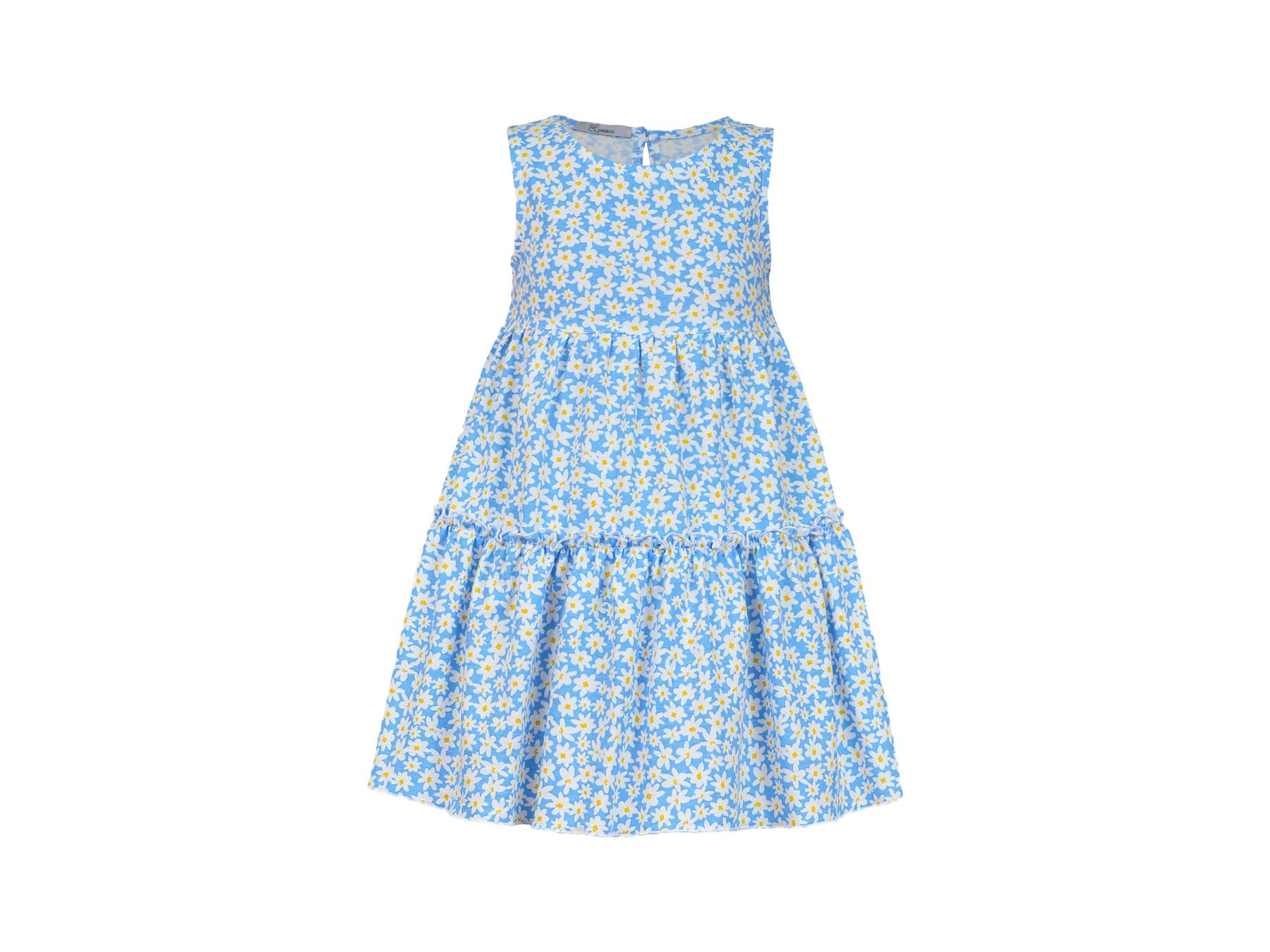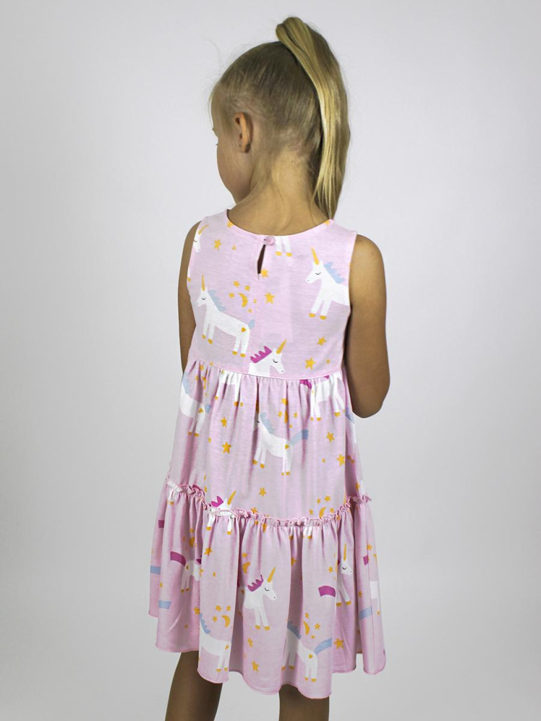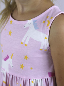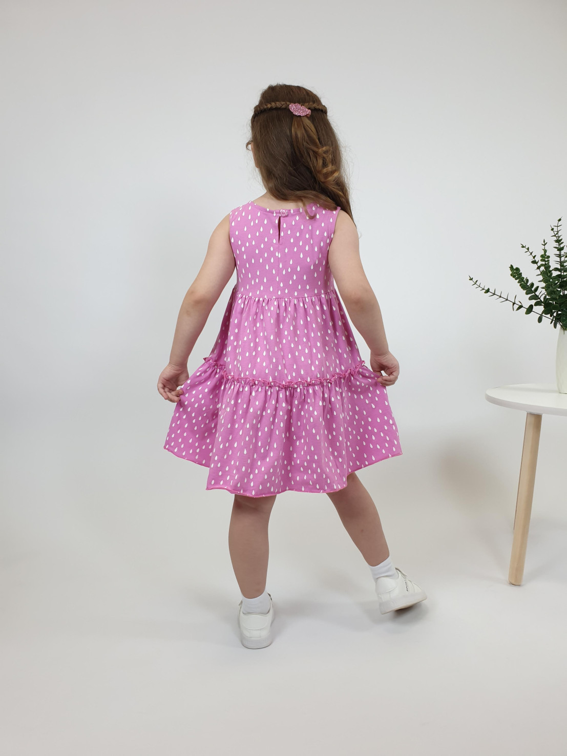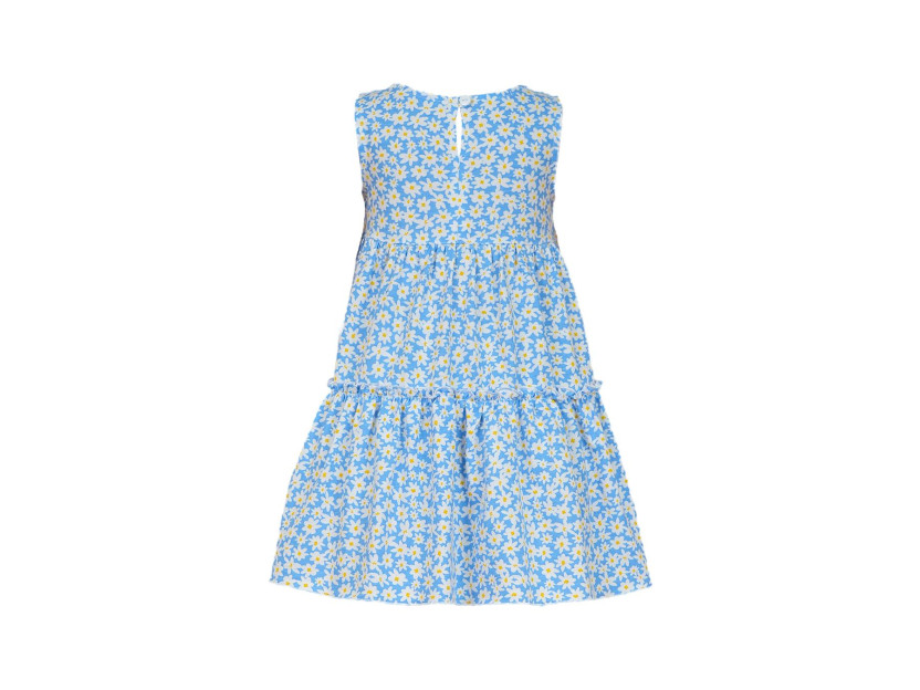 Кулирное полотно:100% х/б. Платье-силуэт трапеция,без рукава.Юбка переда и спинки из двух воланов.Горловина,пройма окантованы и подшиты.Застежка на спинке "щель"пуговица.