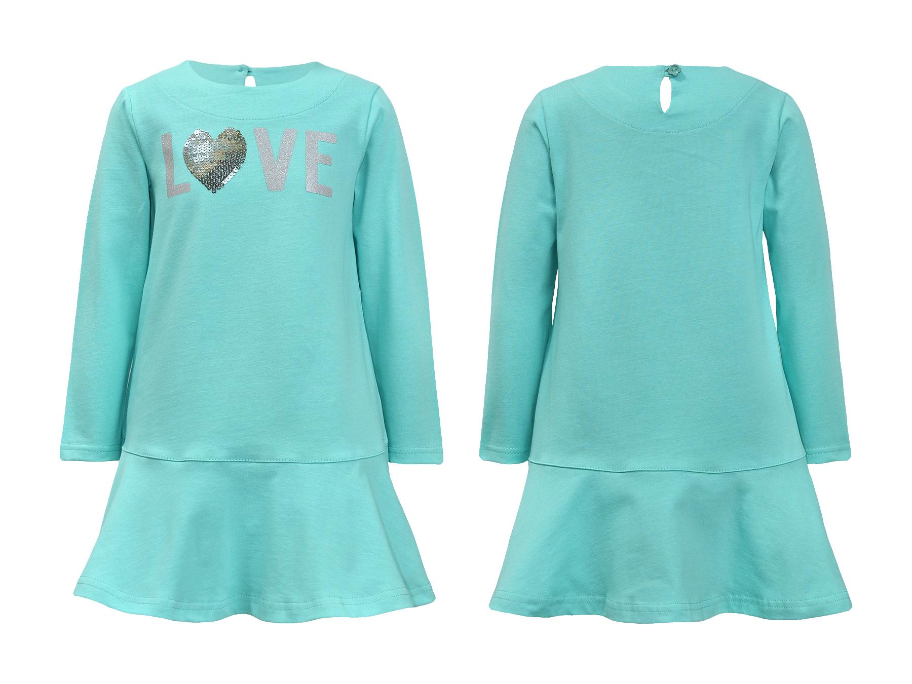 Платье выполнено из качественного кулирного полотна (фырча) ,100% хлопок. Модель силуэт трапеция, декорирована оригинальной вышивкой (пайетки) и воланом. Удобная застёжка по спинке на пуговицу.Такое платье идеально подойдёт для прогулок, школы, детского сада и как повседневный вариант. Приятный трендовый цвет можно легко сочетать с любыми образами как на каждый день, так и при особых случаях.