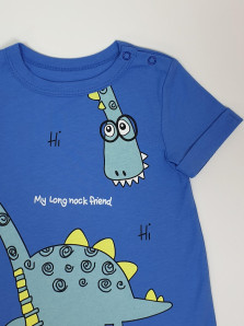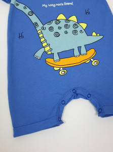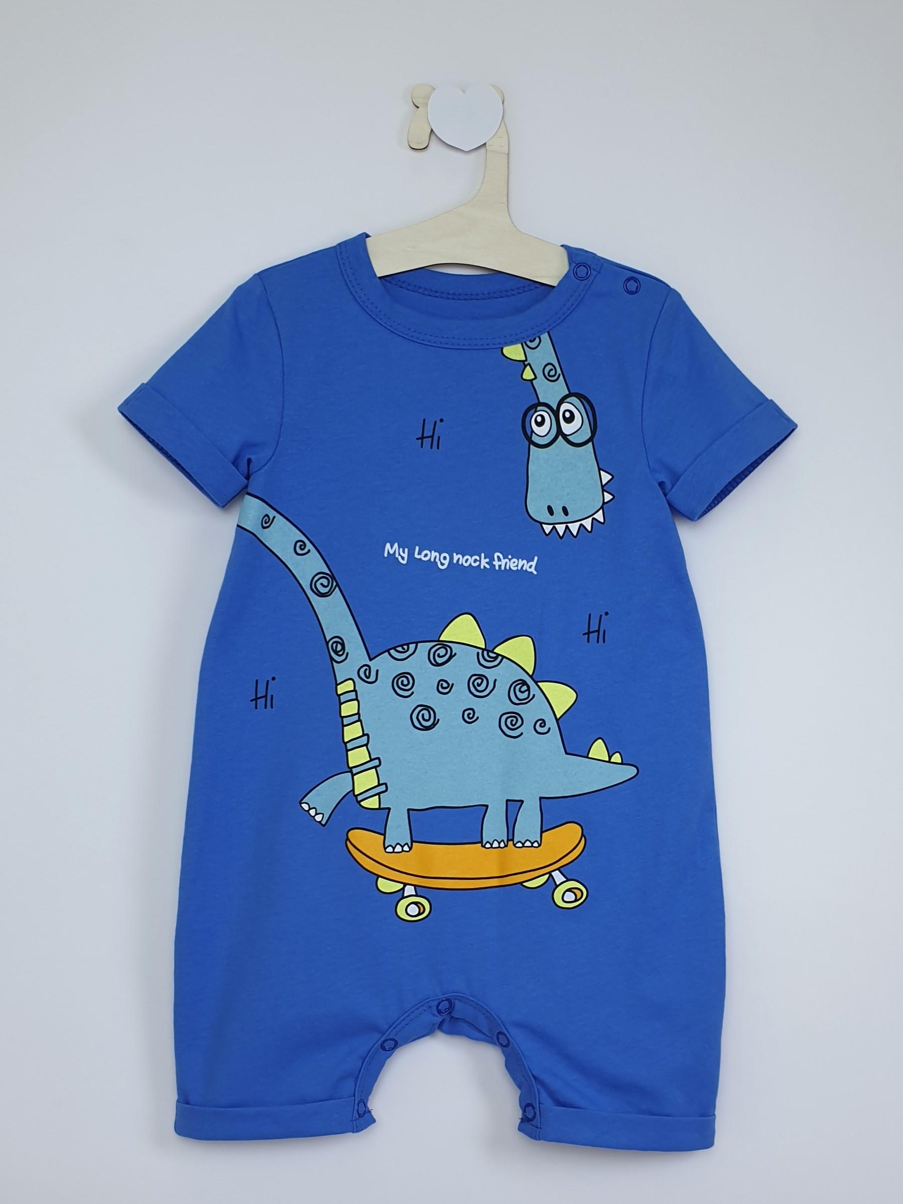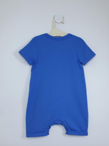 Кулирное полотно:100% х/б. Полукомбинезон-свободный,перед с печатью.Горловина окантована,застежка в плече на кнопки.Короткий рукав с отворотом.Низ ножек с отворотом,застежка по шаговому шву на кнопки.