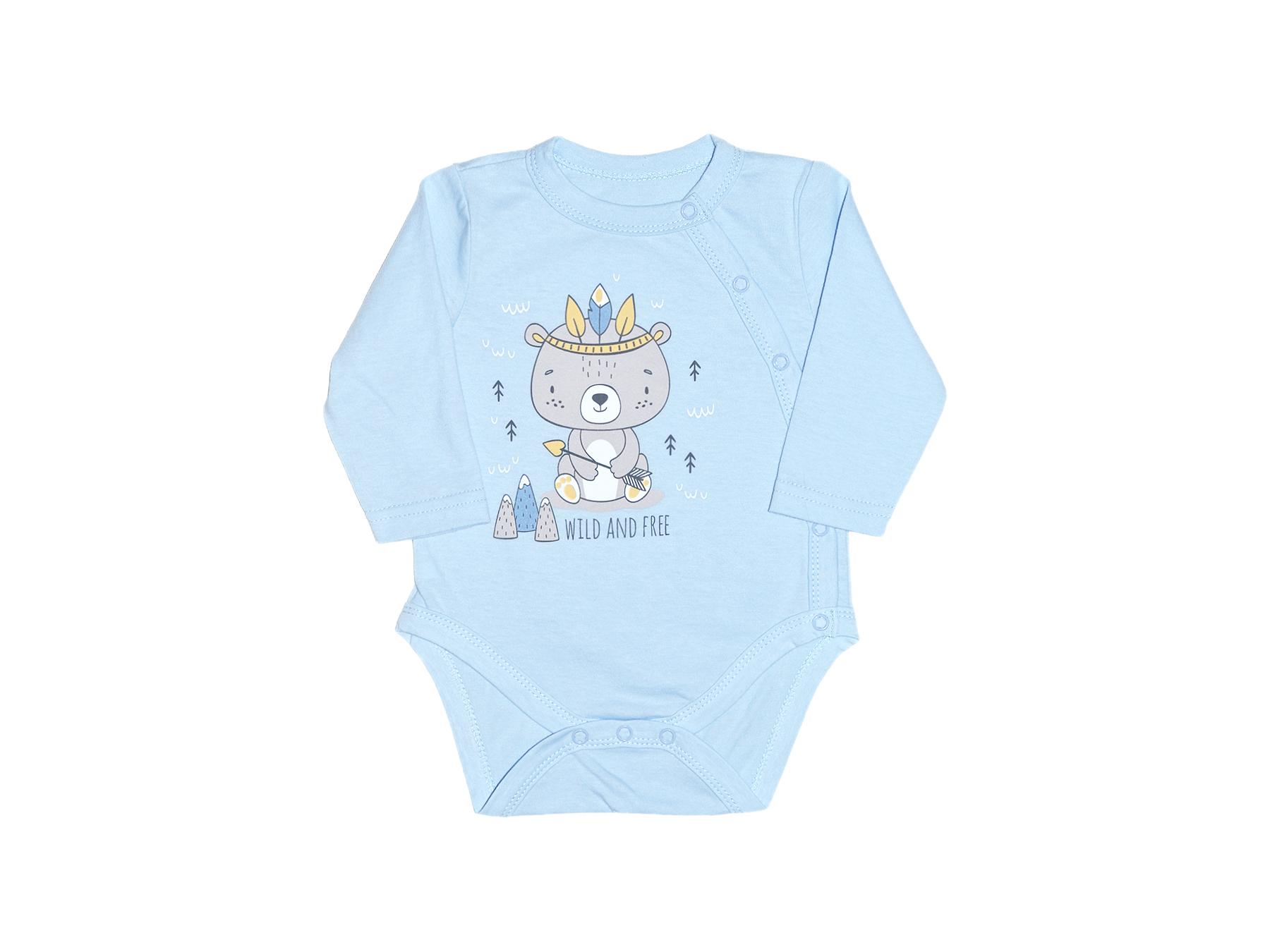 Кулирное полотно: 100% х/б. Полукомбинезон (боди)-застежка ассиметричная на переде слева(справа) и по низу изделия на кнопки. Рукав втачной длинный,печать по переду.Горловина, край борта и низ изделия- окантованы.
