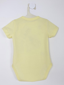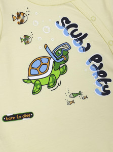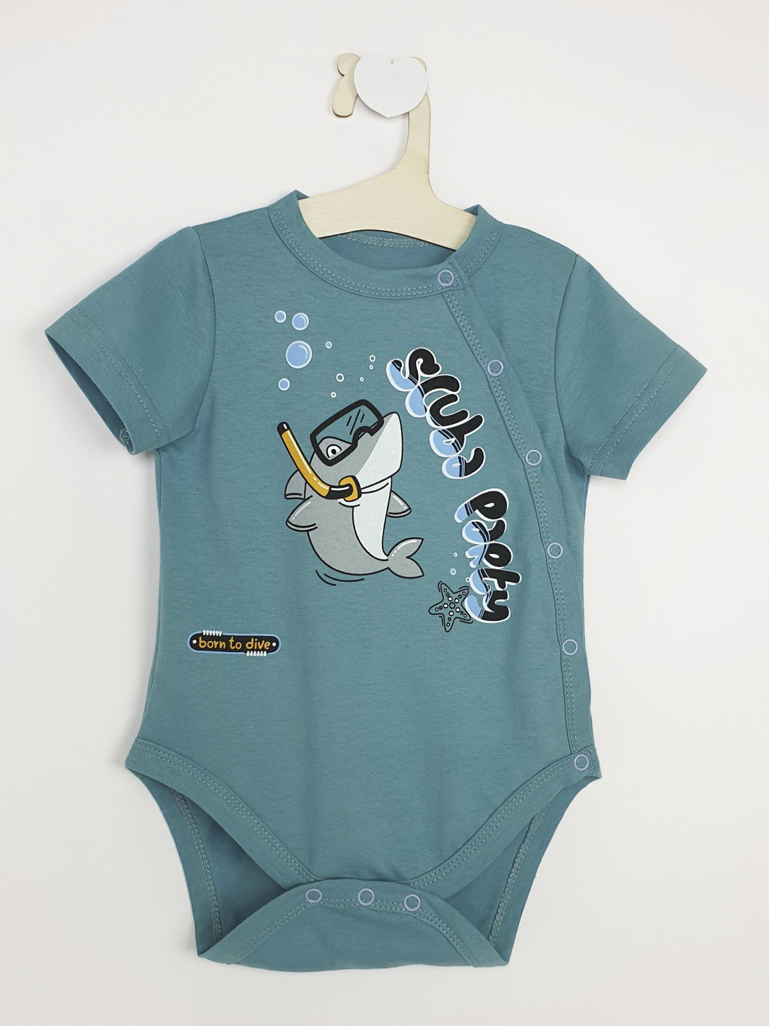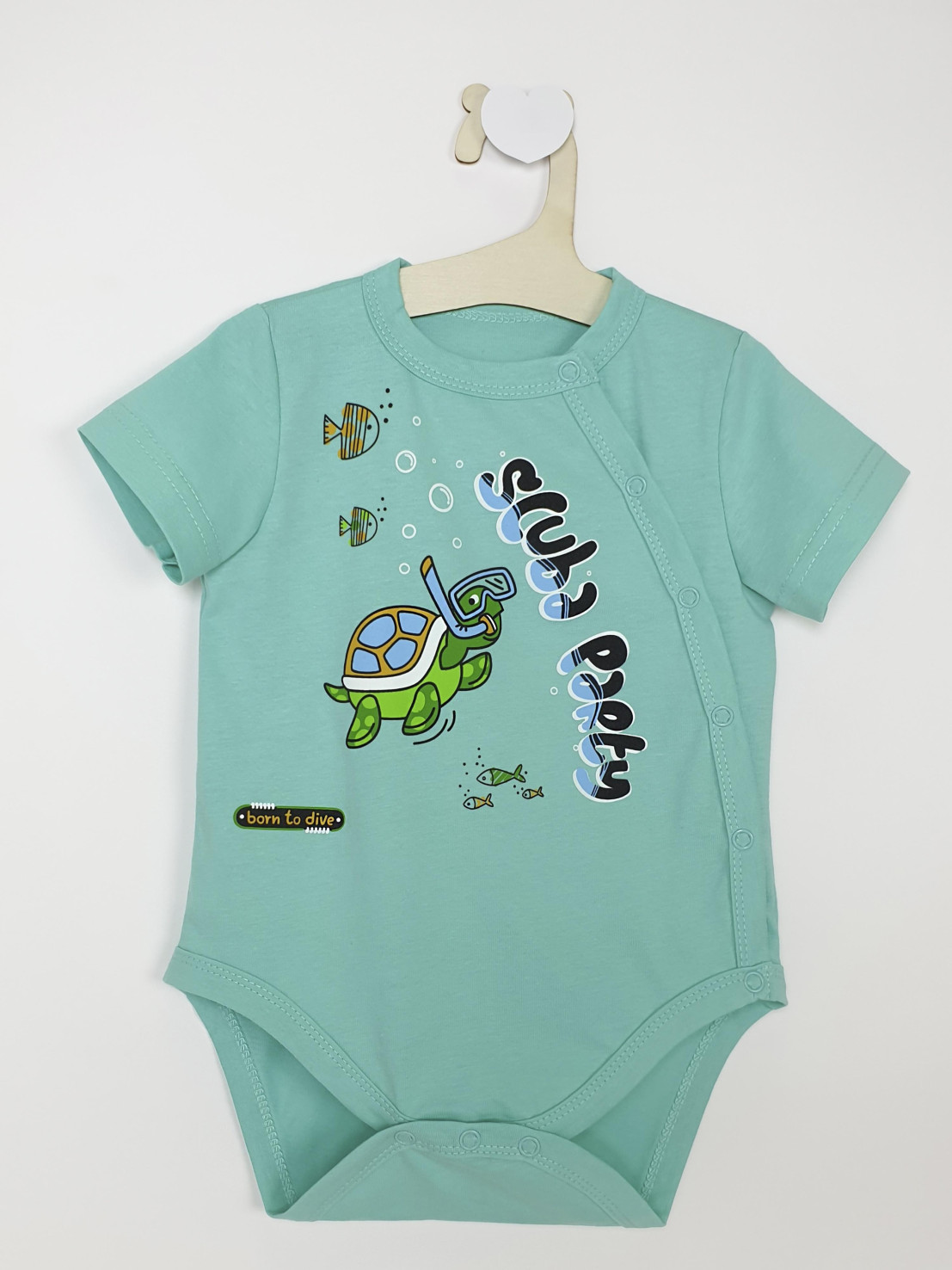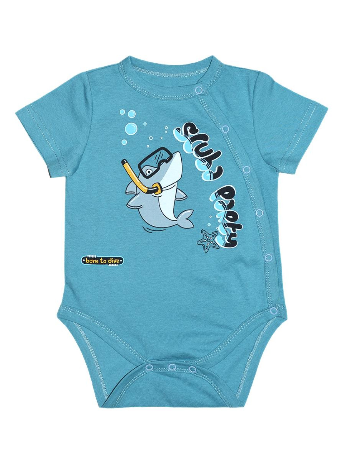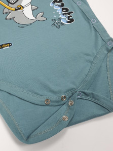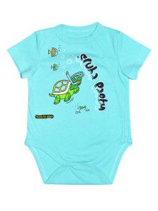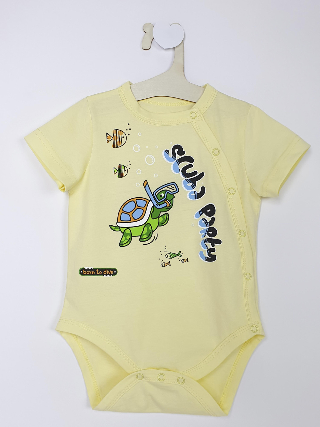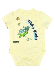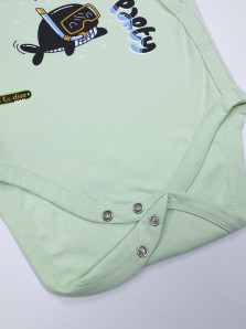 Кулирное полотно:100% х/б. Полукомбинезон(боди)-застежка ассиметричная на переде слева(справа) и по низу изделия на кнопки.Рукав втачной короткий. Перед с печатью.Горловина,край борта и низ изделия окантованы.