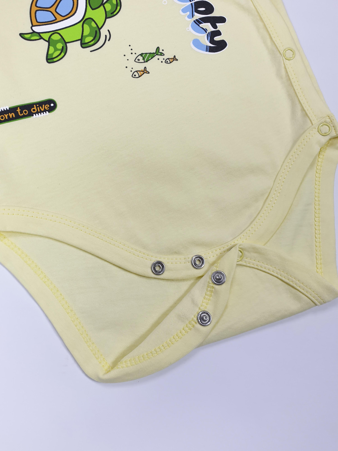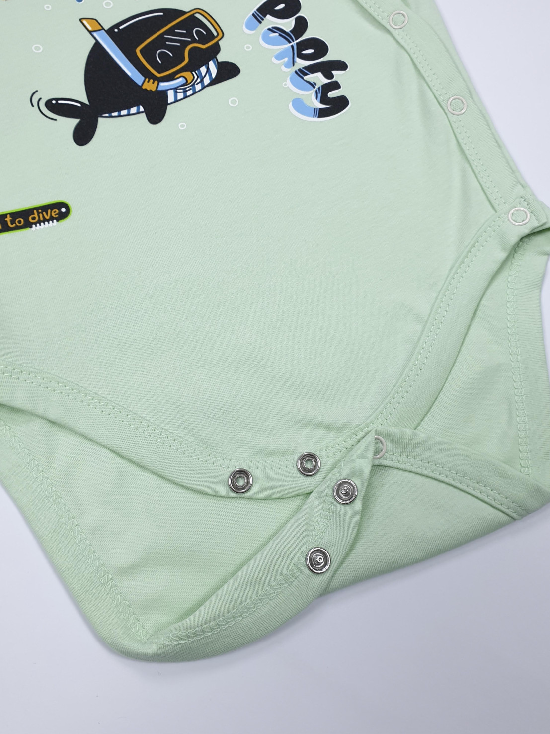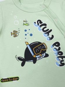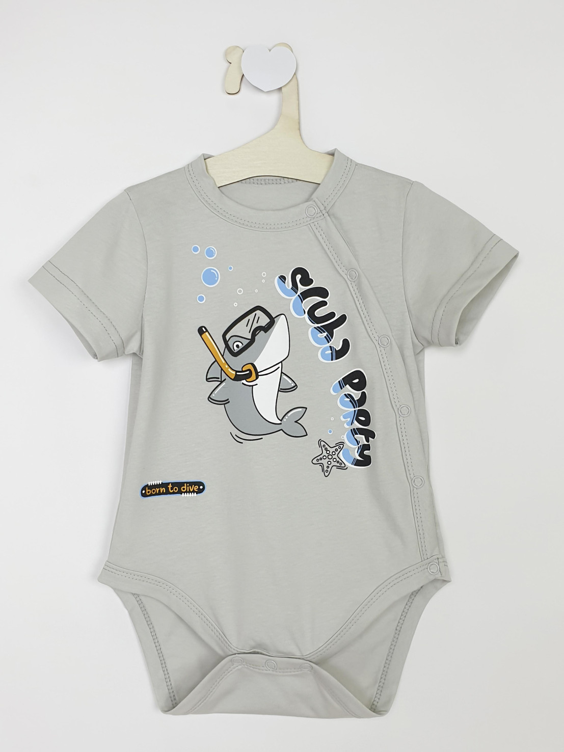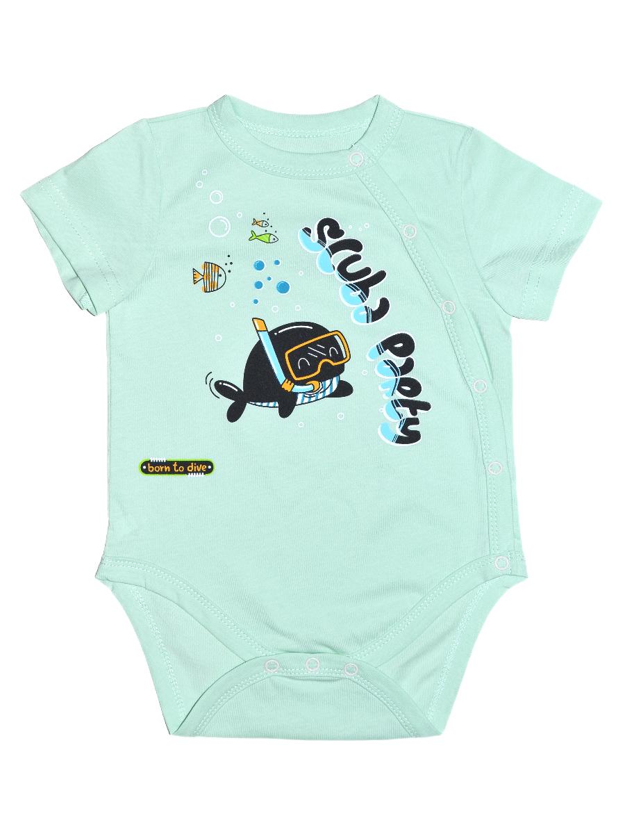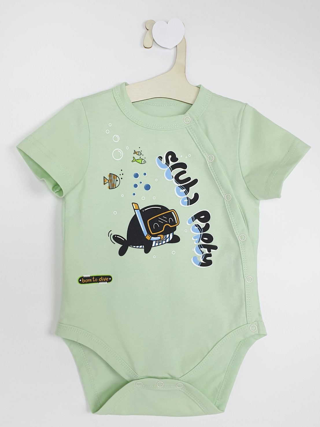 Кулирное полотно:100% х/б. Полукомбинезон(боди)-застежка ассиметричная на переде слева(справа) и по низу изделия на кнопки.Рукав втачной короткий. Перед с печатью.Горловина,край борта и низ изделия окантованы.