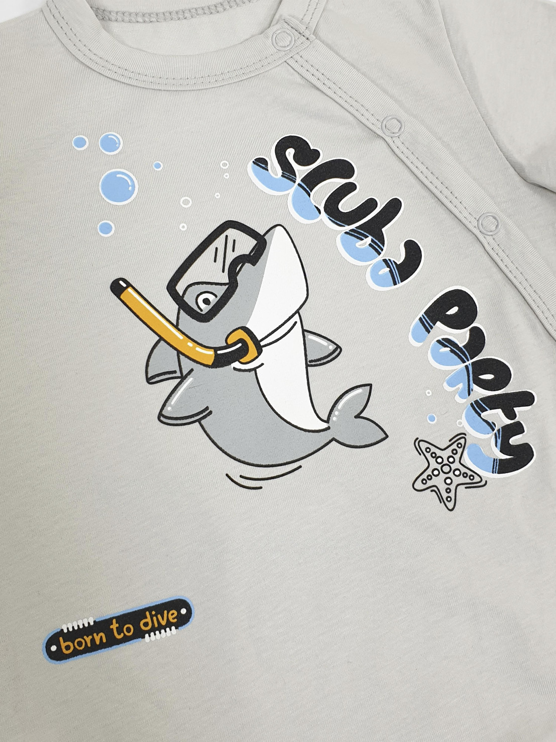 Кулирное полотно:100% х/б. Полукомбинезон(боди)-застежка ассиметричная на переде слева(справа) и по низу изделия на кнопки.Рукав втачной короткий. Перед с печатью.Горловина,край борта и низ изделия окантованы.