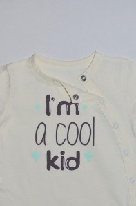 Кулирное полотно:100% х/б. Полукомбинезон(боди)-застежка ассиметричная на переде слева(справа) и по низу изделия на кнопки.Рукав втачной короткий. Перед с печатью.Горловина,край борта и низ изделия окантованы.