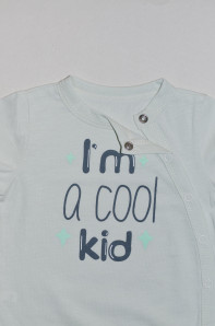 Кулирное полотно:100% х/б. Полукомбинезон(боди)-застежка ассиметричная на переде слева(справа) и по низу изделия на кнопки.Рукав втачной короткий. Перед с печатью.Горловина,край борта и низ изделия окантованы.