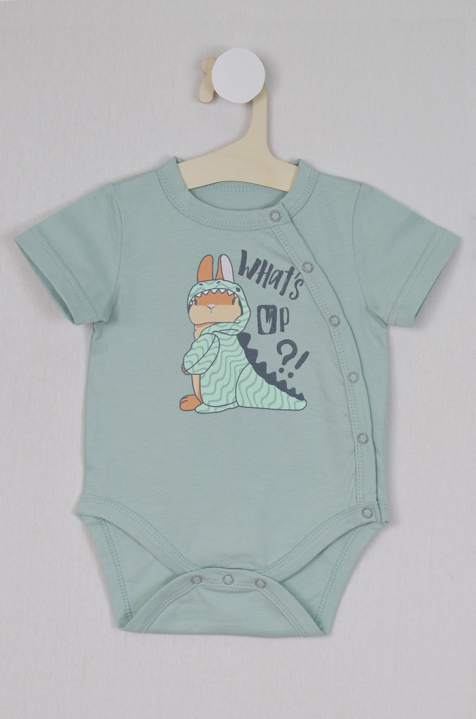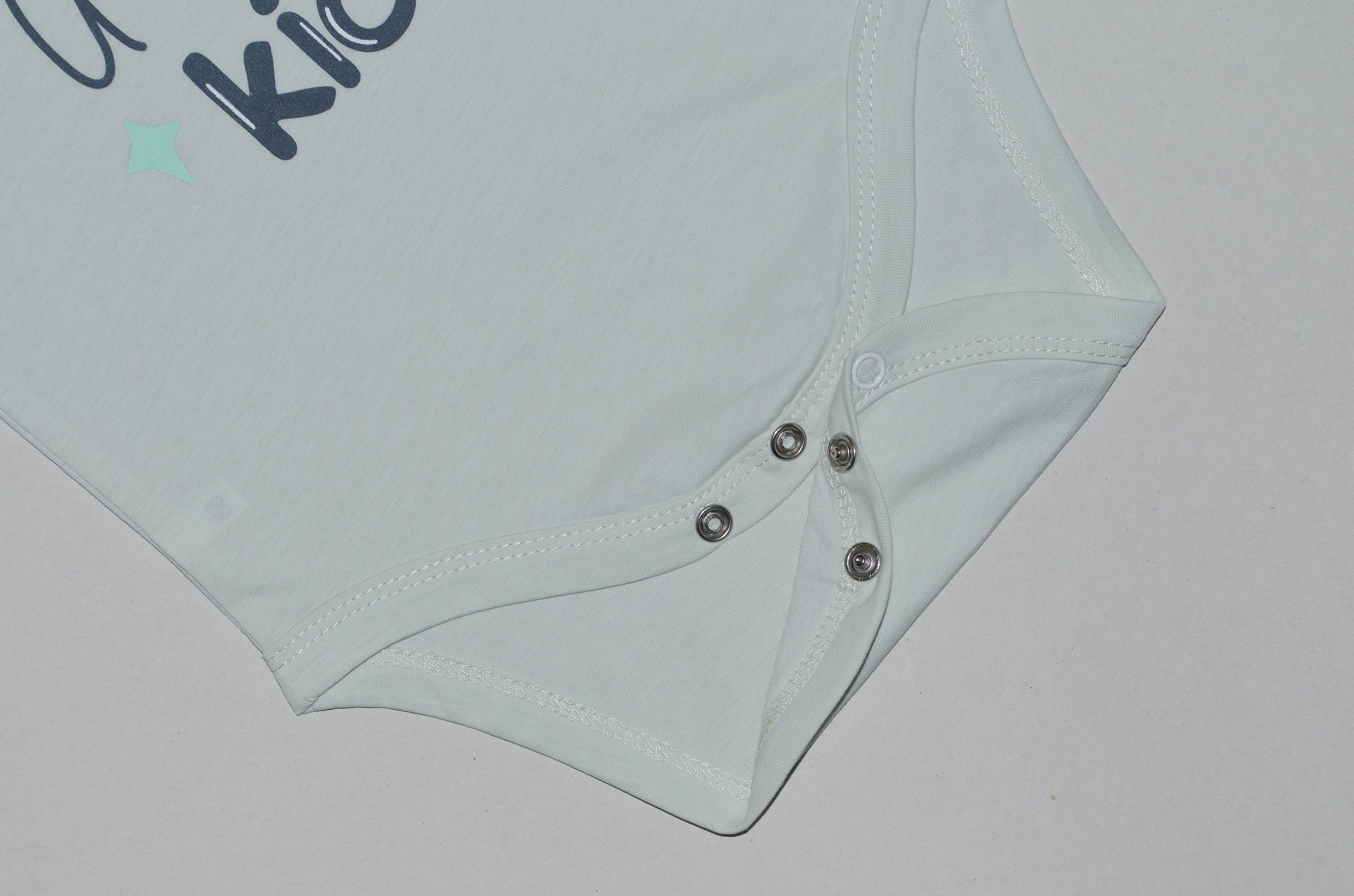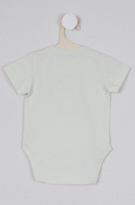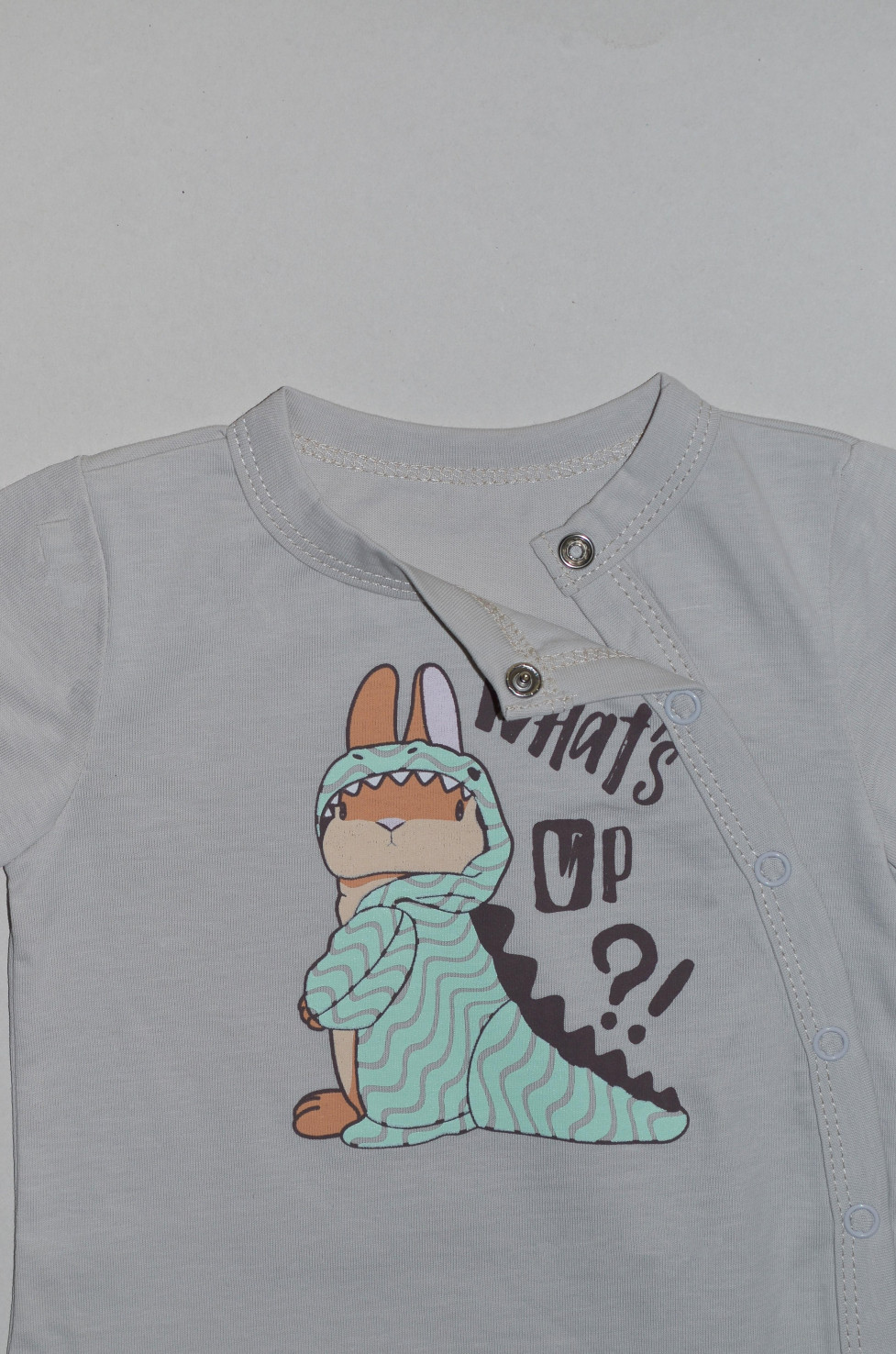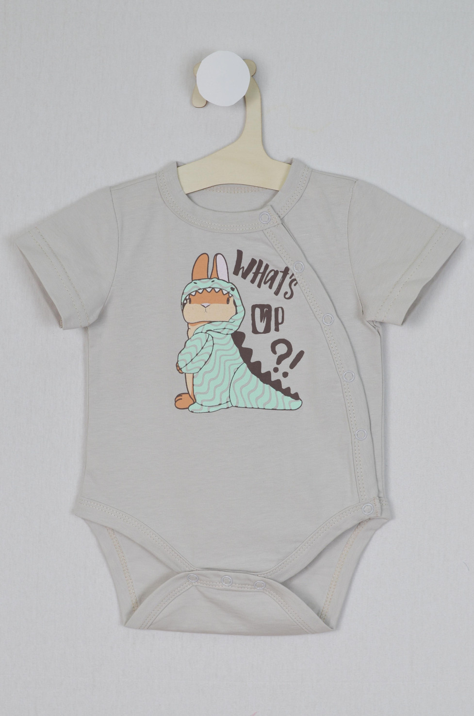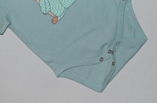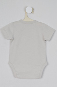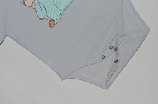 Кулирное полотно:100% х/б. Полукомбинезон(боди)-застежка ассиметричная на переде слева(справа) и по низу изделия на кнопки.Рукав втачной короткий. Перед с печатью.Горловина,край борта и низ изделия окантованы.