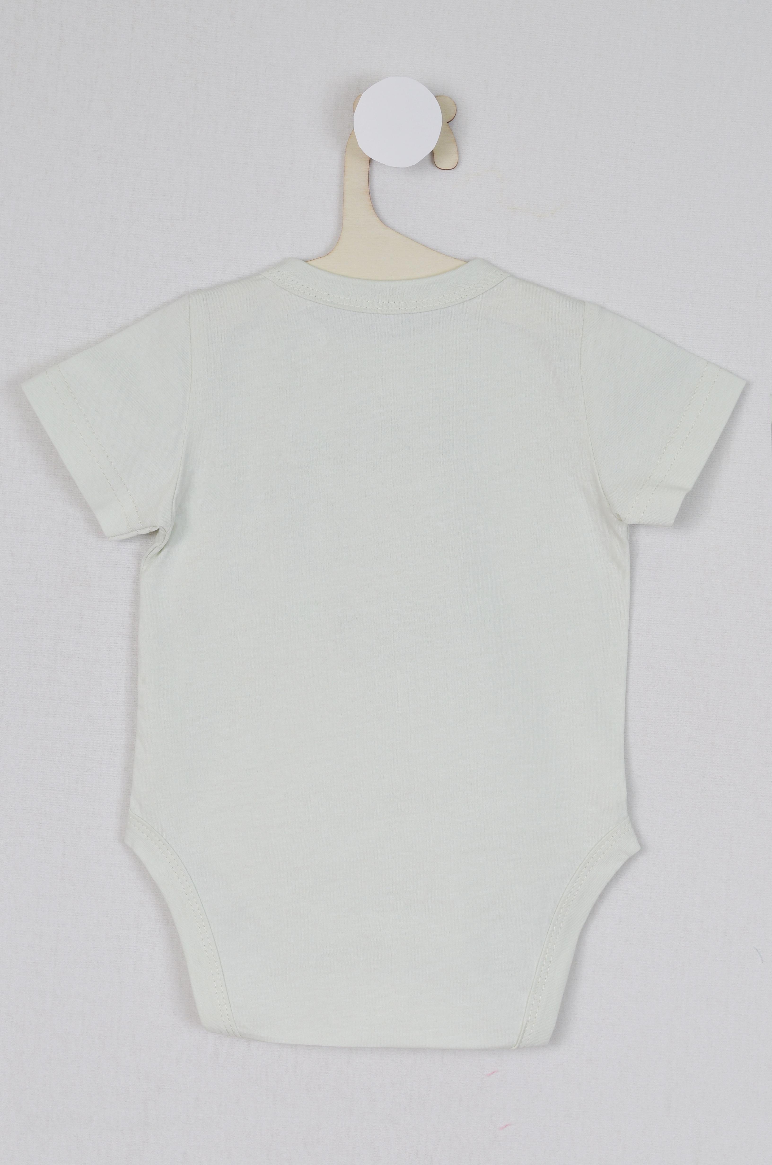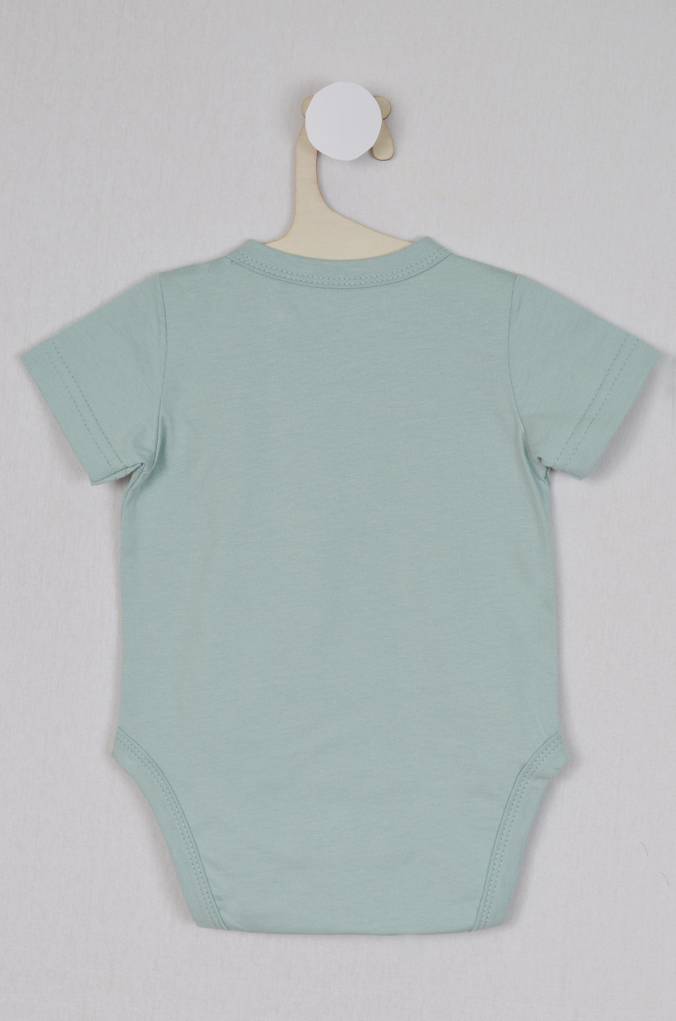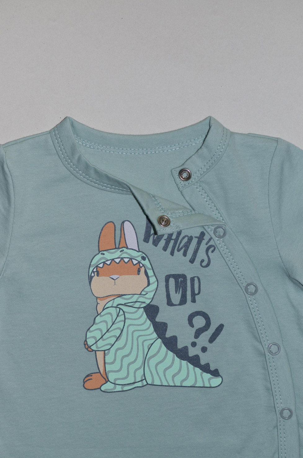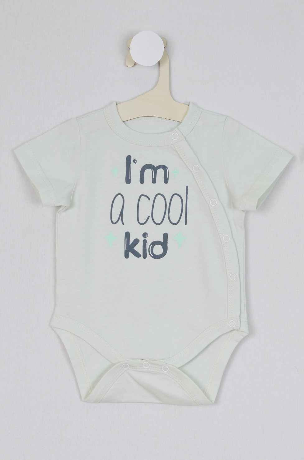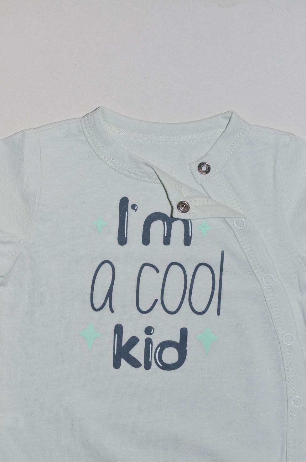 Кулирное полотно:100% х/б. Полукомбинезон(боди)-застежка ассиметричная на переде слева(справа) и по низу изделия на кнопки.Рукав втачной короткий. Перед с печатью.Горловина,край борта и низ изделия окантованы.