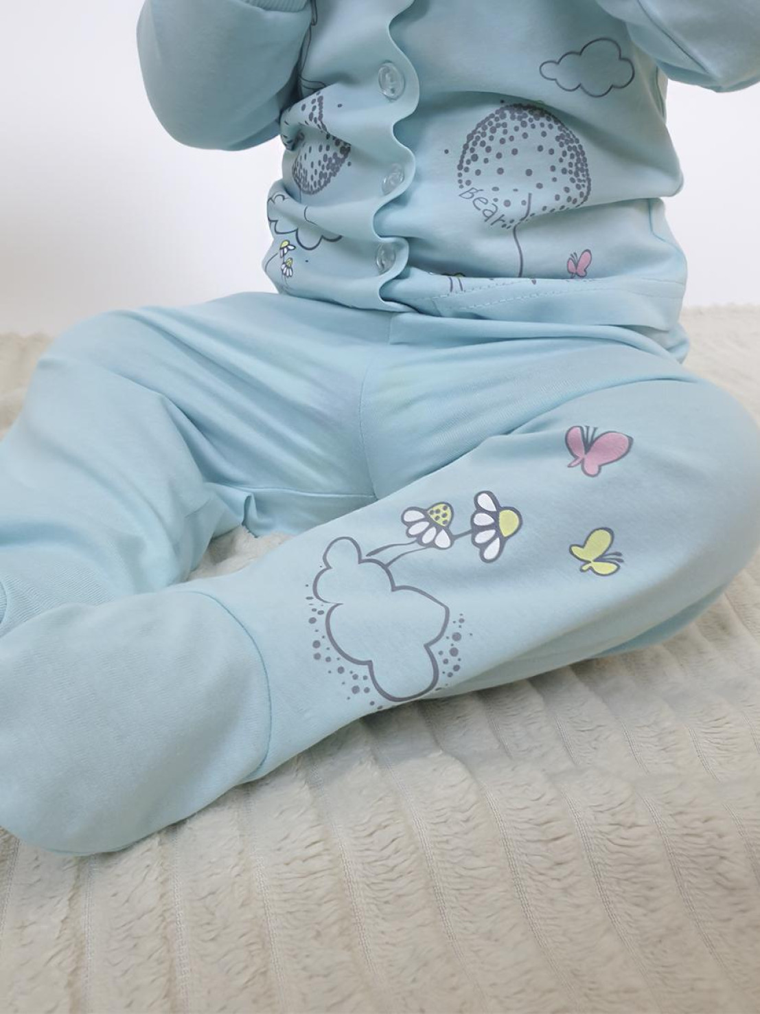 Кулирное полотно: 100% х/б. Ползунки-короткие на резинке,на правой передней половинке печать.